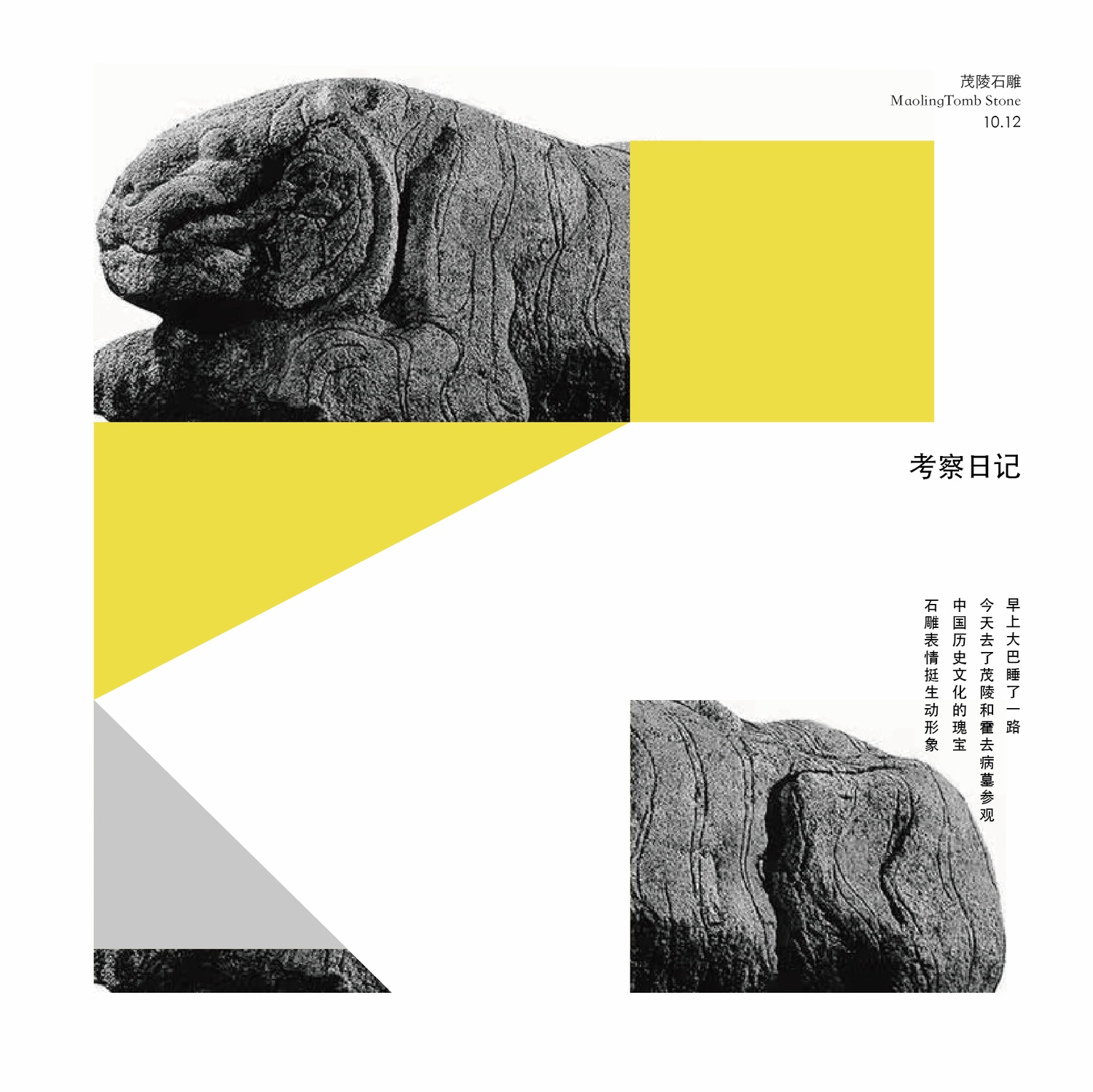 在进行创作时,我们作为设计生,更希望以更现代的方式表达考察内容,所以我们决定用简单图形,像是矩形,圆和三角形的互相裁切组合来对考察内容进行重构。
