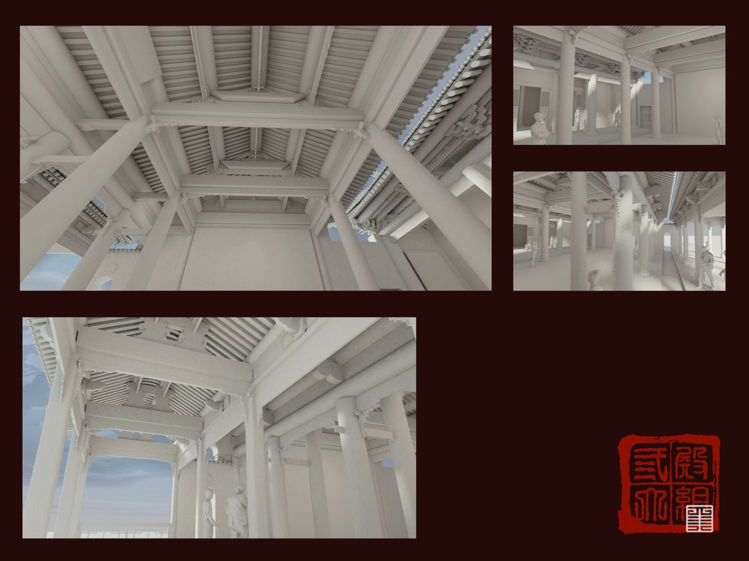 手绘测稿、Cad制图、文献分析、碑文分析、视频制作、电脑建模制作、文创制作、漫画创作、像素画创作、VR制作、实体模型制作及MENTAL CANVAS制作分层图的形式表现。
