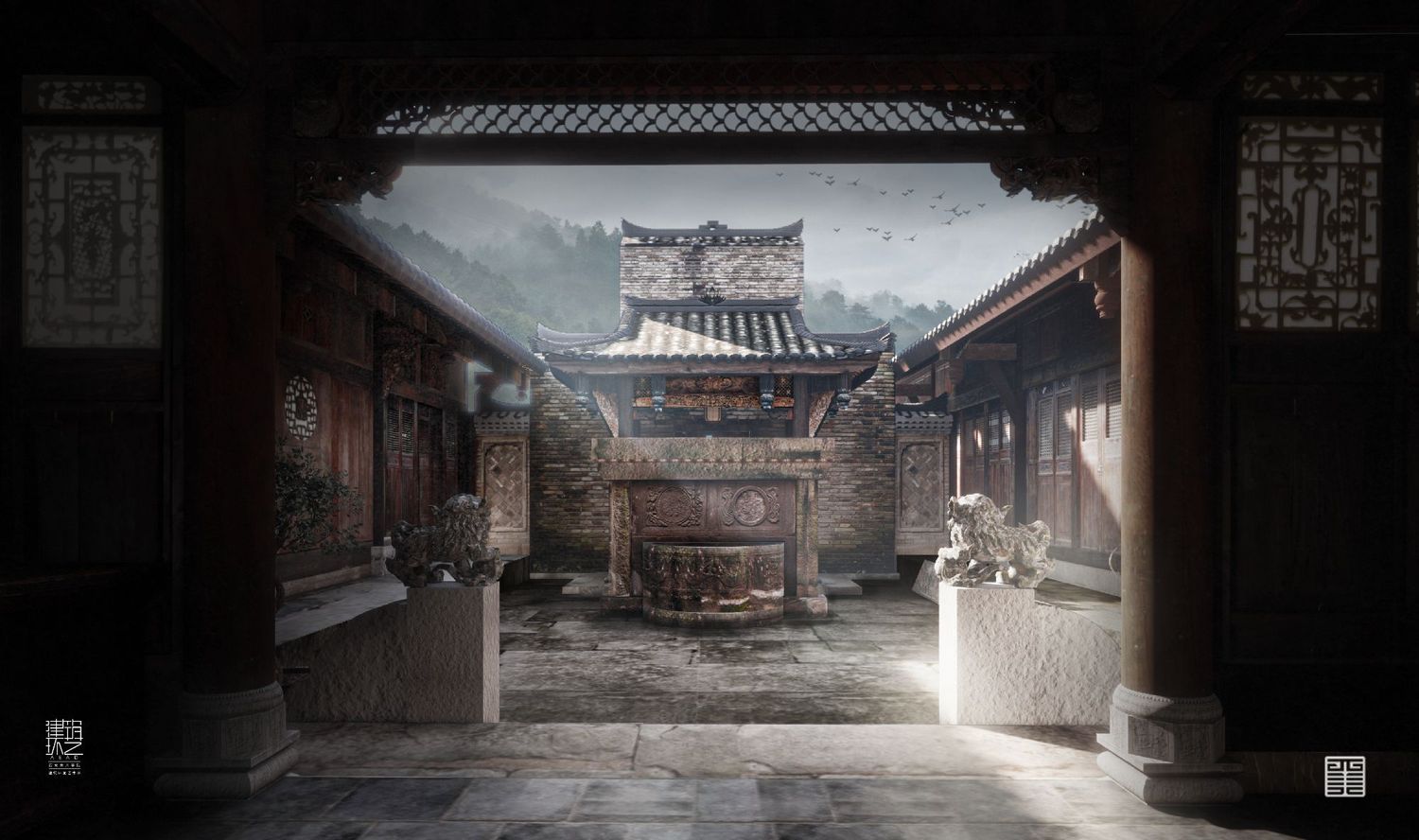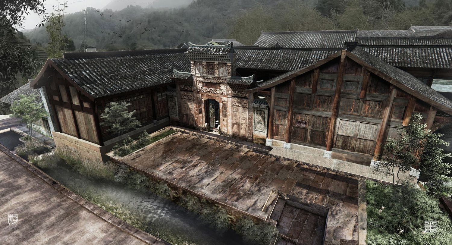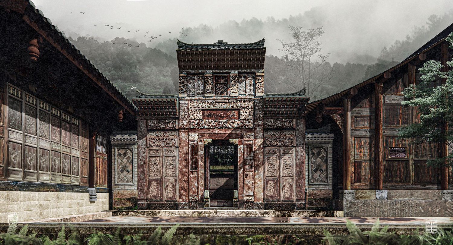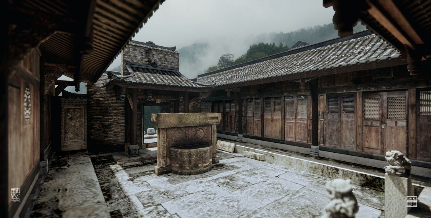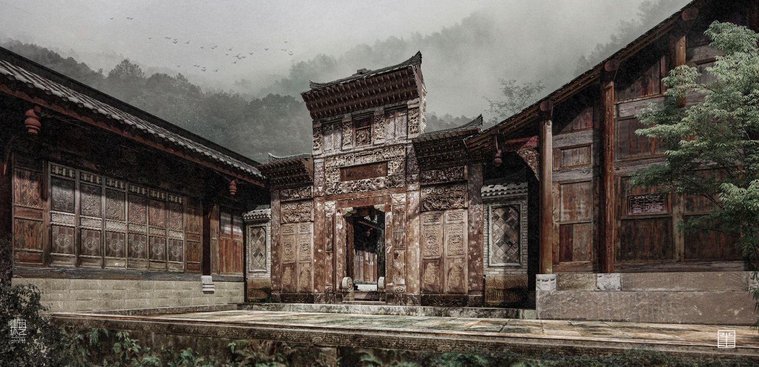 建筑方面,瞿家大院所在东坝村和青木川同属于金溪河谷,但又被山峦隔断,形成单独盆地,与世隔绝。大院坐落在盆地边缘一隅,选址遵循天人合一的自然法则,谋求整体布局,注重人居与山水环境共存,前依平坝,背靠山峦,寨前溪水蜿蜒,寨后山林葱茏,石桥拱立,古宅巍然。大山、幽谷、平坝、深宅,彰显出瞿氏先祖极高的文化素养与审美情趣,以及在乱世“大隐于野”的生存智慧。