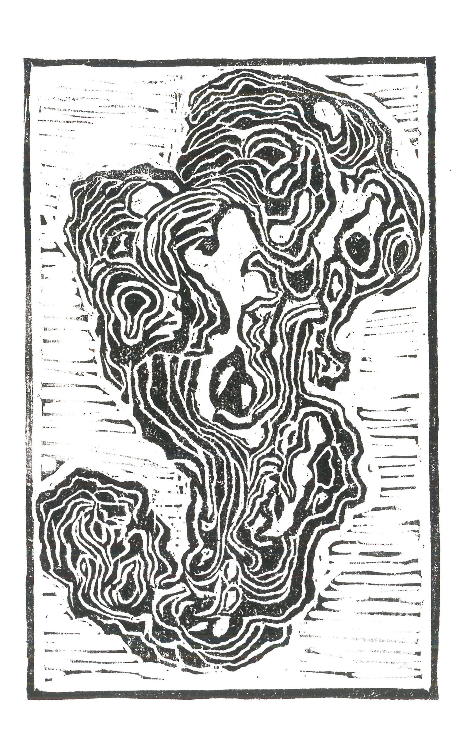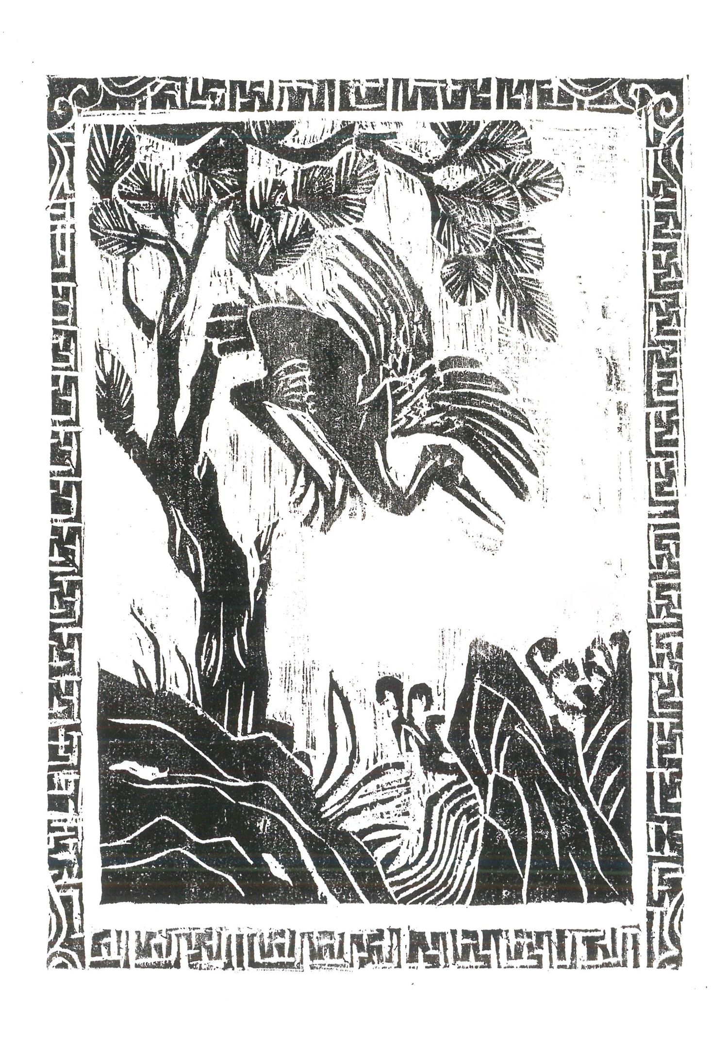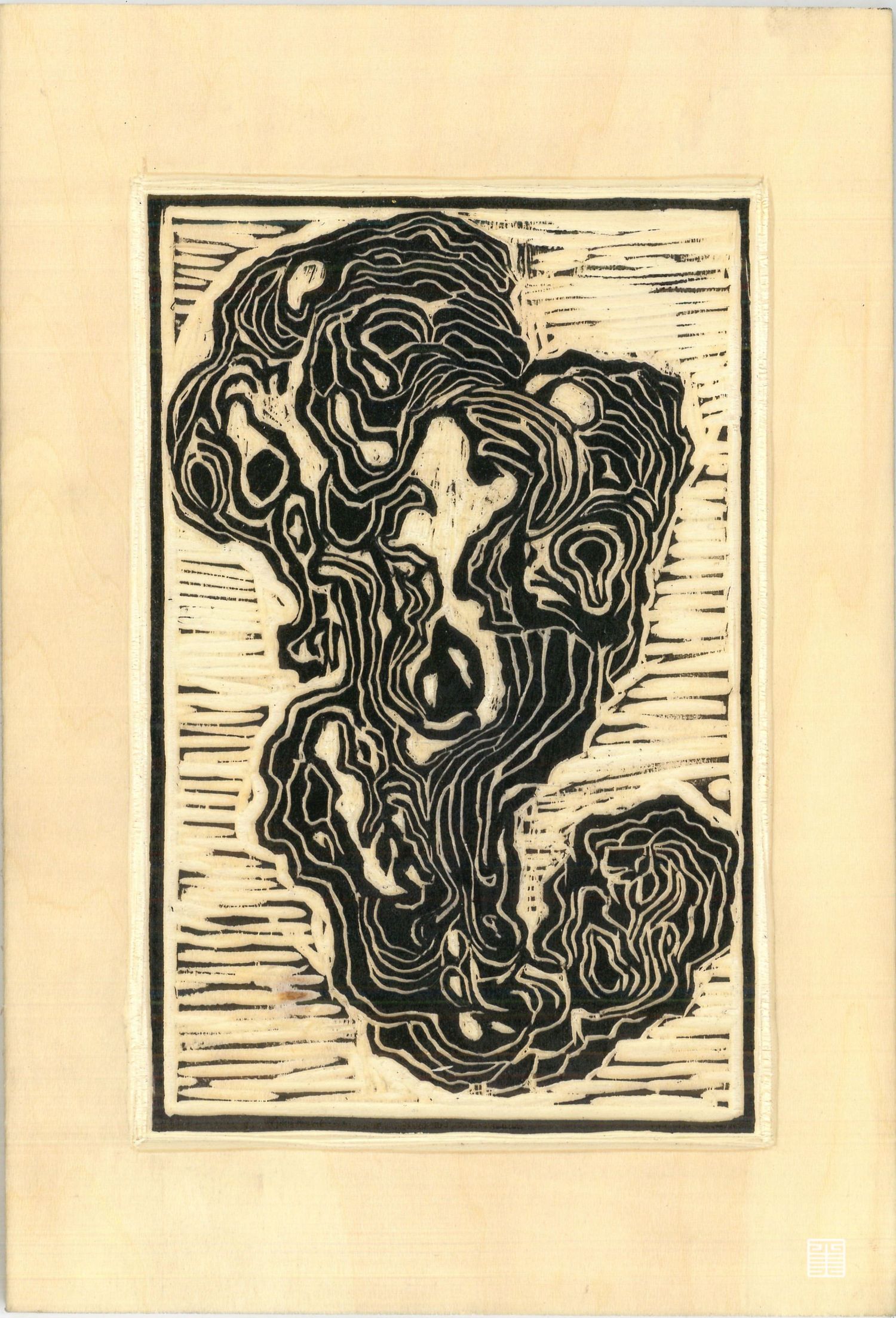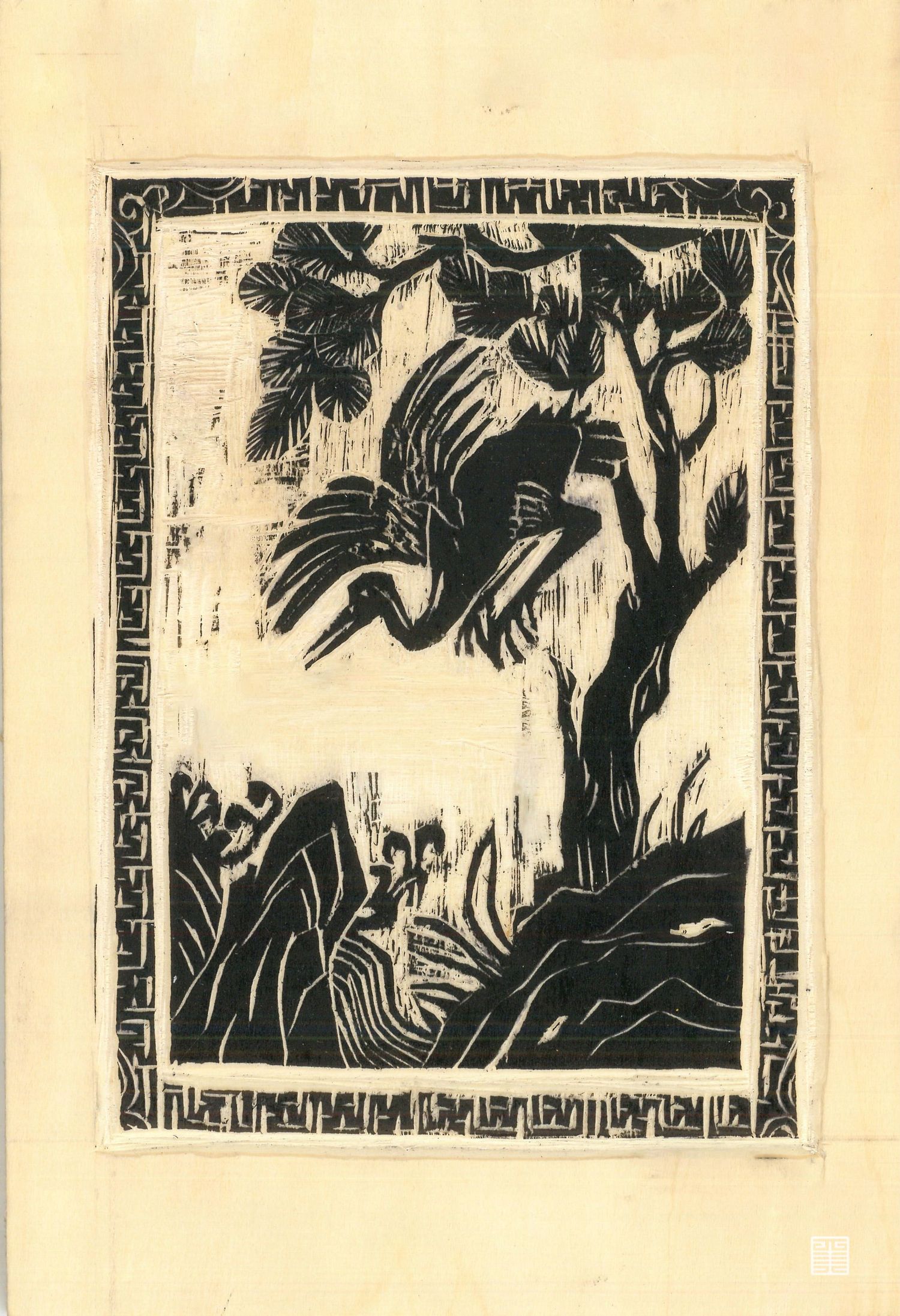 为突兀耸立造特的山石,呈灵芝状,图中线条明快,锋回路转,变化无穷,寓意寿比南山,长生不老 。