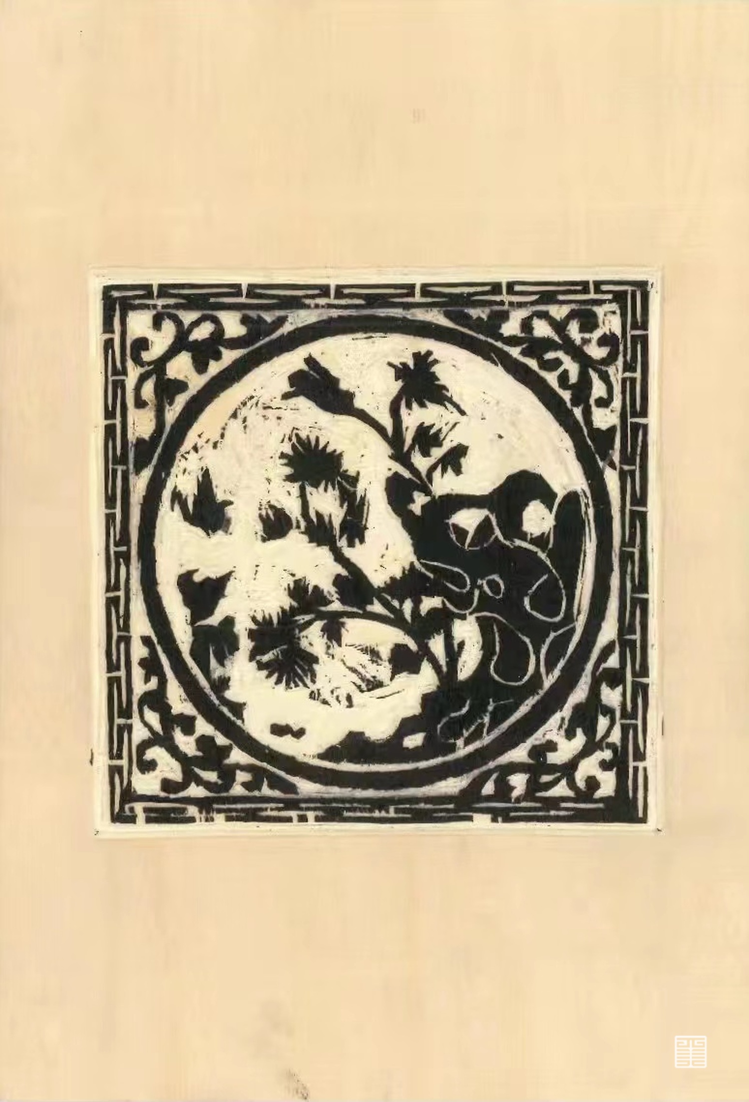 图为方框一周饰双层方折回纹,内为竹节纹,四角圆形饰卷草纹。正中仙鹤低头觅食,左山石间长一株花草,右生一苍劲古松,枝叶茂密。松树四季长青,傲霜斗雪,卓然不群,由于松树树龄长久,因此被寓为长寿树。鹤,又称仙鹤,是一种长寿的吉祥之鸟,,神话传说中的众多得道之士往往惯于骑鹤往返,修道之士常以鹤为伴,鹤被赋予高洁情志的内涵。世人常说“鹤发童颜”,意为长寿,松鹤在一起意为长寿,青春常在,故称松鹤长春。