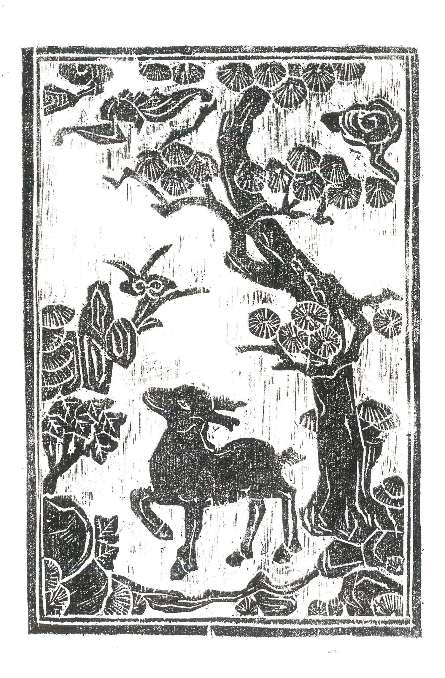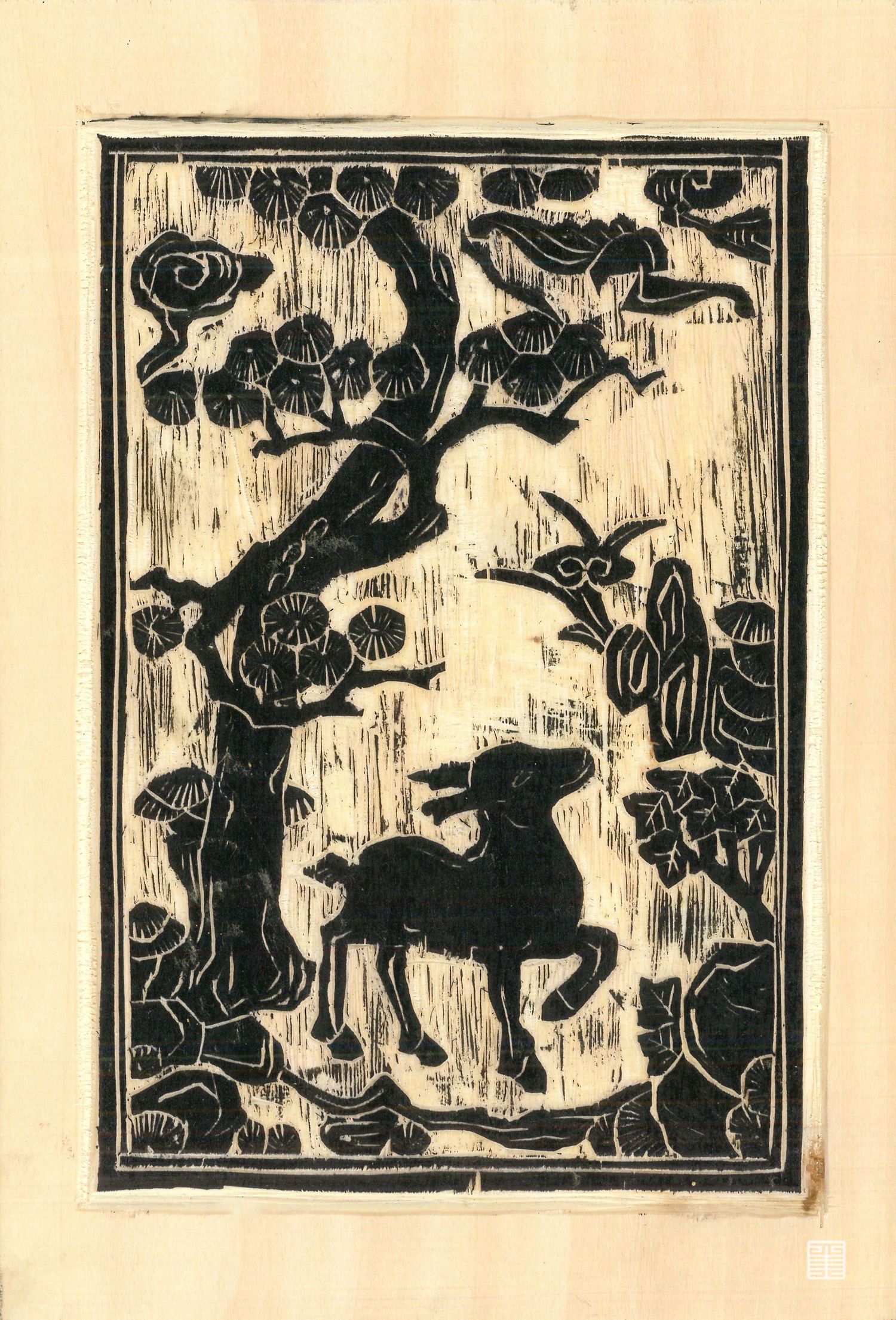 鹿包容高官厚禄和福的含义,“梅花鹿”与“梅花榜”有一定联系,是那时绍兴读书人美好的象征.“古树”也是取其同“古书”的谐音的象征意义.梅花鹿伏在古树下的画的寓意是:倘真诚地拜伏古书树下,就可望登上“梅花榜”,获取高官厚禄了.所以,“松鹿图”既是美好的图画,但它也是一种无字的劝勉,其“味”在画面之外。