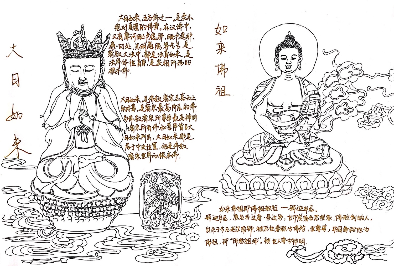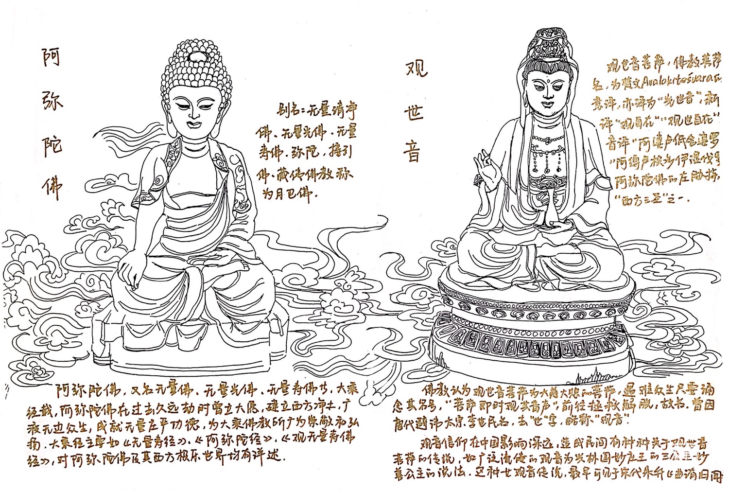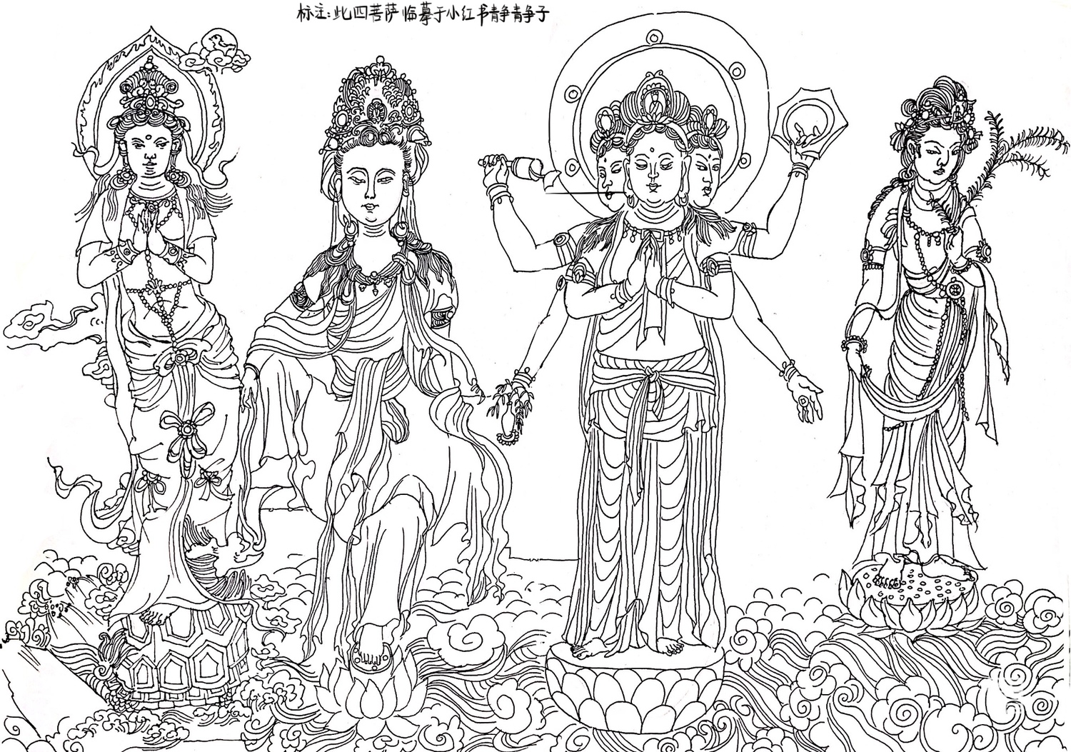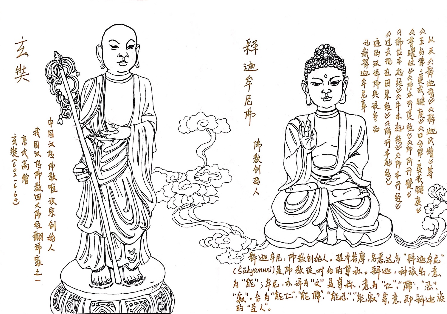 此佛像绘于关中民俗博物院佛像群,里面包含了大日如来、玄奘、释迦牟尼、观世音菩萨、度母像、布袋罗汉、托塔罗汉等等。经过此次写生旅程,对佛家的手印、坐骑、衣纹、面部神情特征有了初步了解。在描绘佛像的同时也让我们静下心来参悟人生的哲理。