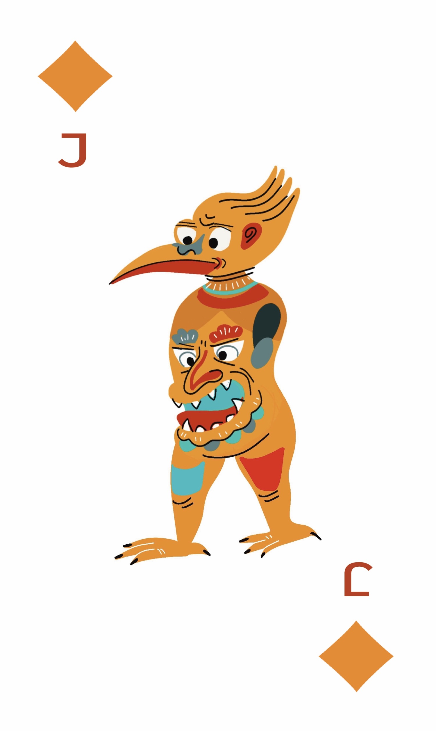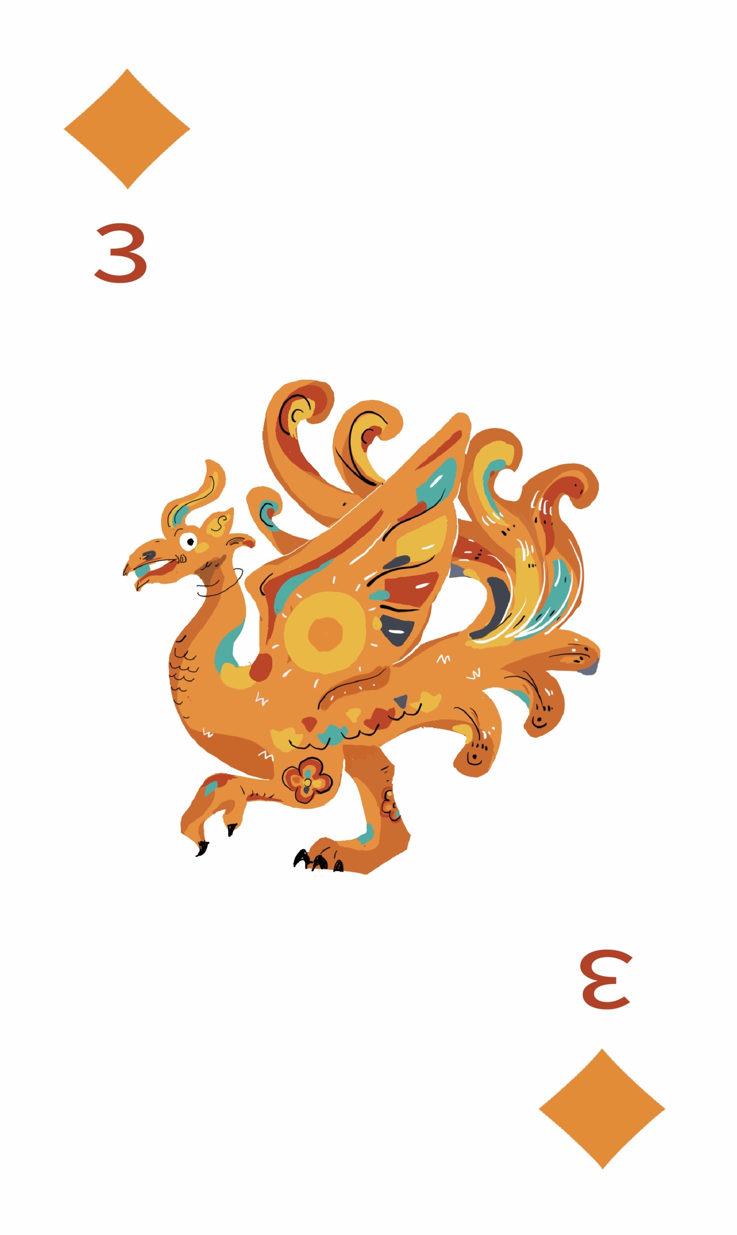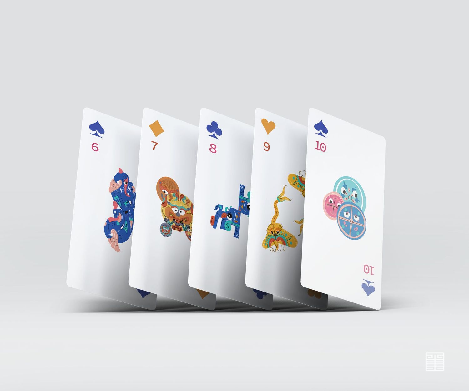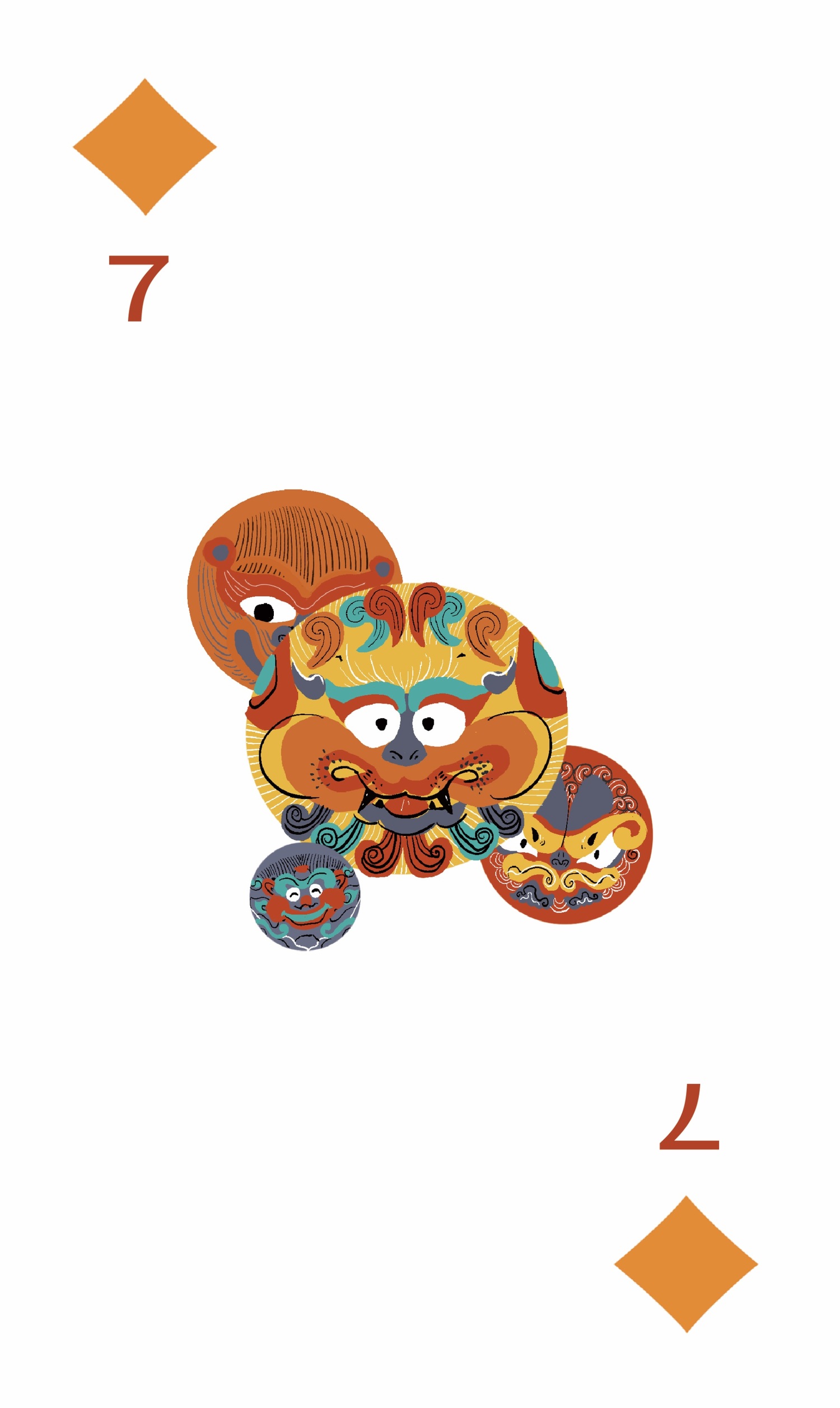 以扑克牌为载体,秦砖汉瓦博物馆及西安明清皮影艺术博物馆中生动的造型为原型创作。有趣的形态,结合以往课程提供的构成基础,提炼相关元素加以创作,制作出以“怪”为题的小插画文创。