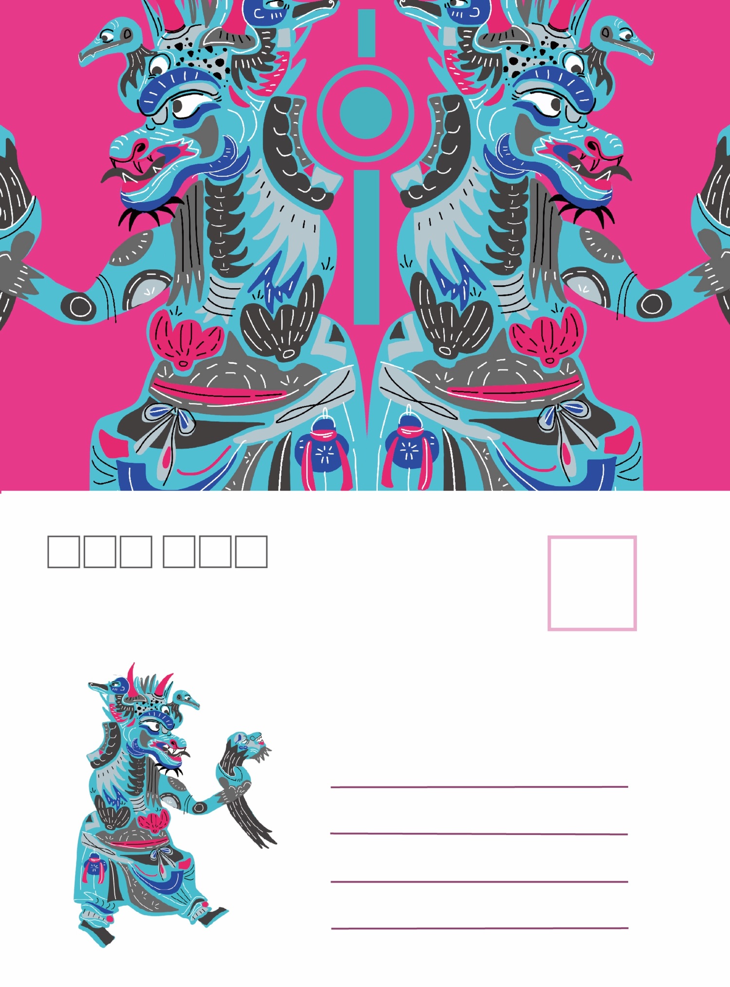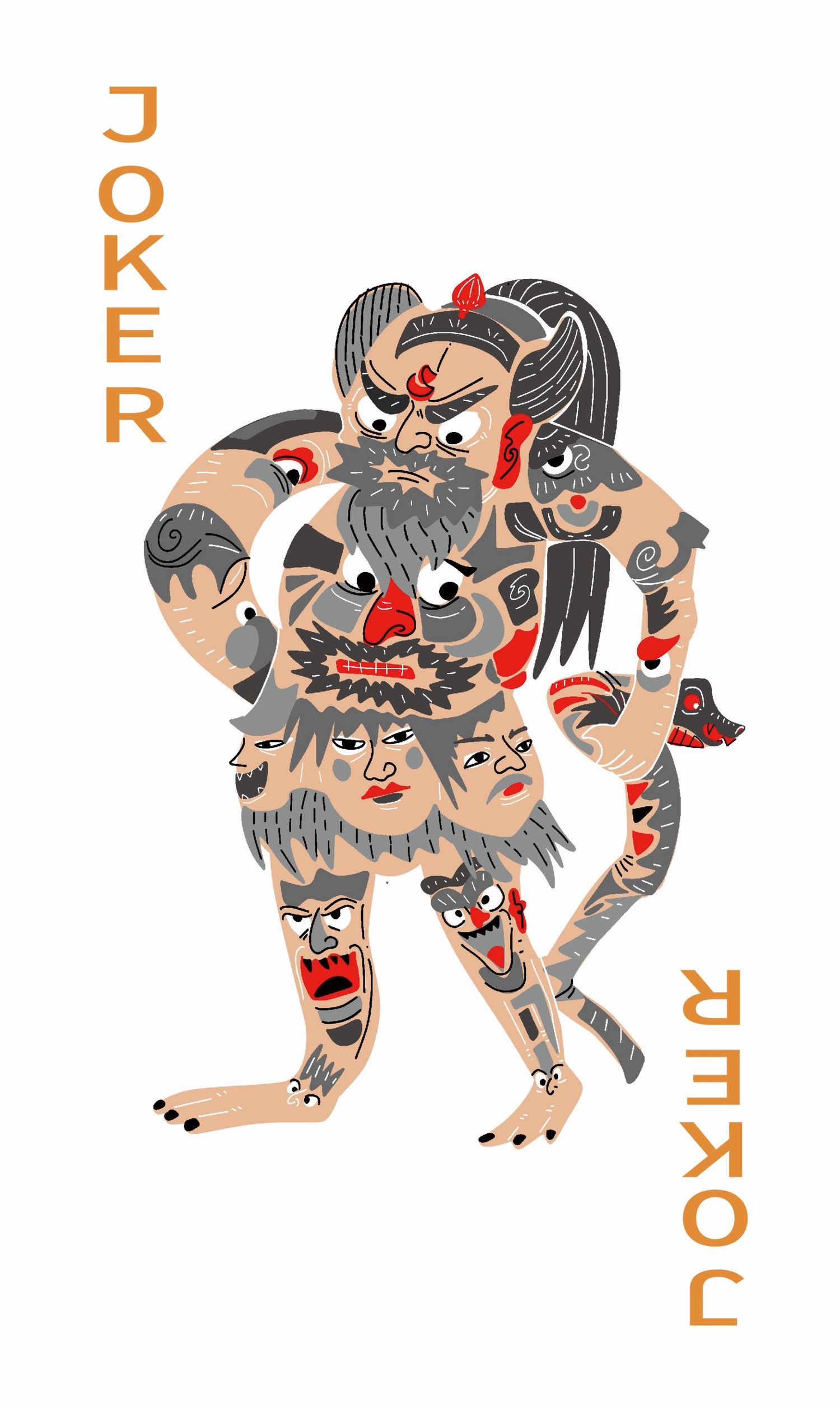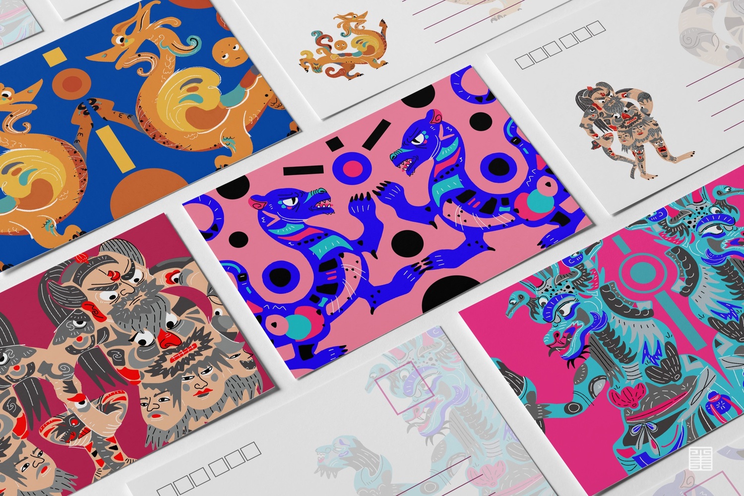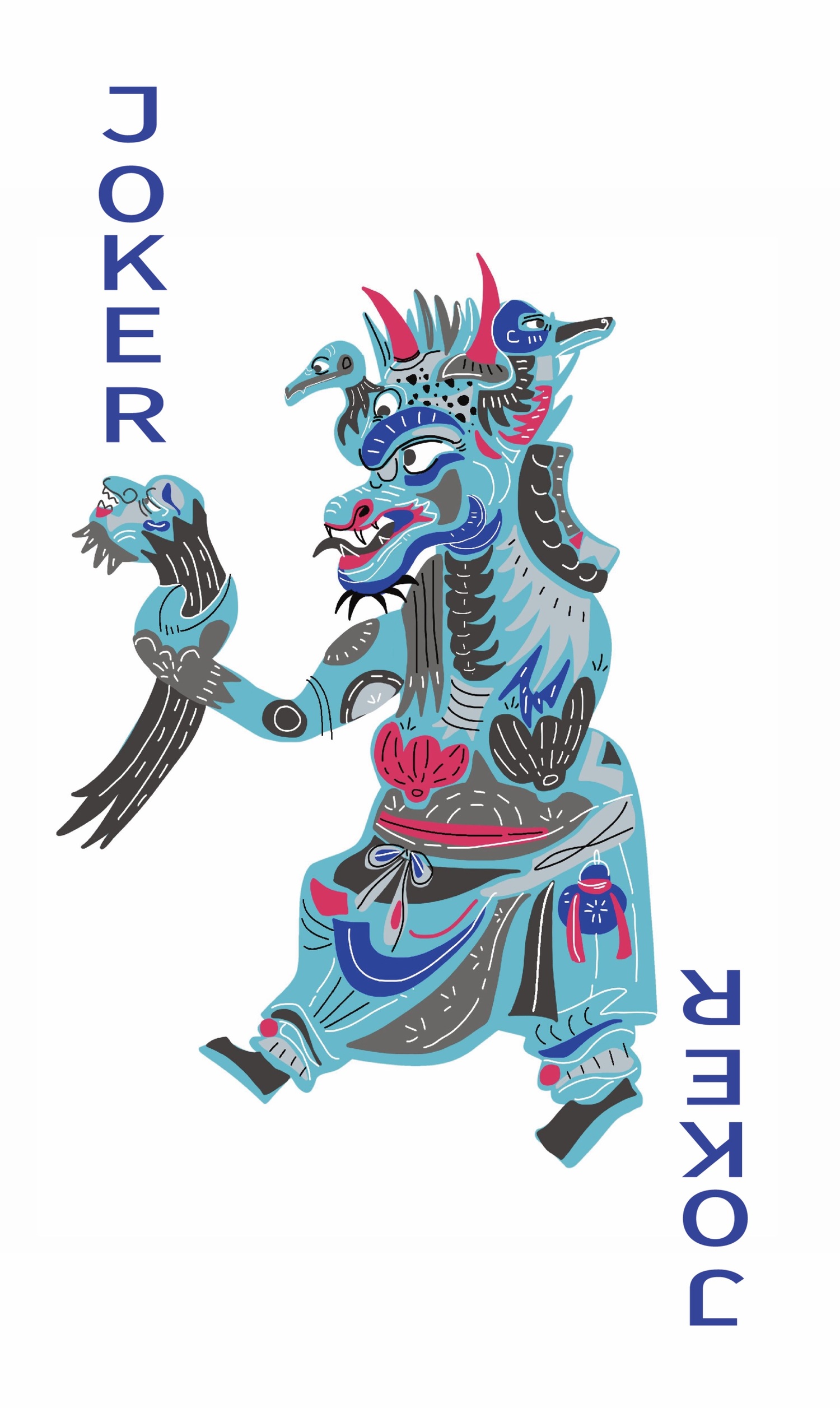 《怪》由三人小组在2021年10月考察期间整合考察资料创作而成。以扑克牌为载体,秦砖汉瓦博物馆及西安明清皮影艺术博物馆中生动的造型为原型创作。