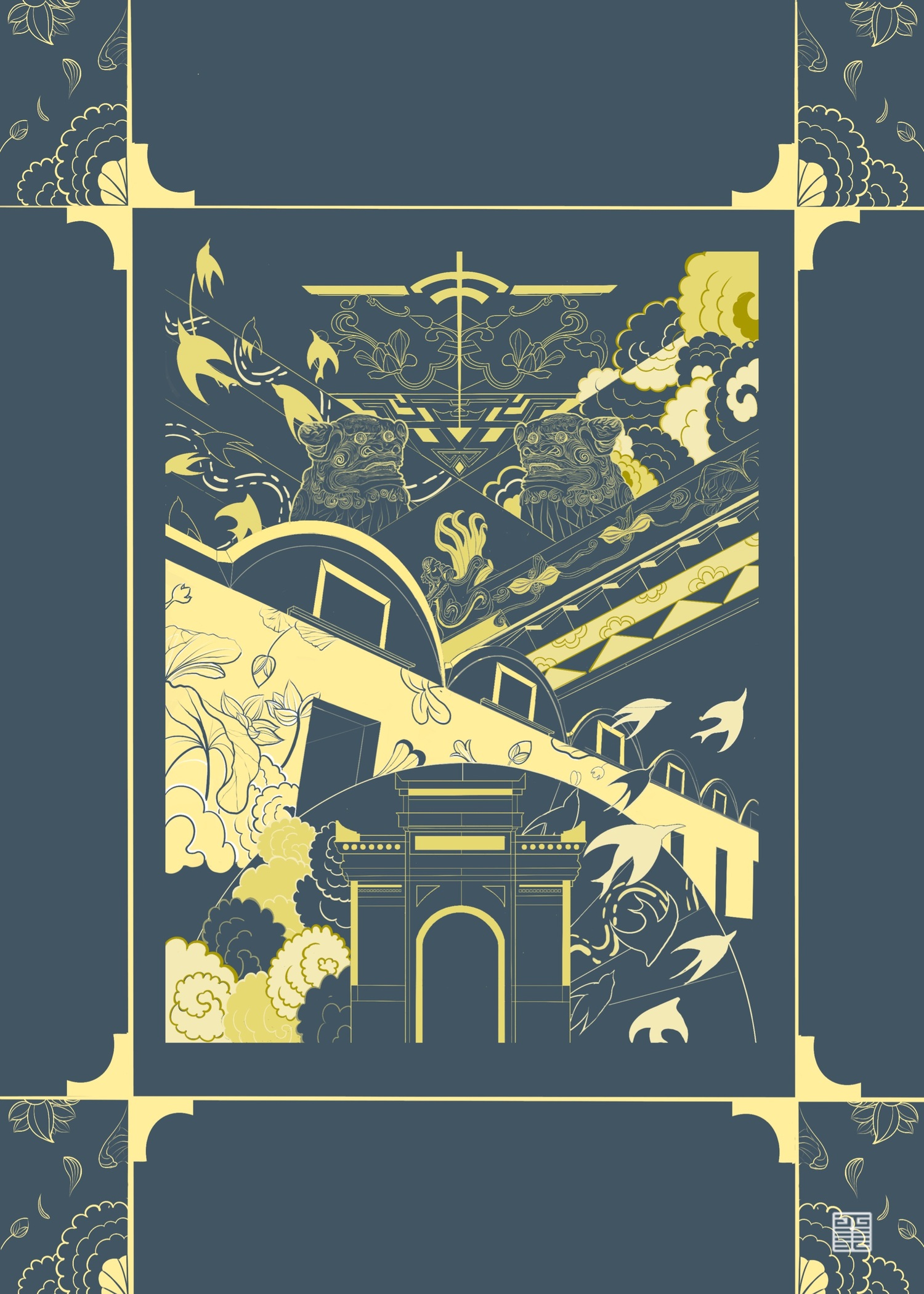 麒麟,是中国古代神话中的一种瑞兽,是由岁星散开而生成。关于麒麟的记载,最早出现于中国古代文明图案《河图洛书》。古人把麒麟当作仁宠,雄性称麒,雌性称麟,认为麒麟出没处,必有祥瑞,有时用来比喻才能杰出、德才兼备的人。麒麟是吉祥神宠,主太平、长寿。有诗云:“麒麟踏祥云,人间百难消。”,设计师以五省会馆雕像瑞兽麒麟为原型,将福蕴纳于衣襟,意在佑君