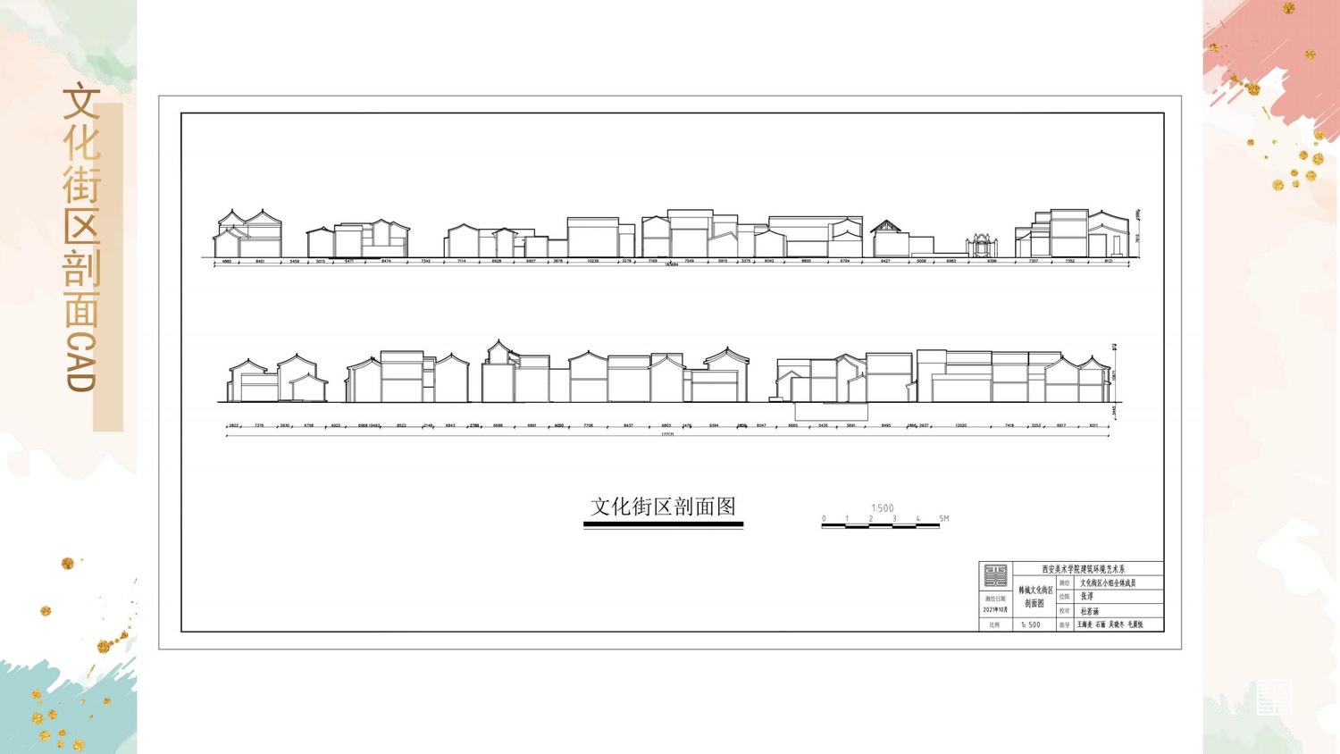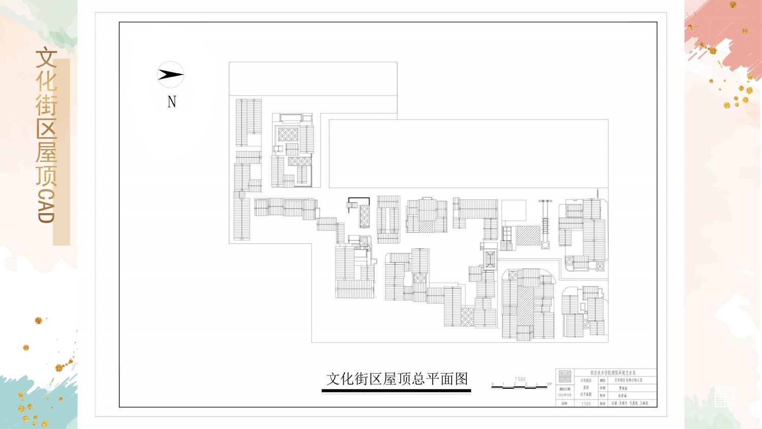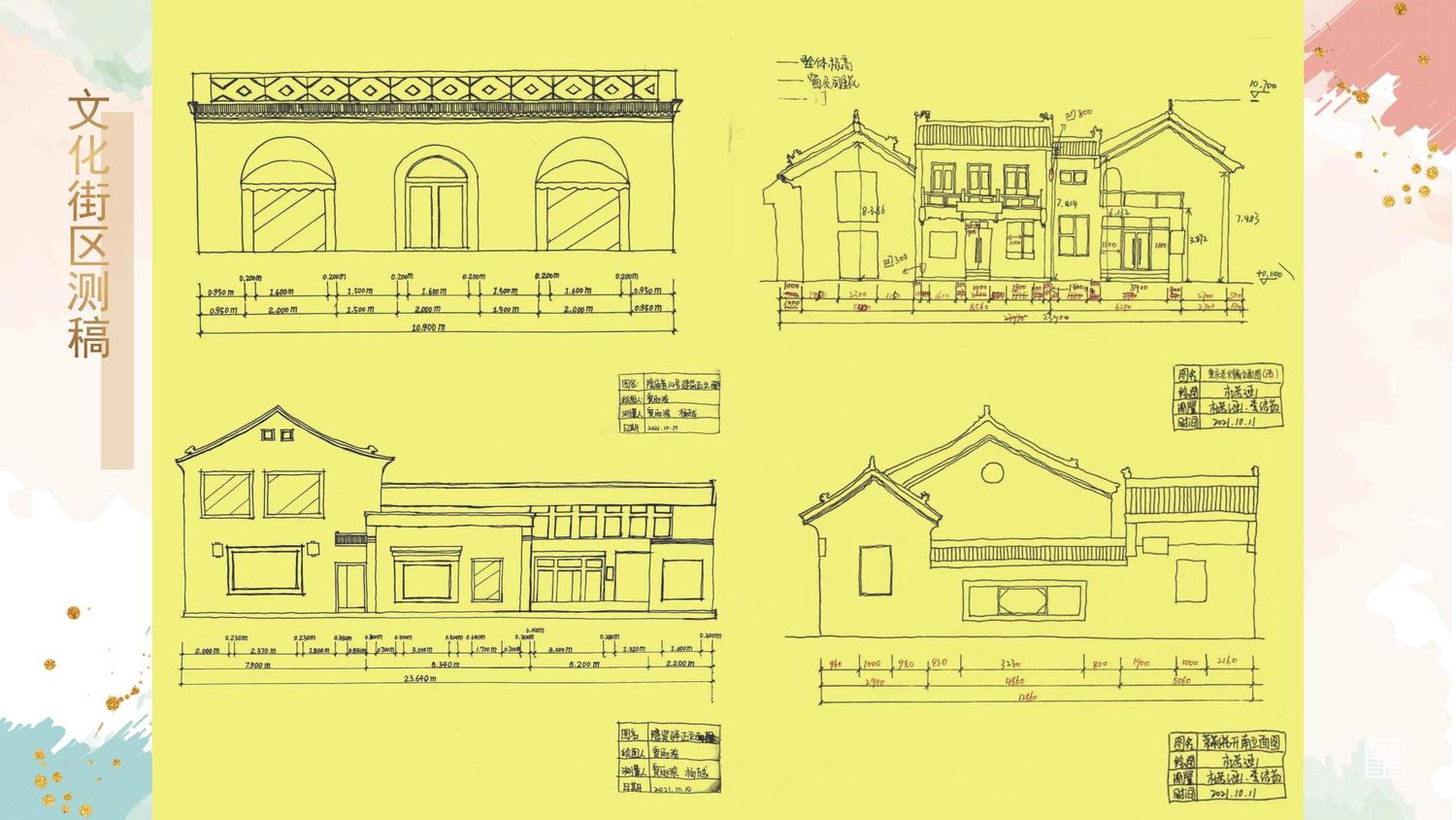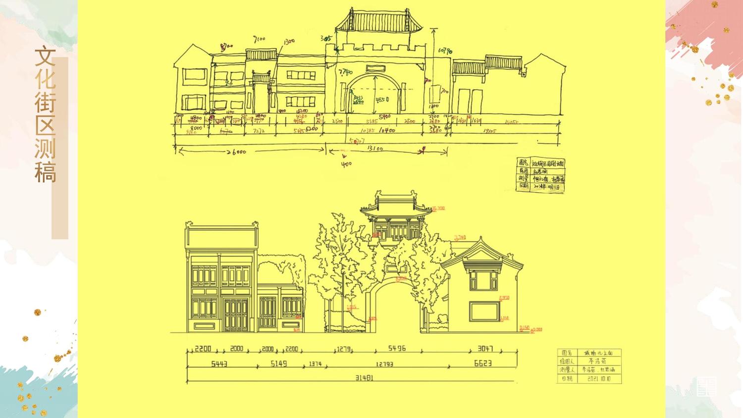 韩城古城文化街区位于古城东北片区,总占地面积70亩,建筑面积3万平方米。现文化街区共有43栋建筑,其中有34栋公共建筑,7栋民居建筑,1栋可看见内部结构的小型古建筑,和1栋在城墙上的古建筑。公共建筑中包括1栋旅游建筑,5栋科教文卫建筑,3栋办公建筑,25栋商业建筑。因为疫情原因,现只有11栋商业建筑在营业。
