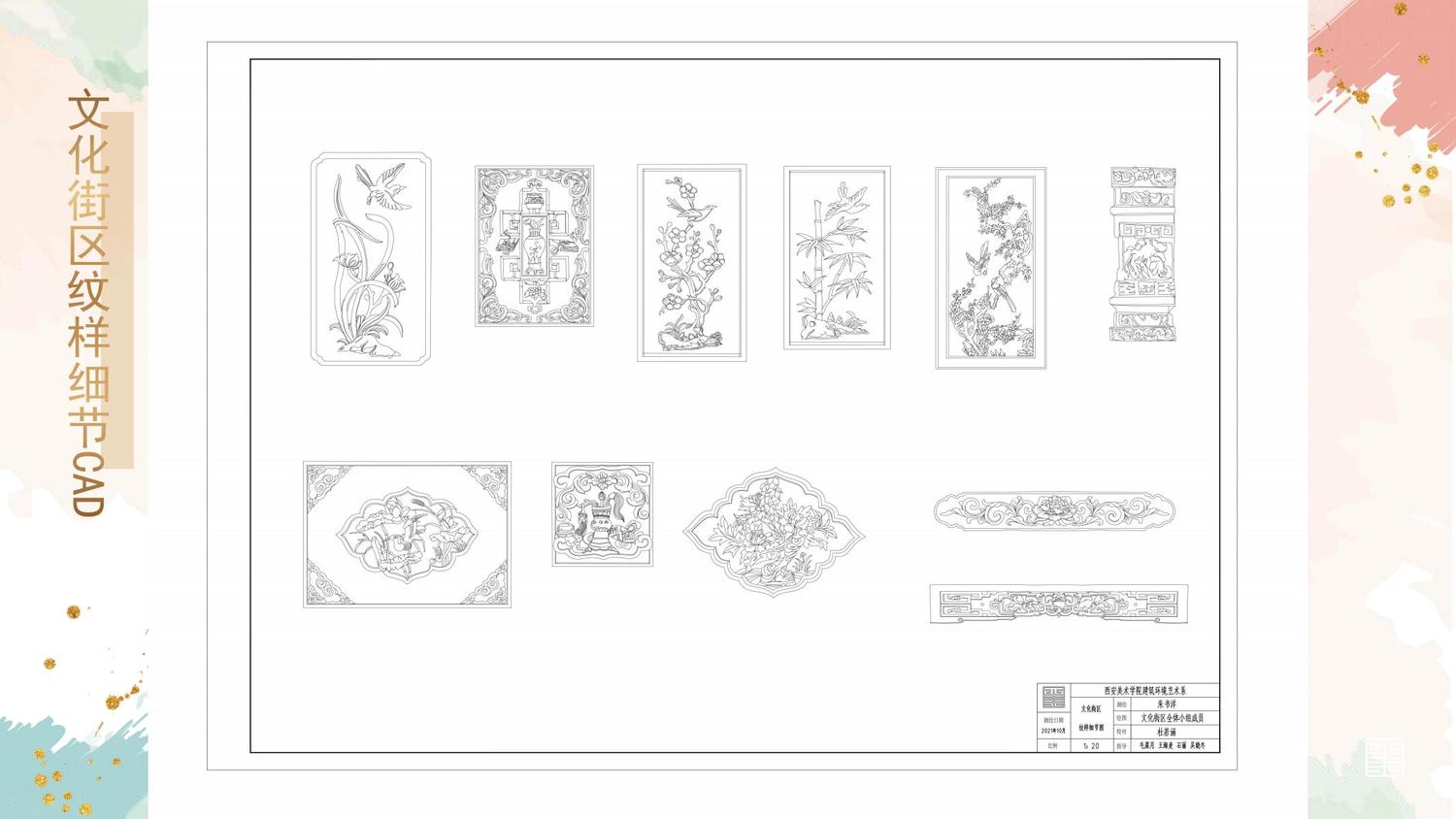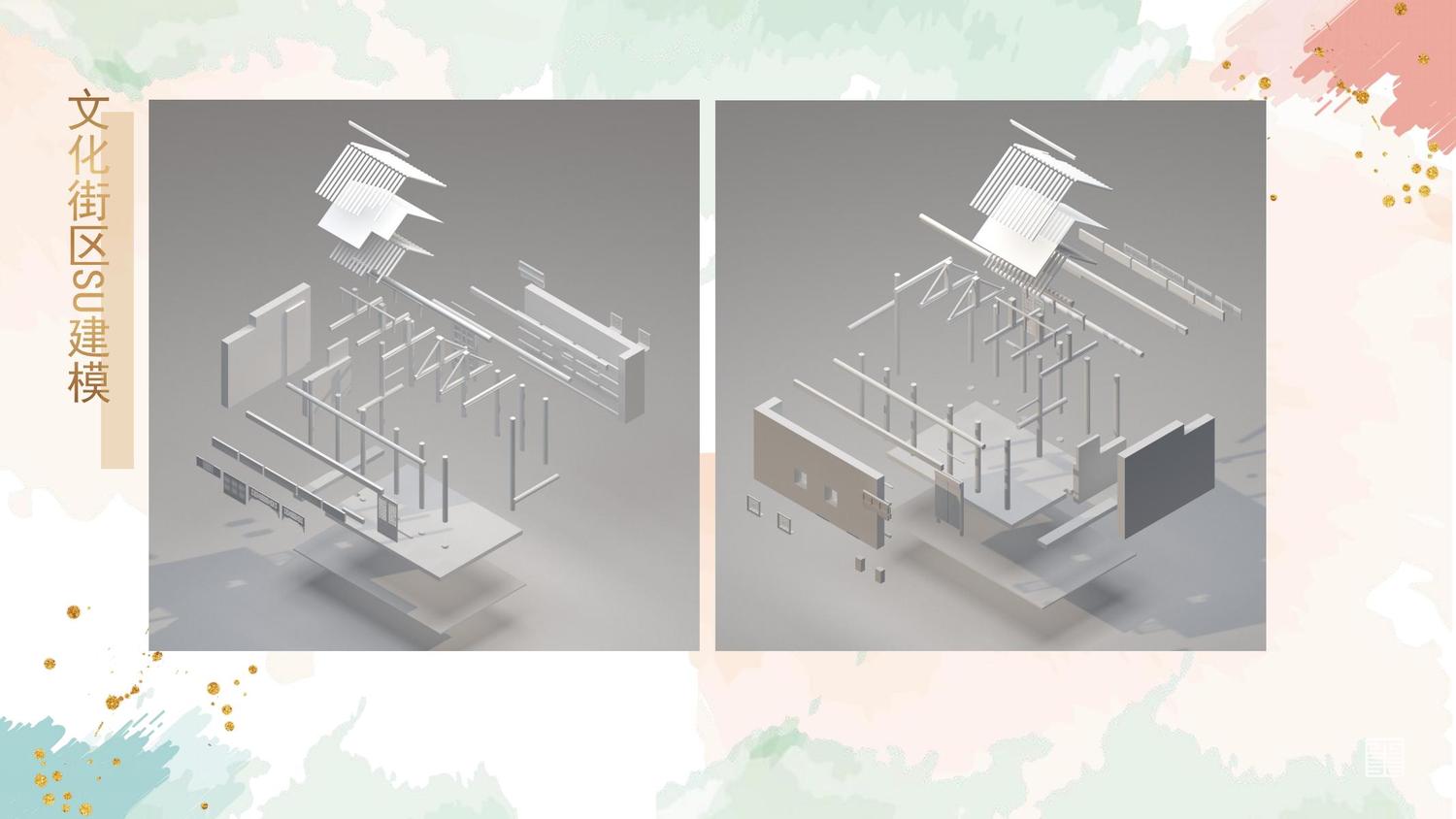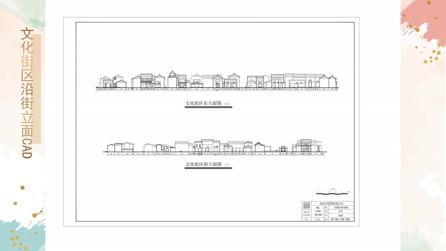 该文化街区为仿古建筑商业街区,屋顶基本上为硬山顶,少数为悬山顶,城墙上的古建筑为歇山顶。门窗有仿古样式、古代样式、现代玻璃三种。房屋表面多为青砖装饰。