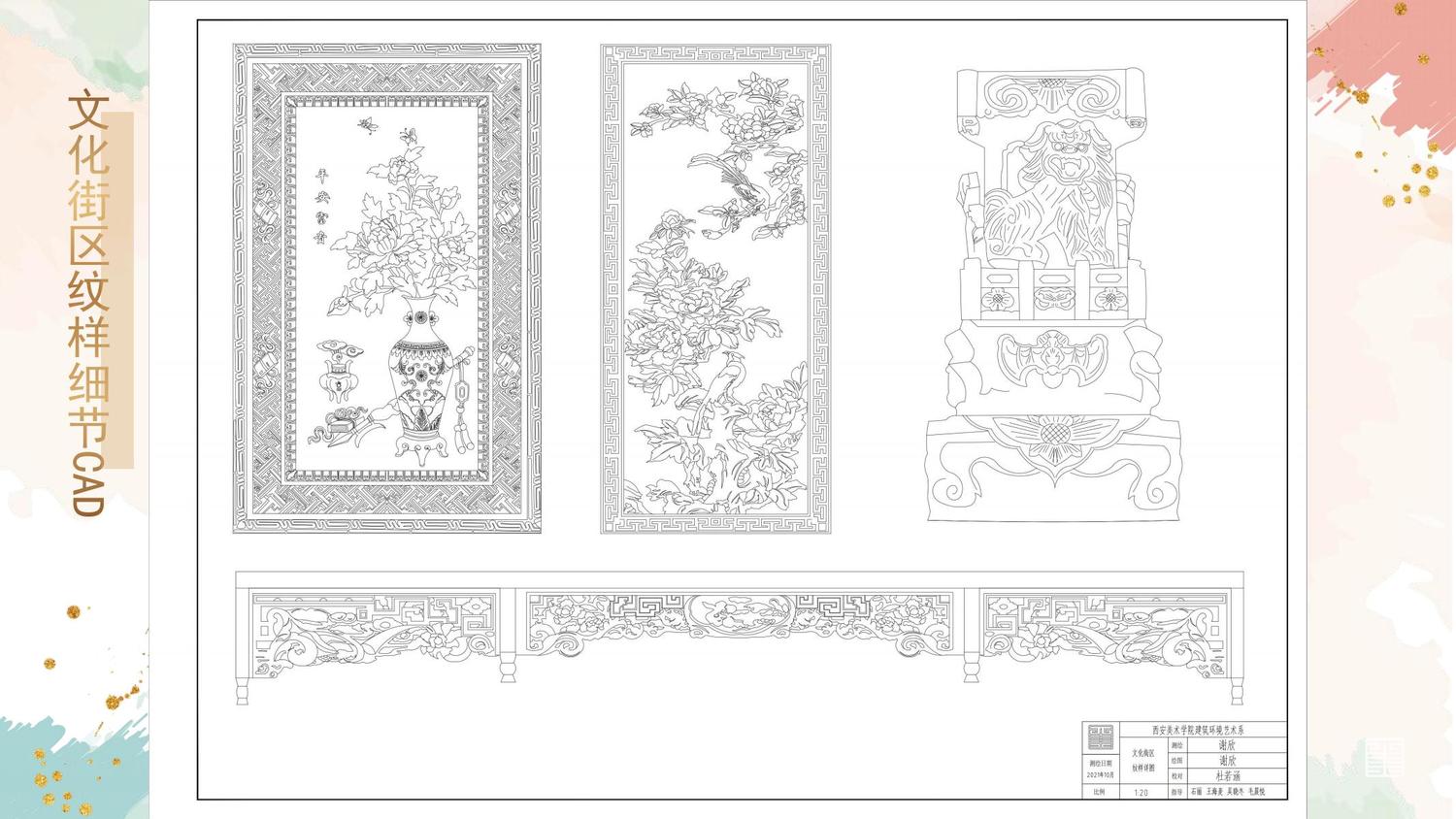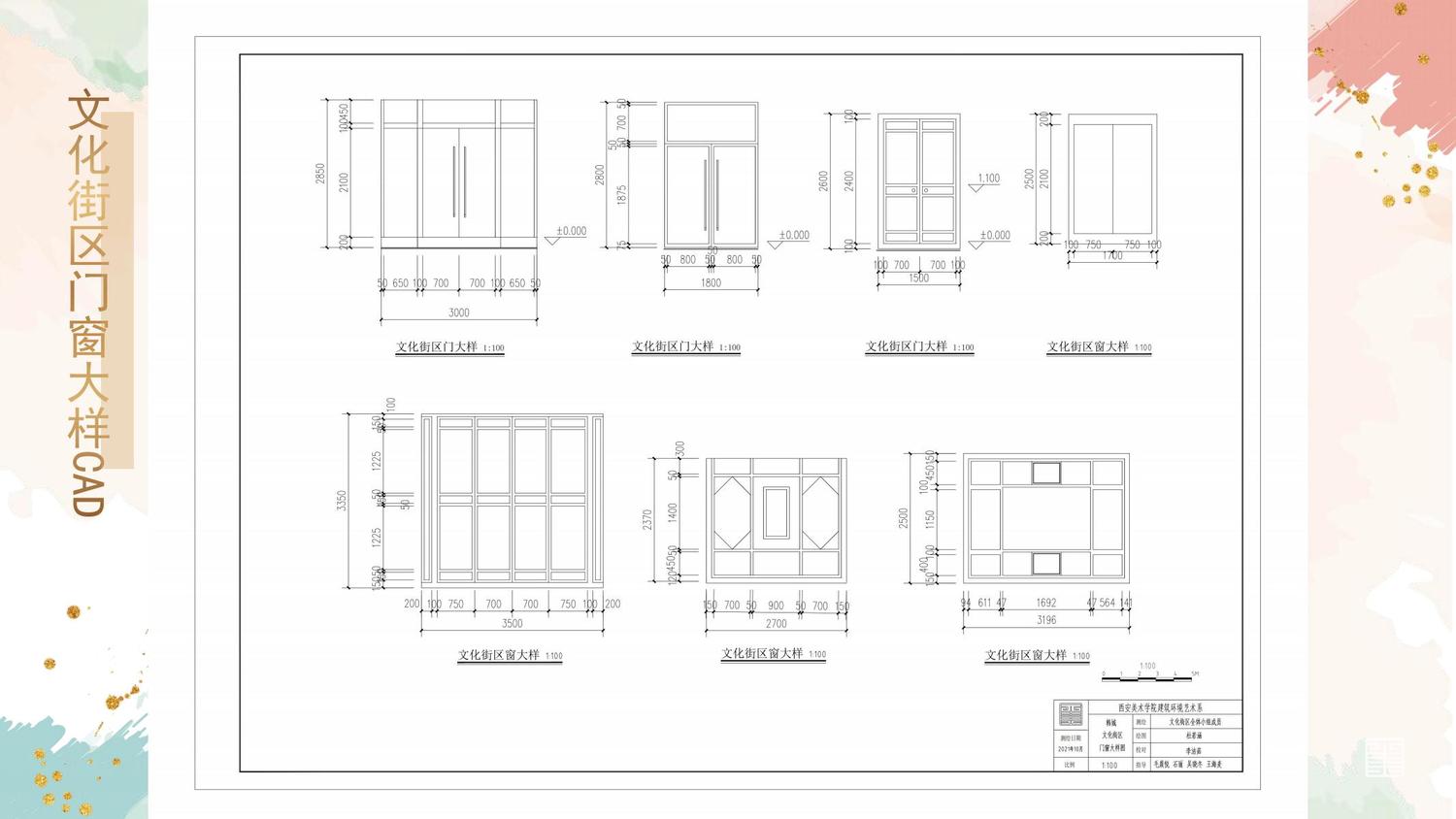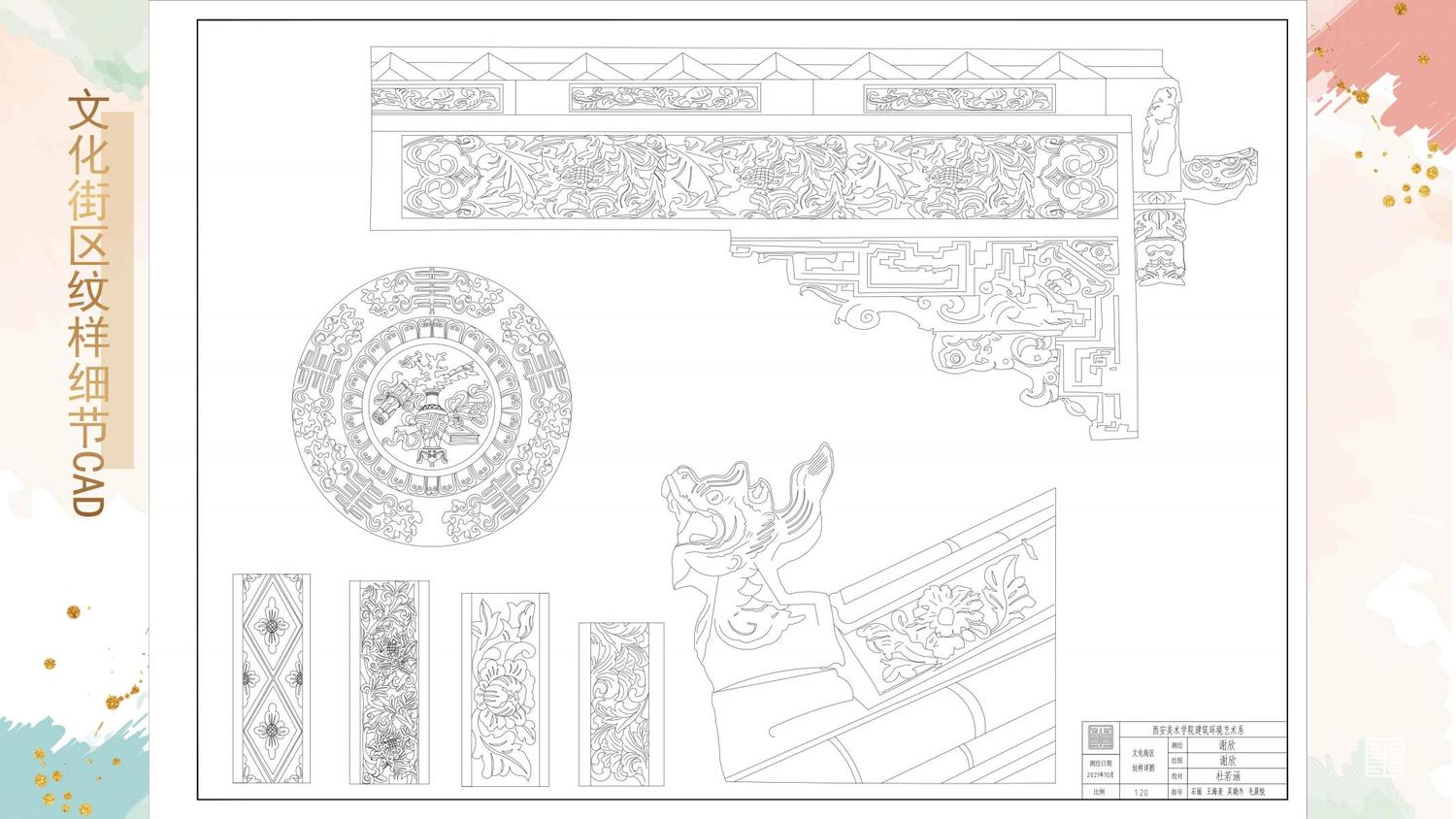 该文化街区为仿古建筑商业街区,屋顶基本上为硬山顶,少数为悬山顶,城墙上的古建筑为歇山顶。门窗有仿古样式、古代样式、现代玻璃三种。房屋表面多为青砖装饰。