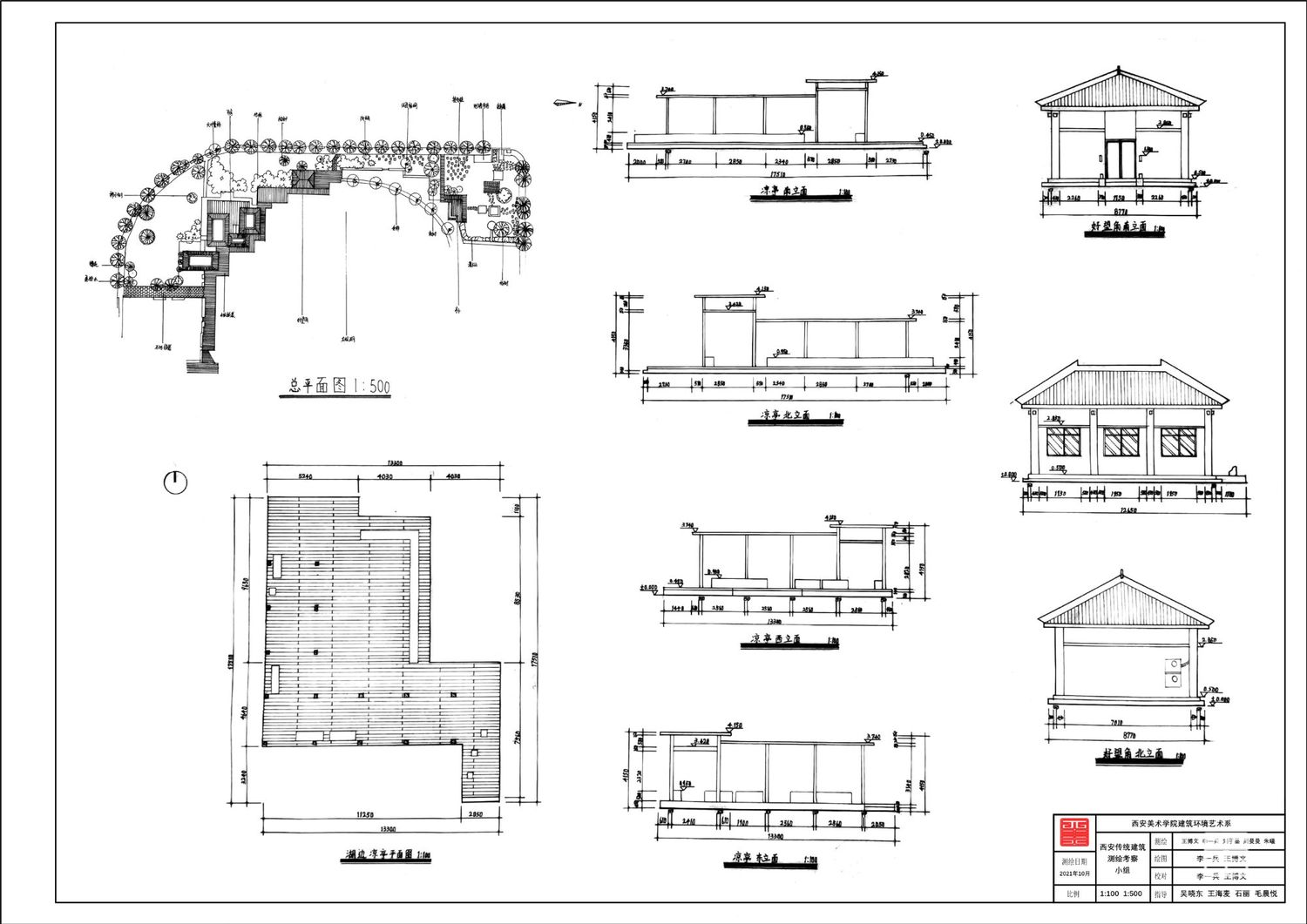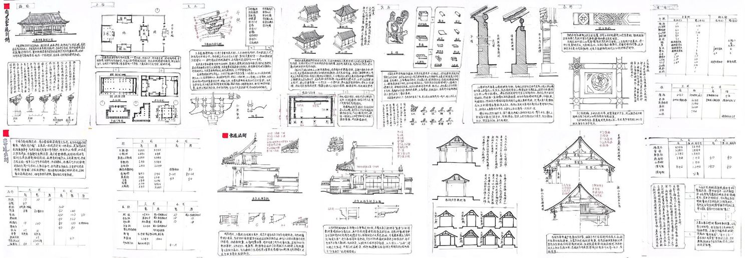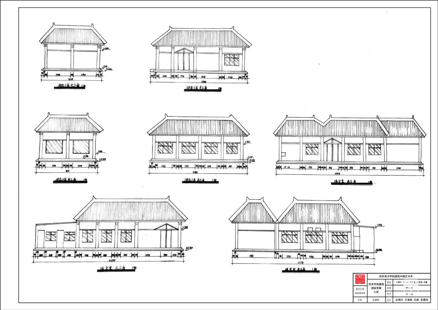 西安传统建筑测绘考察小组工作主要围绕考察、测绘西安城区内历史保护建筑、传统建筑形式公共建筑、校区内传统形式建筑的空间维和形式、平立剖特点、建筑空间细节尺度。测绘考察建筑有西安钟楼、陕西历史博物馆、兴庆宫公园、关中民俗博物院,结合网上长安城、党家村、梁代村芮国遗迹博物馆的资料收集,综合线上线下的测绘考察资料,掌握中国传统建筑历史发展沿革墩、地域人文特色、综合环境要素、功能技术以及艺术形式等全方位多层次的分析研究学习。