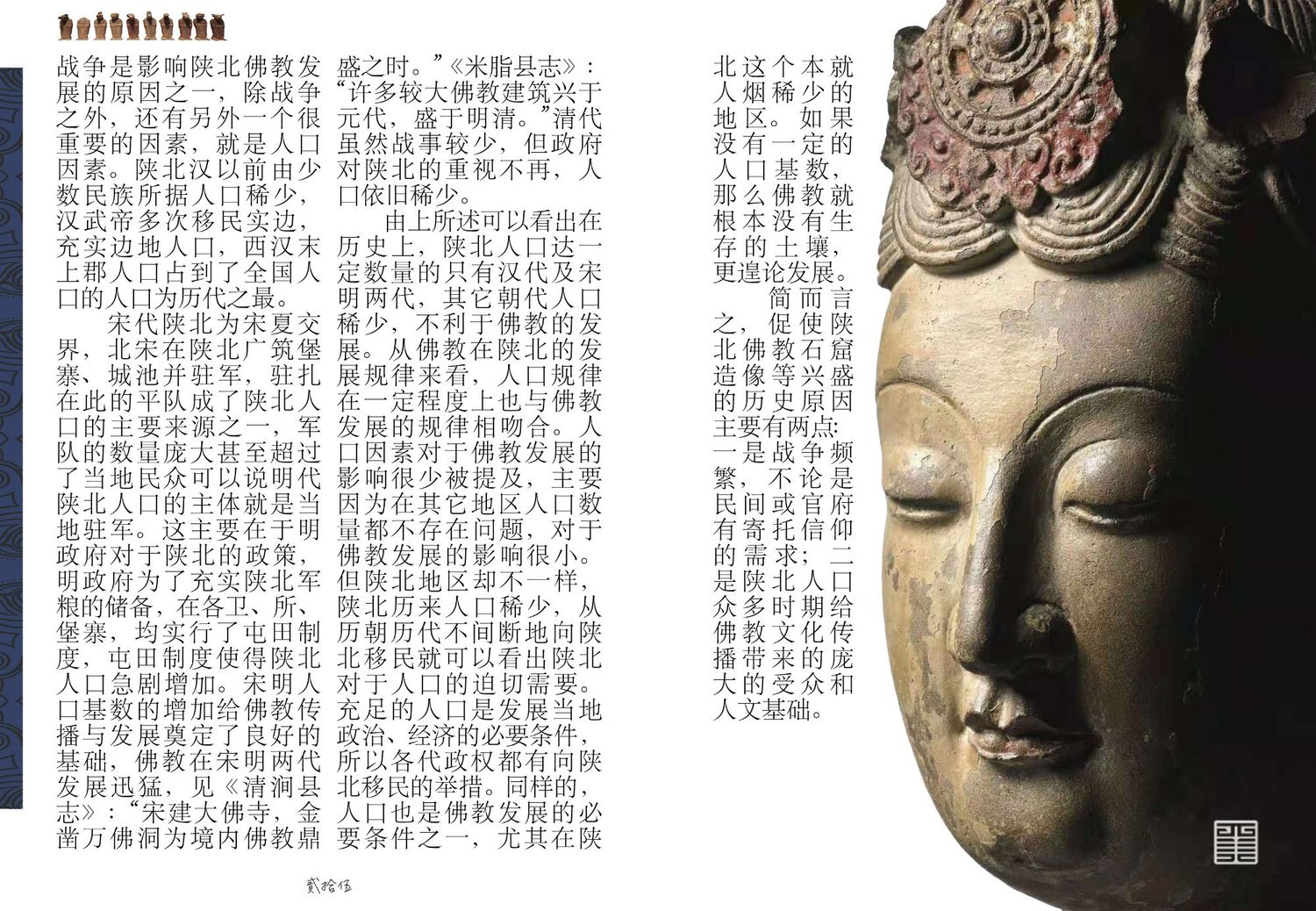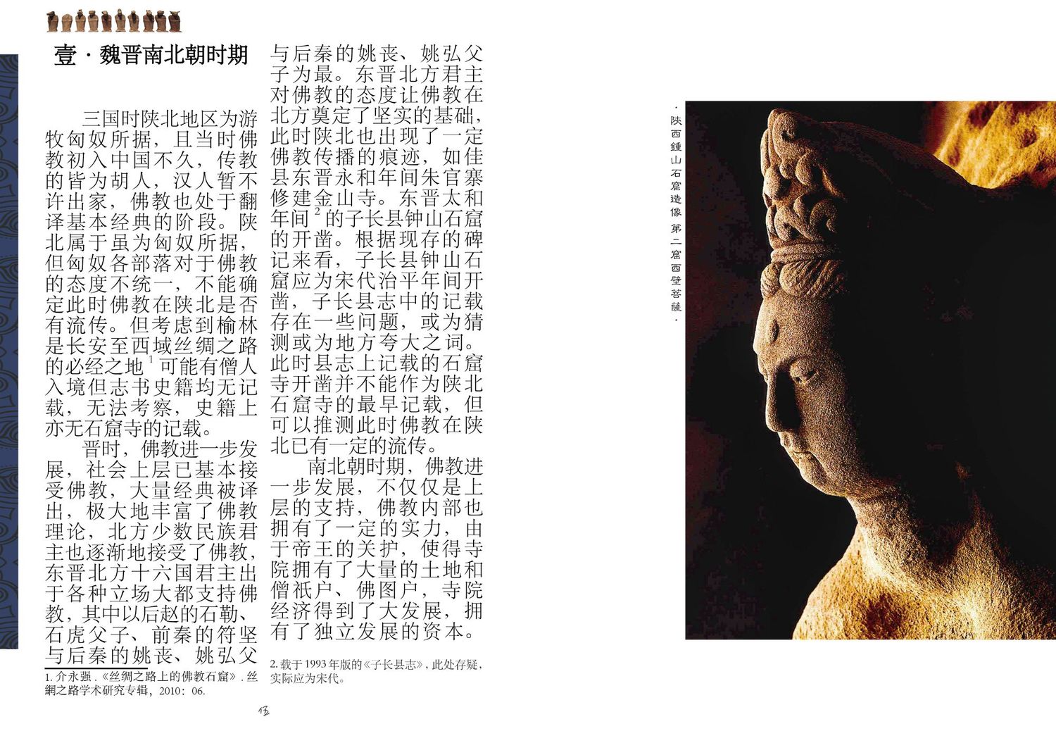 陕北自古是一个多民族多信仰文化并存的地区,历史上多个民族在这里生产生活,留下来许多非常宝贵的历史文化遗址、习俗等文化遗产。中国古代信仰大宗——佛教也在此留下了非常多宝贵的遗产供后人探寻,陕北的佛教信仰文化是深厚的、沉重的,本文便从佛教传入陕北以及在陕北的分布、佛教在陕北本土化的表征两个方向展开,带领大家领略神秘的佛教文化。