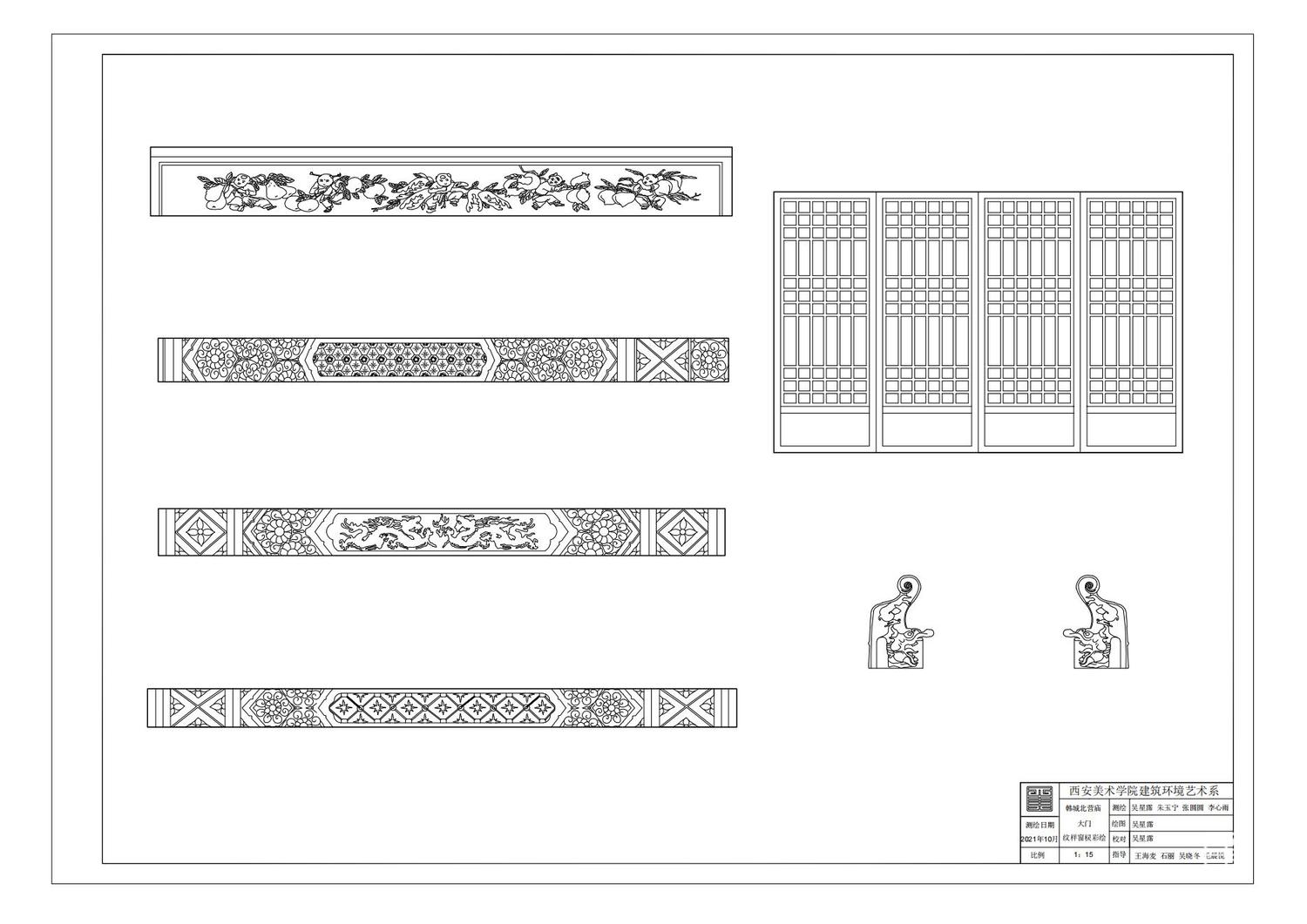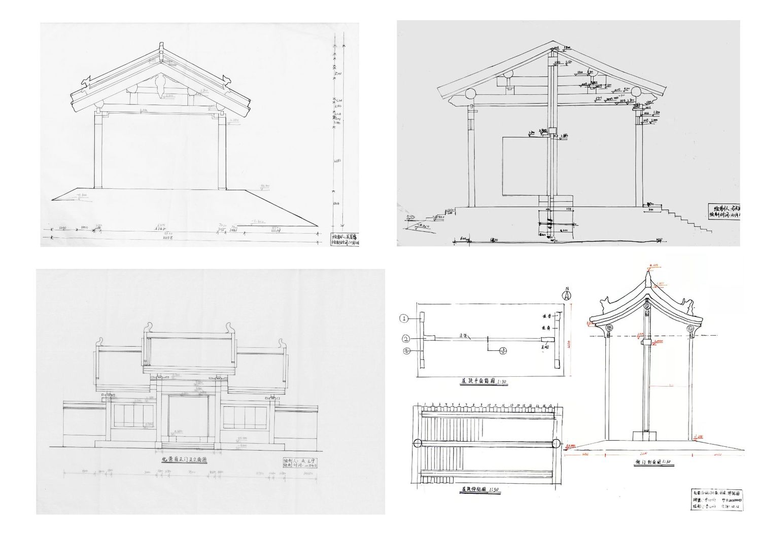北营庙大门属于屋宇式大门,山门是三开间,中间的当心间设门,屋顶为硬山顶,结构类型是木构普通的梁架式结构。