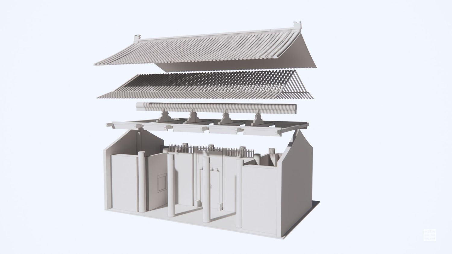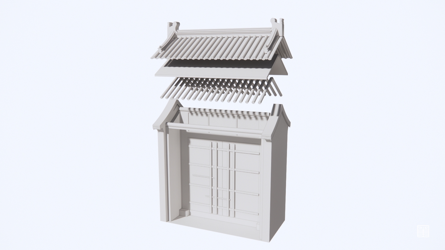 屋宇式大门,是独立式的区域性大门中典型的代表,也是最为常见的一种大门形式,其建筑形态,呈现为一座单独的房屋建筑,既是"门"又是"屋"。在这一类大门之中,规模较大的宫门,呈多开间的门殿形式,而等级较低的宅门,则只是单开间的门屋。