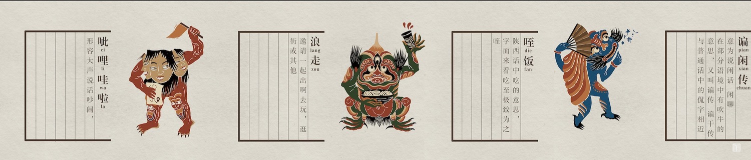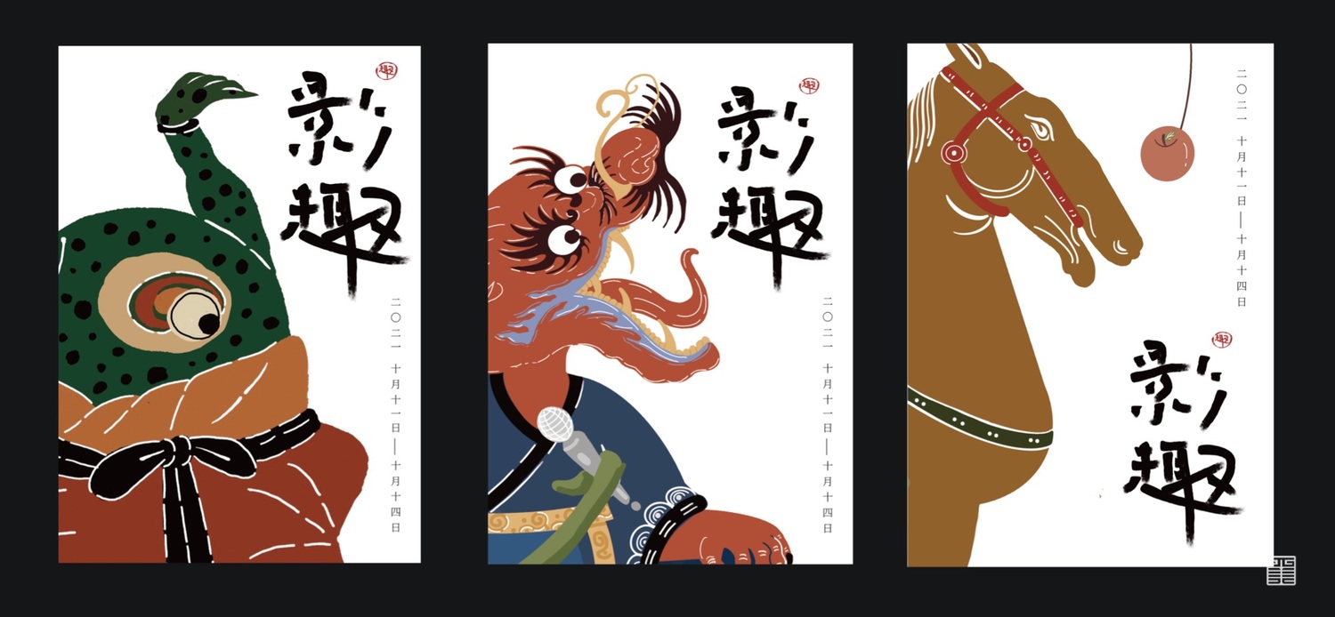 以“影趣”为主题,将路途见闻与民间习俗同皮影的视觉形象结合起来创作了一系列插画,折页,书籍与海报,图文并茂,妙趣横生。
