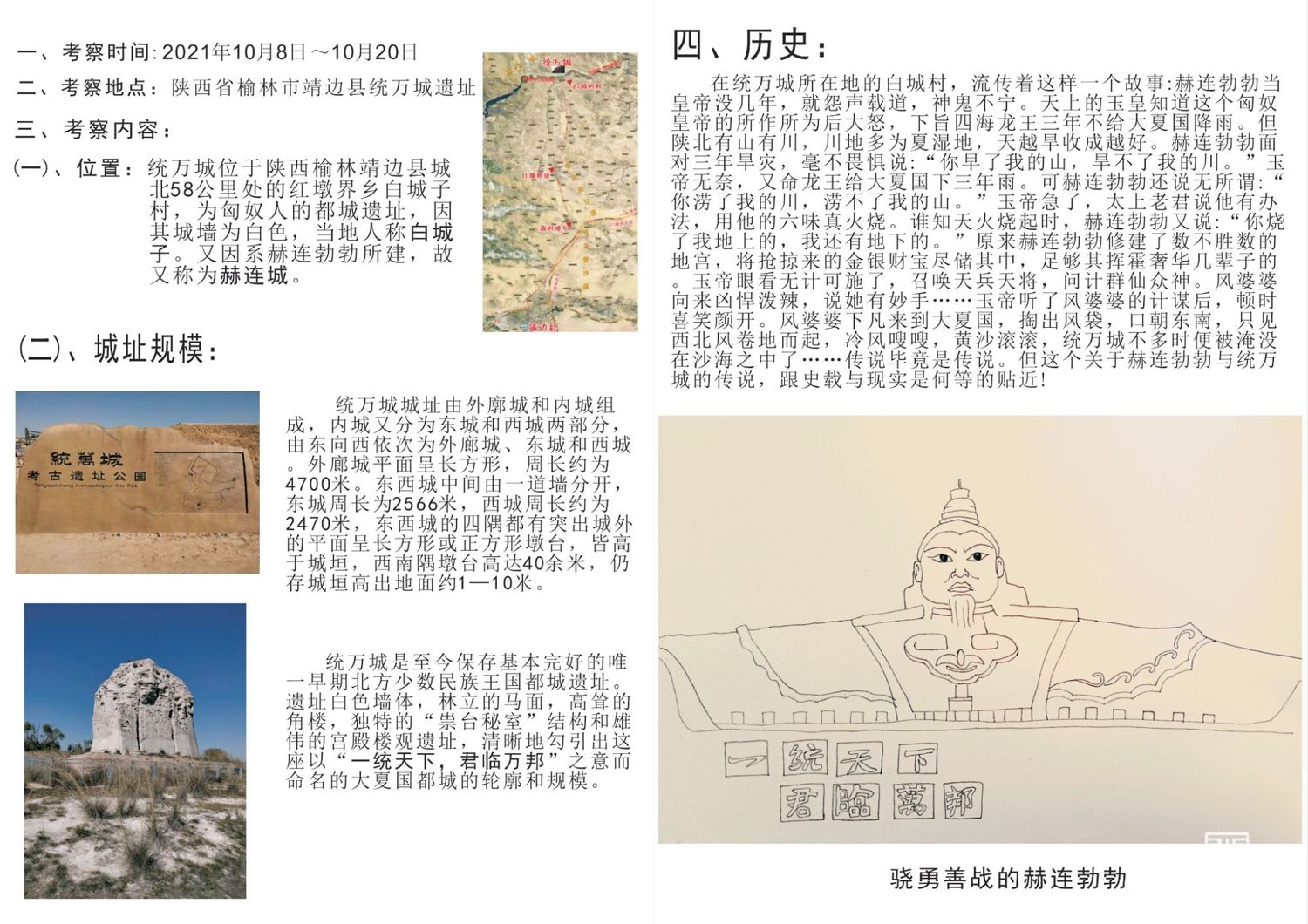 作品名称:艺术教育学院2019级艺教2班魏怡茹、葛利华 统万城文化艺术考察报告