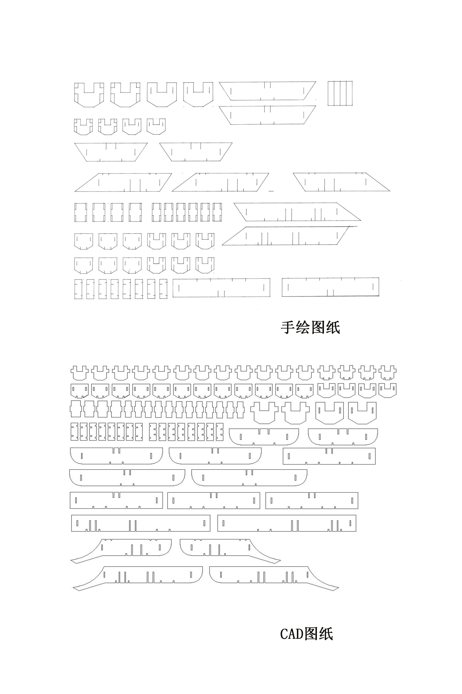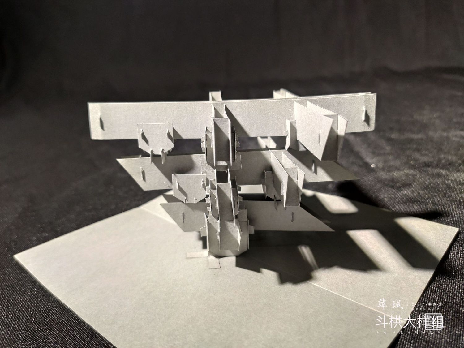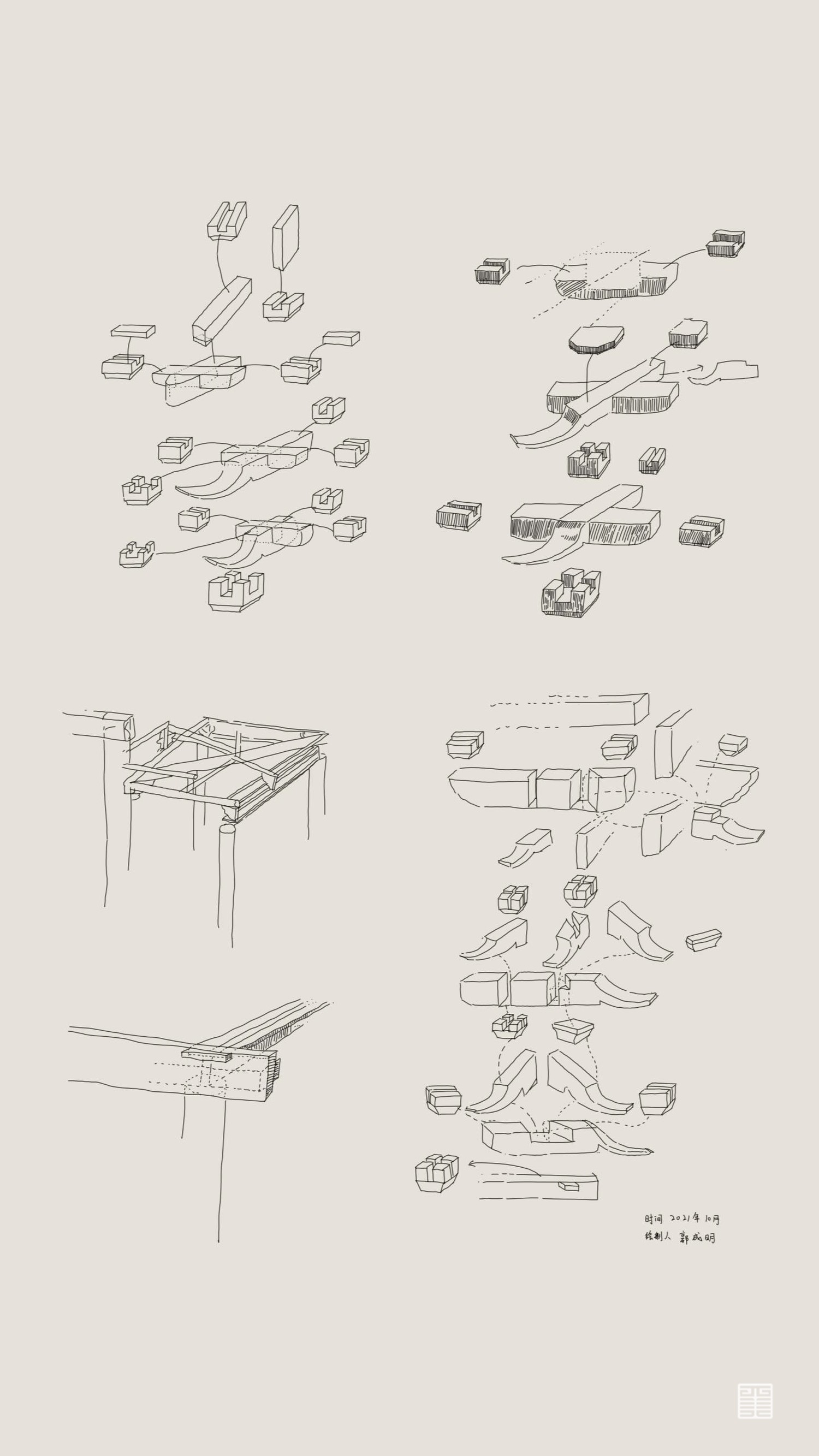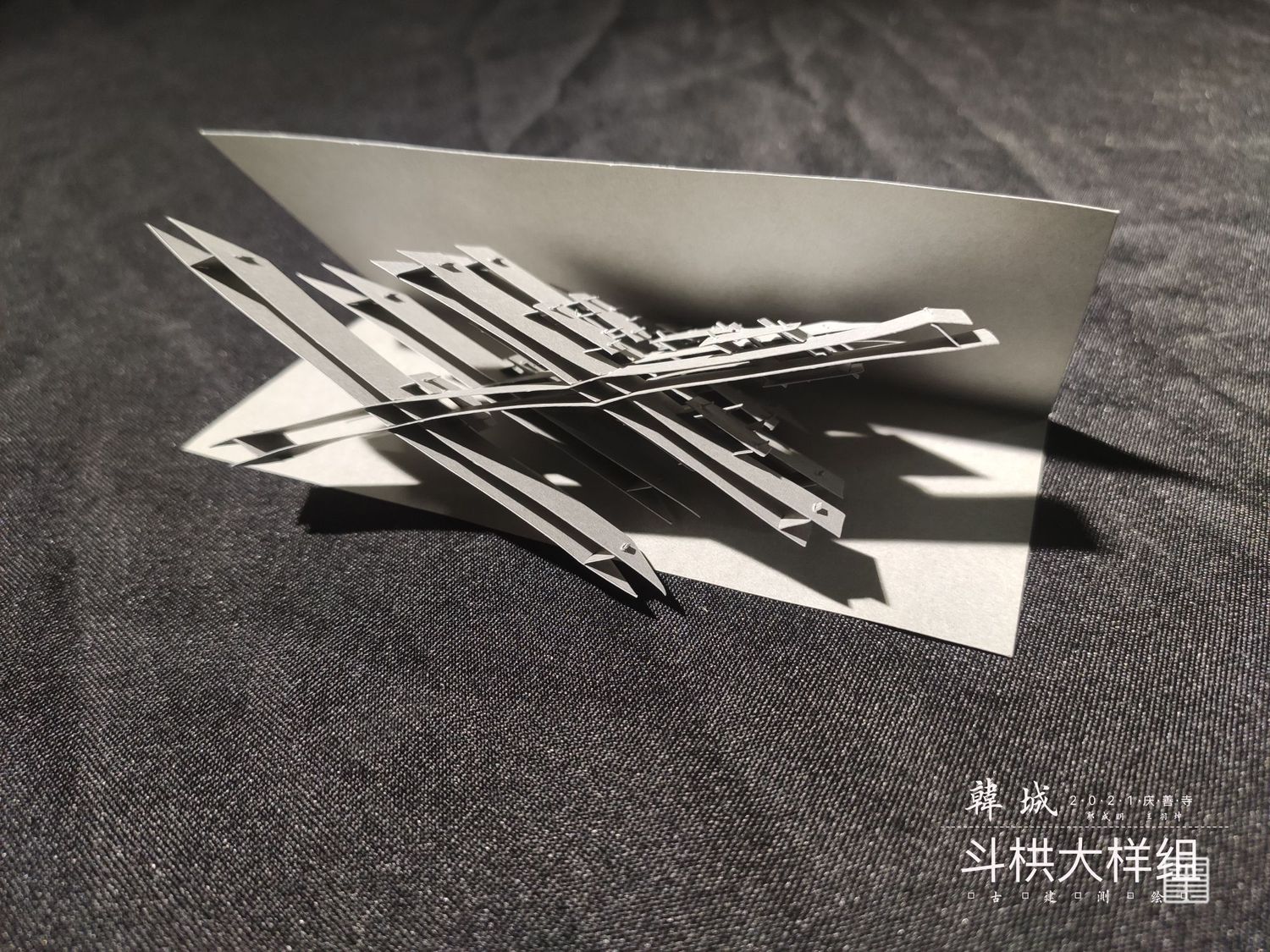 主要以实体模型和文创呈现斗栱样式,模型是以可拆卸木质构建手工制作而成,文创使用两毫米椴木板激光雕刻拼装而成,有成套CAD图纸可以直接打印拼接。