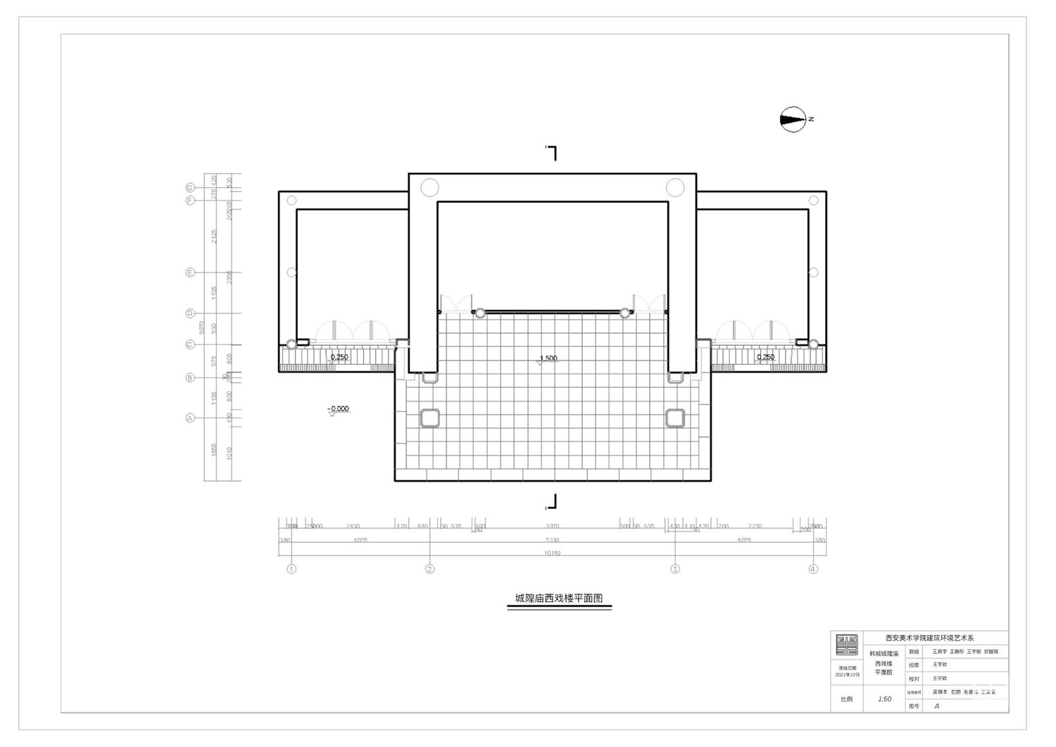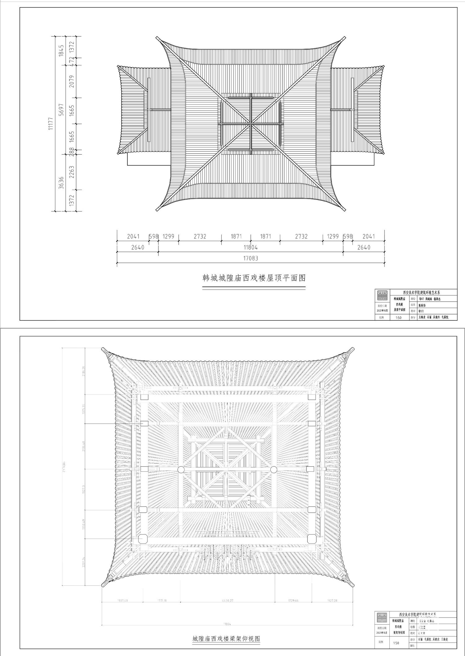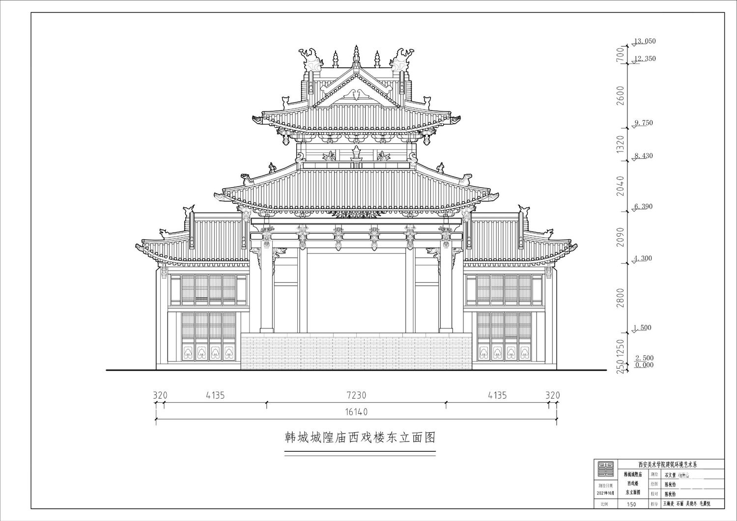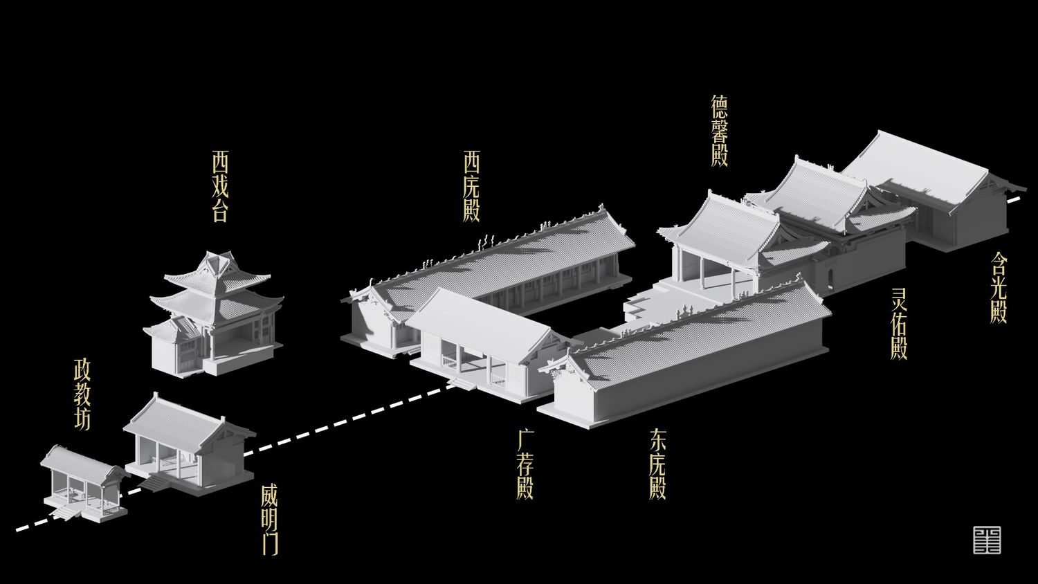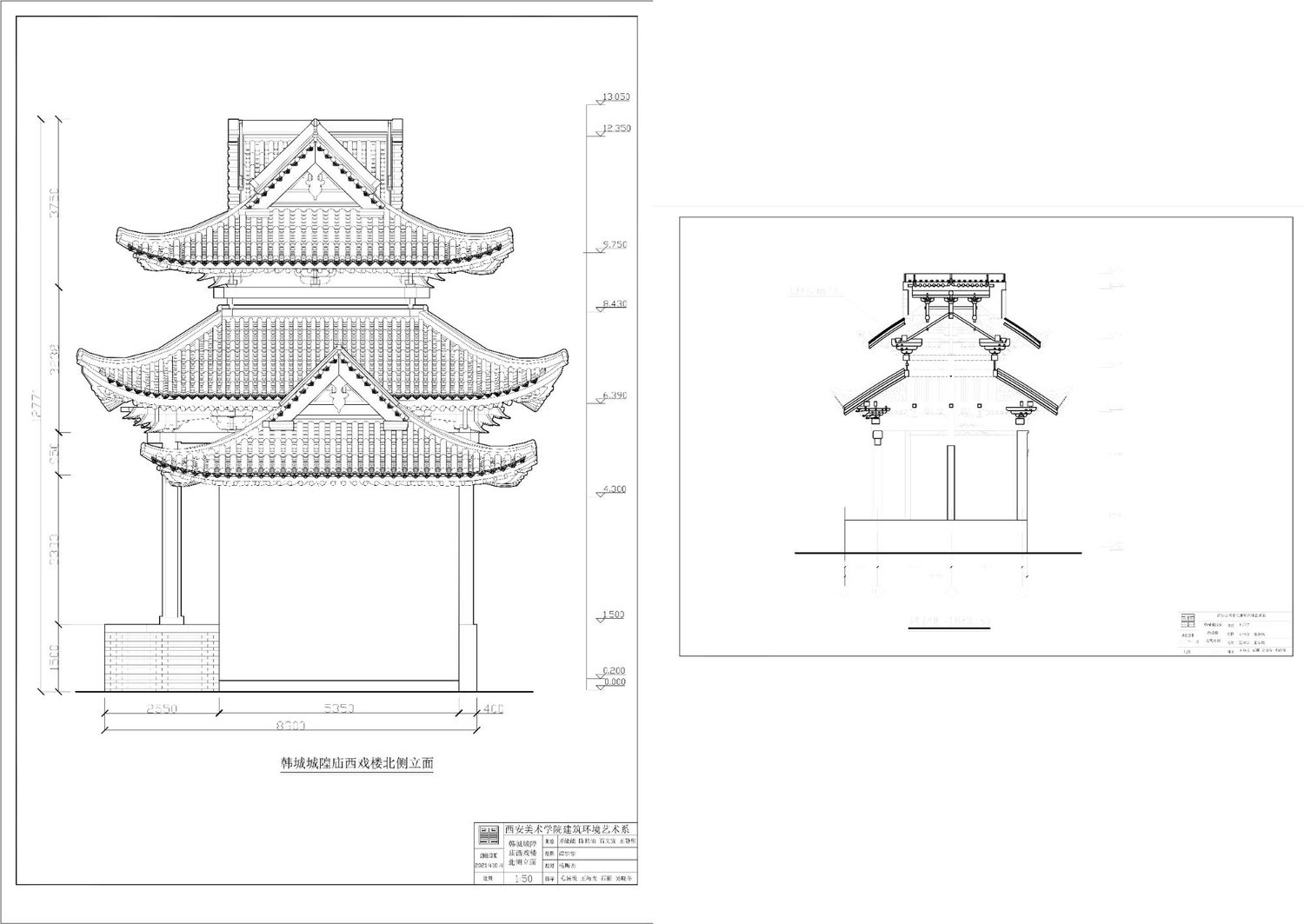 我们组主要测绘的西戏楼由主体和耳房组成,位于威明门北西侧。据《重{图成煌庙钟楼记》载,其戏楼名曰法歌楼,为北社陈大伦首倡而建,始建于明万历年间,据记载清康熙道光年间曾经维修过。整个戏楼由主体与两侧耳房组成。
