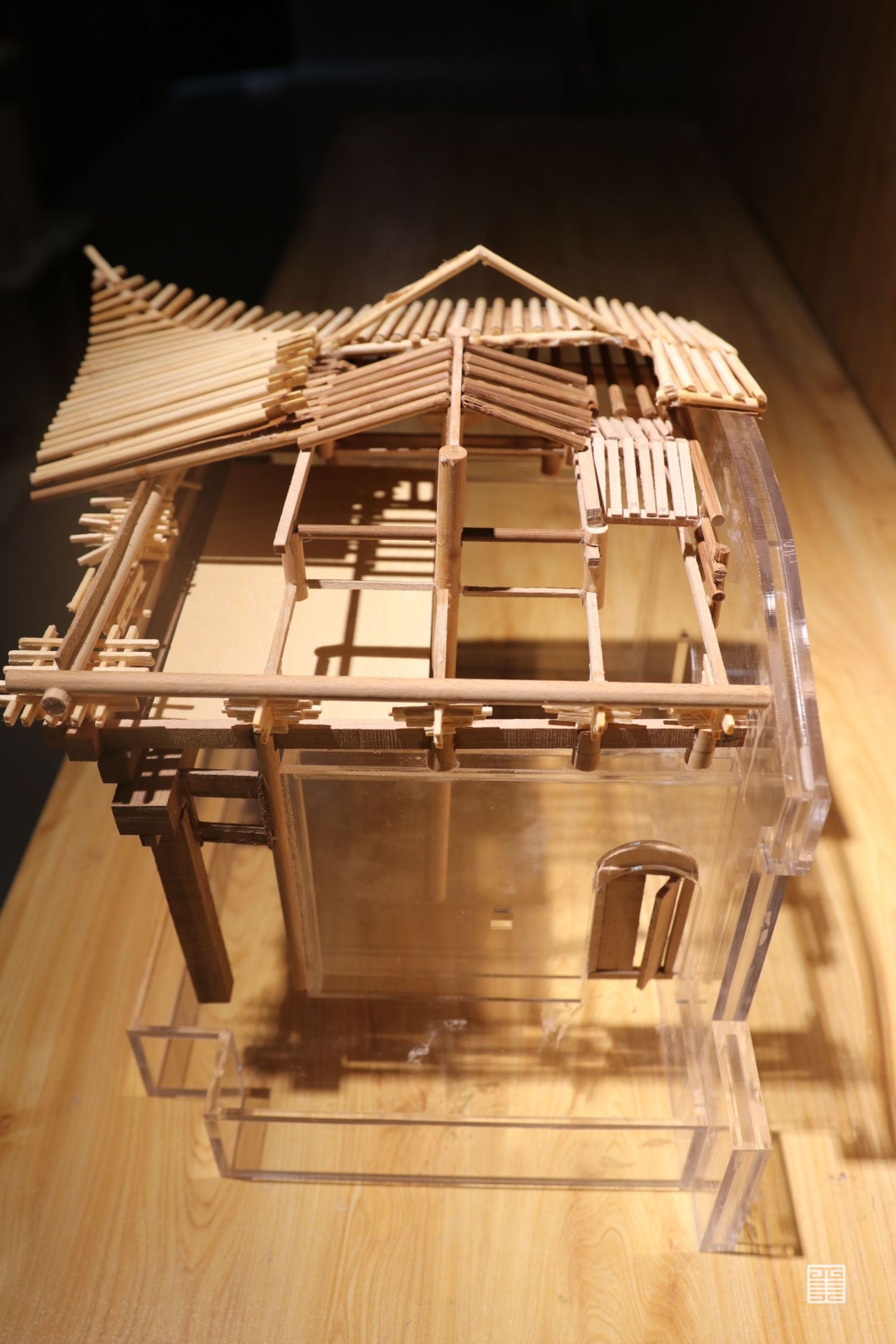 戏楼前台面阔三间,灰脊简瓦覆顶。进深四椽两间,前无平柱,戏台前部为单檐歇山顶,后部为卷棚顶。其雕饰同城隍庙戏台风格一致,而平面布局相似。通面阔6. 2米,进深6. 33米,基高1. 6米,阑额粗大,方形,前部浮雕人物及故事花卉。由额亦为浮雕,由额至台面高3. 2米,台基8. 02平方米。阑额上挂落,设四垂柱,莲花瓣,据地方古城管理所介绍:戏楼大额枋透雕“三龙戏珠”“双凤戏牡丹”,浮雕高阁桥梁,仙人骑马。香鼎宝器、凤飞方天。斗拱平身三组,中间一组为如意群,五踩双昂,柱头科五踩双杪,要头三幅云,由昂承垂花柱。山面斗拱五踩双杪,施檐檩、小枋。