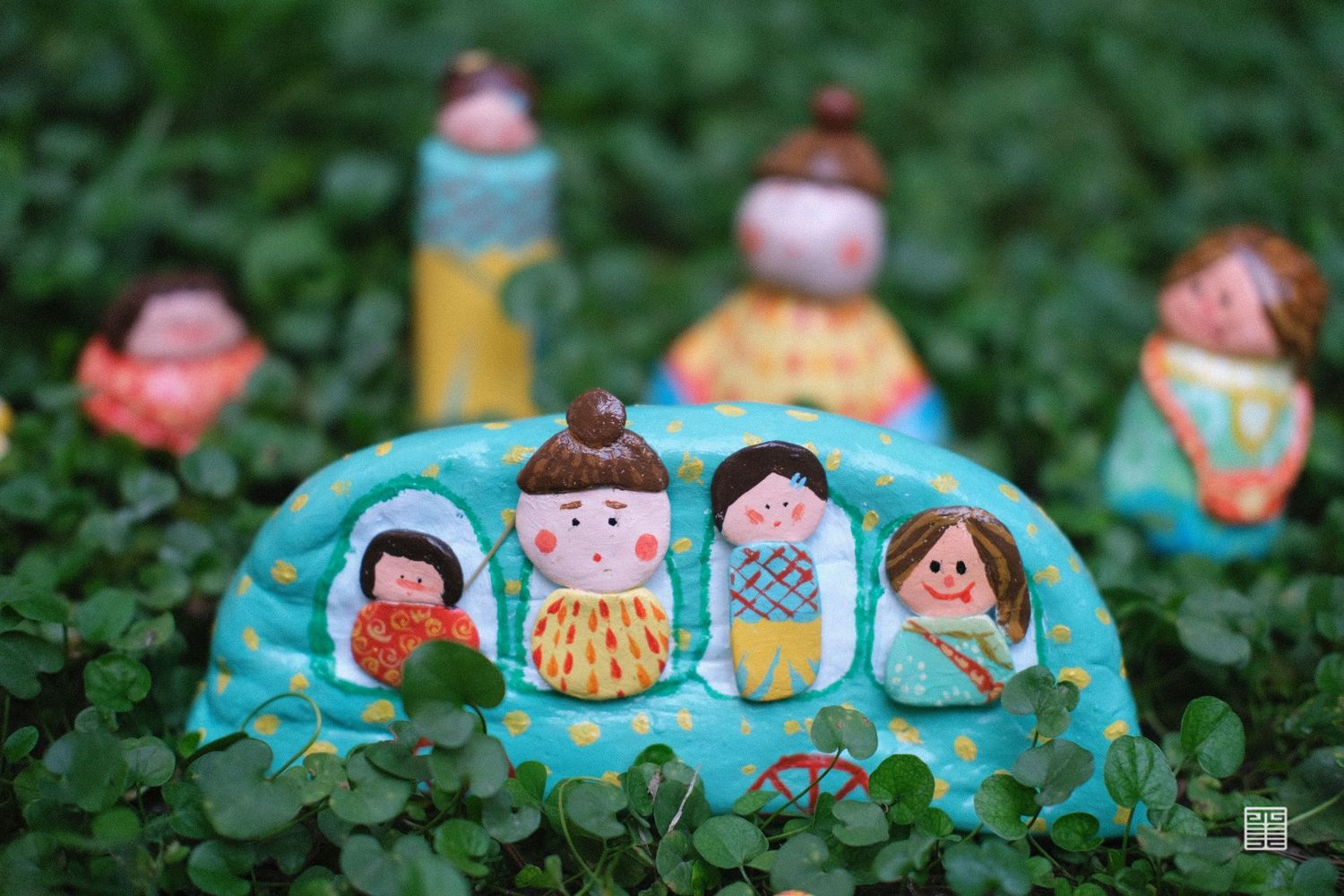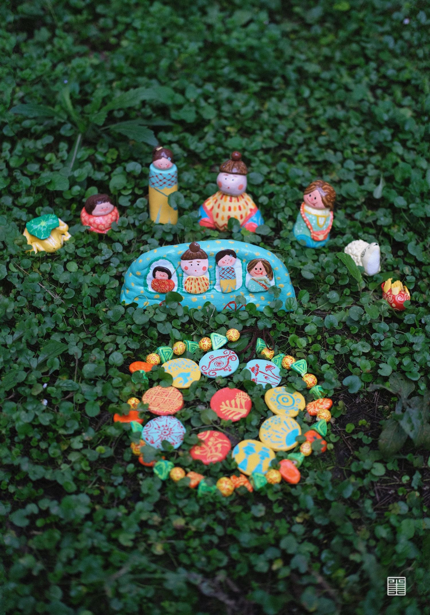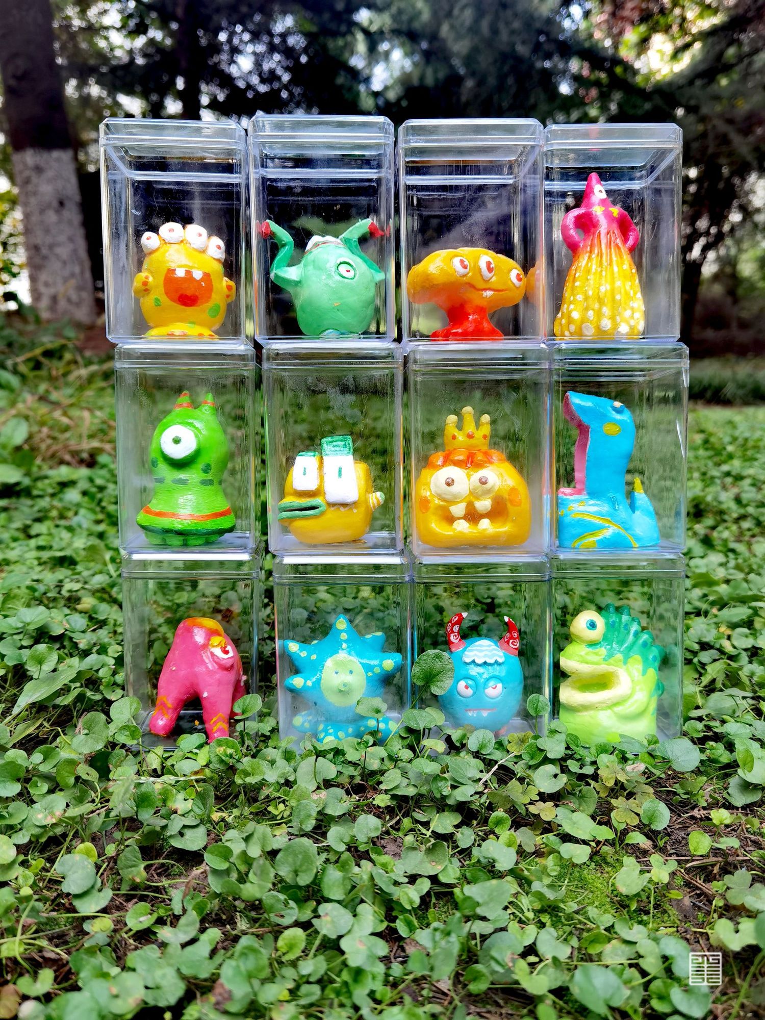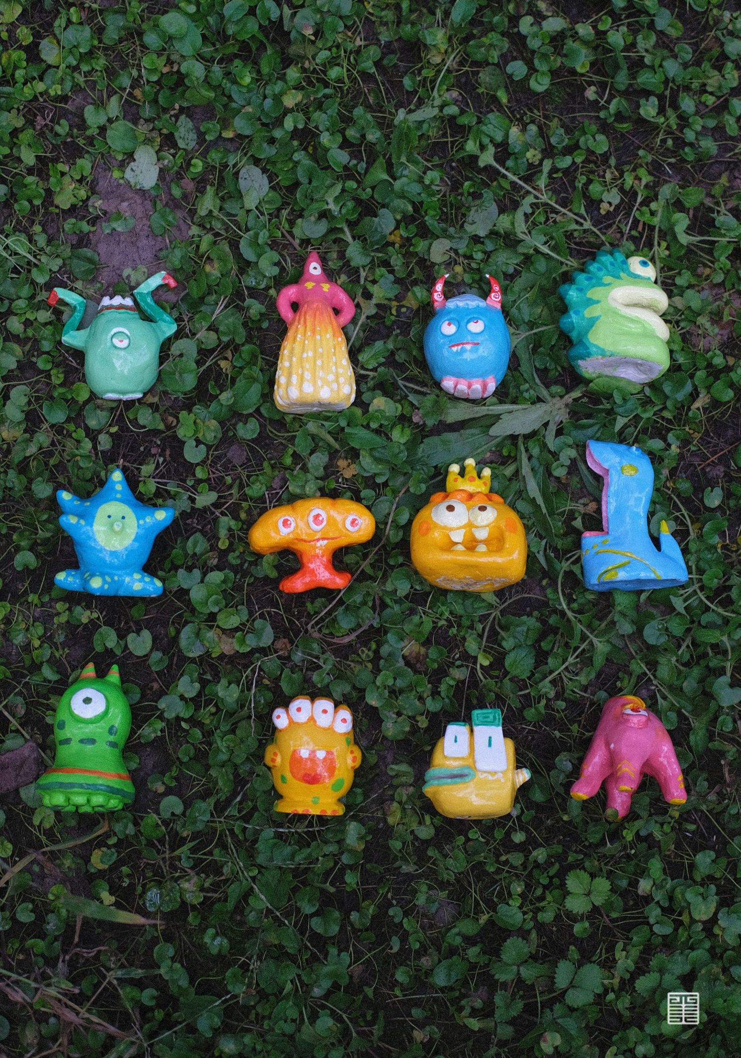 我们用泥塑制作出我们团队四人的形象,并将泥塑形象平面化,把四人探洞游历转化成手绘地图。首先进入艺术家卜桦奇迹般的花草世界,探寻一颗种子如何成为最灿烂的花,将花草元素应用至游记地图、衍生首饰产品中。随后在瓦当的世界获取纹样素材,将瓦当上的装饰元素再设计。随后将陕西皮影中的小怪兽衍生成为盲盒系列产品,再设计出一批新的IP形象,并制作出了盲盒产品手册。我们还通过手绘书将我们的游记经历串联起来,用插画的方式描绘具有童真意趣的游记经历。最后将我们的乐园通过实物摄影的方式,设计出系列海报作品。《我们的乐园》是我们用心打造的、专属于我们的乐园。
