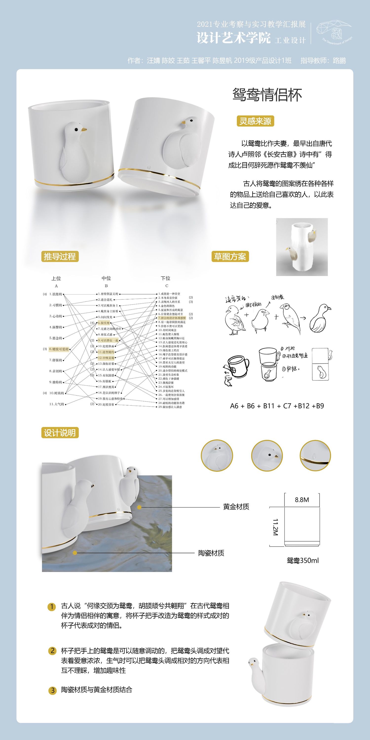 古人说“何缘交颈为鸳鸯,胡颉颃兮共翱翔”在古代鸳鸯相伴为情侣相伴的寓意,将杯子把手改造为鸳鸯的样式成对的杯子代表成对的情侣。杯子把手上的鸳鸯是可以随意调动的,把鸳鸯头调成对望代表着爱意浓浓,生气时可以把鸳鸯头调成相对的方向代表相互不理睬,增加趣味性。