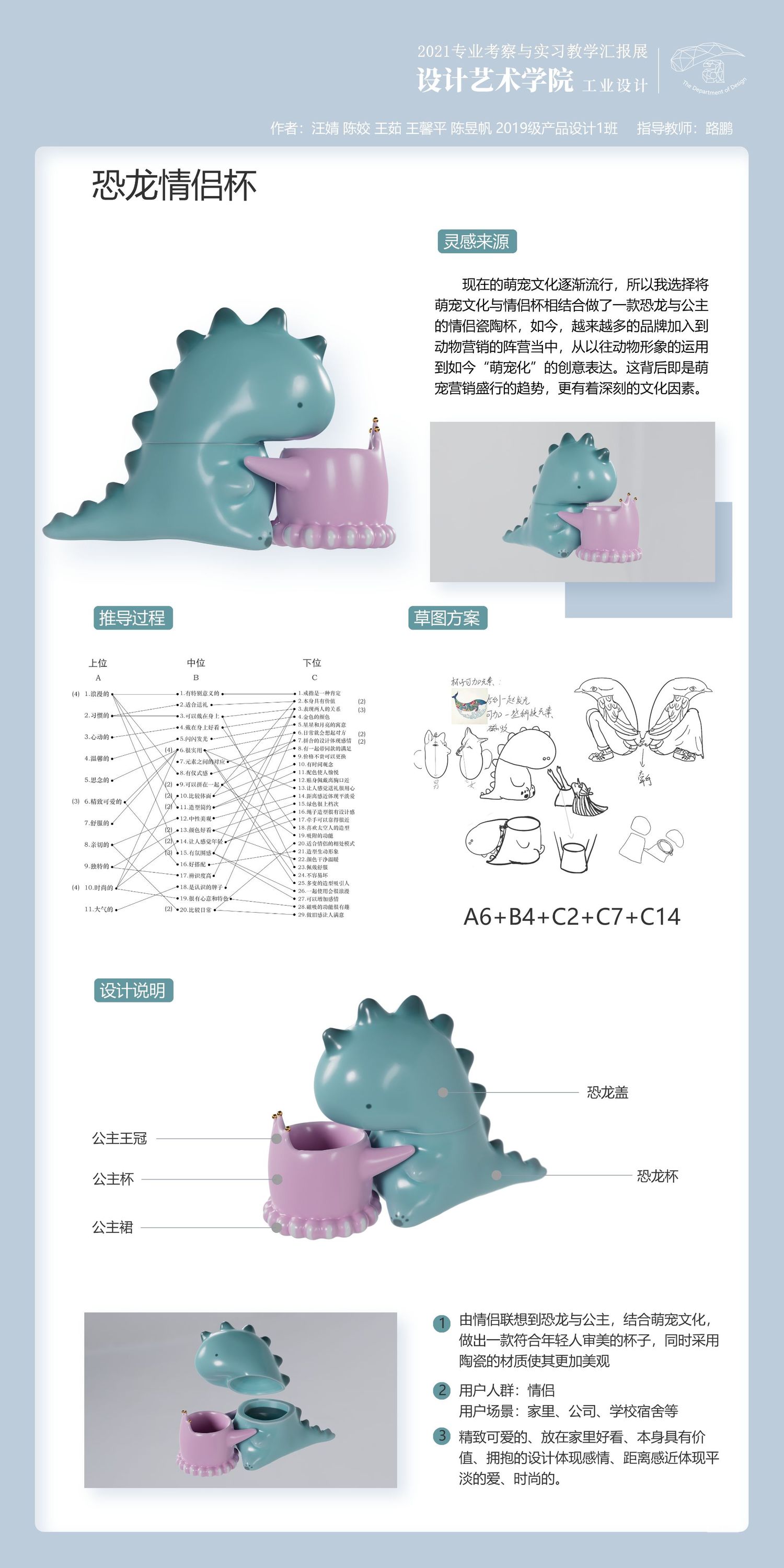由情侣联想到恐龙与公主,结合萌宠文化,做出一款符合年轻人审美的杯子,同时采用陶瓷的材质使其更加美观。