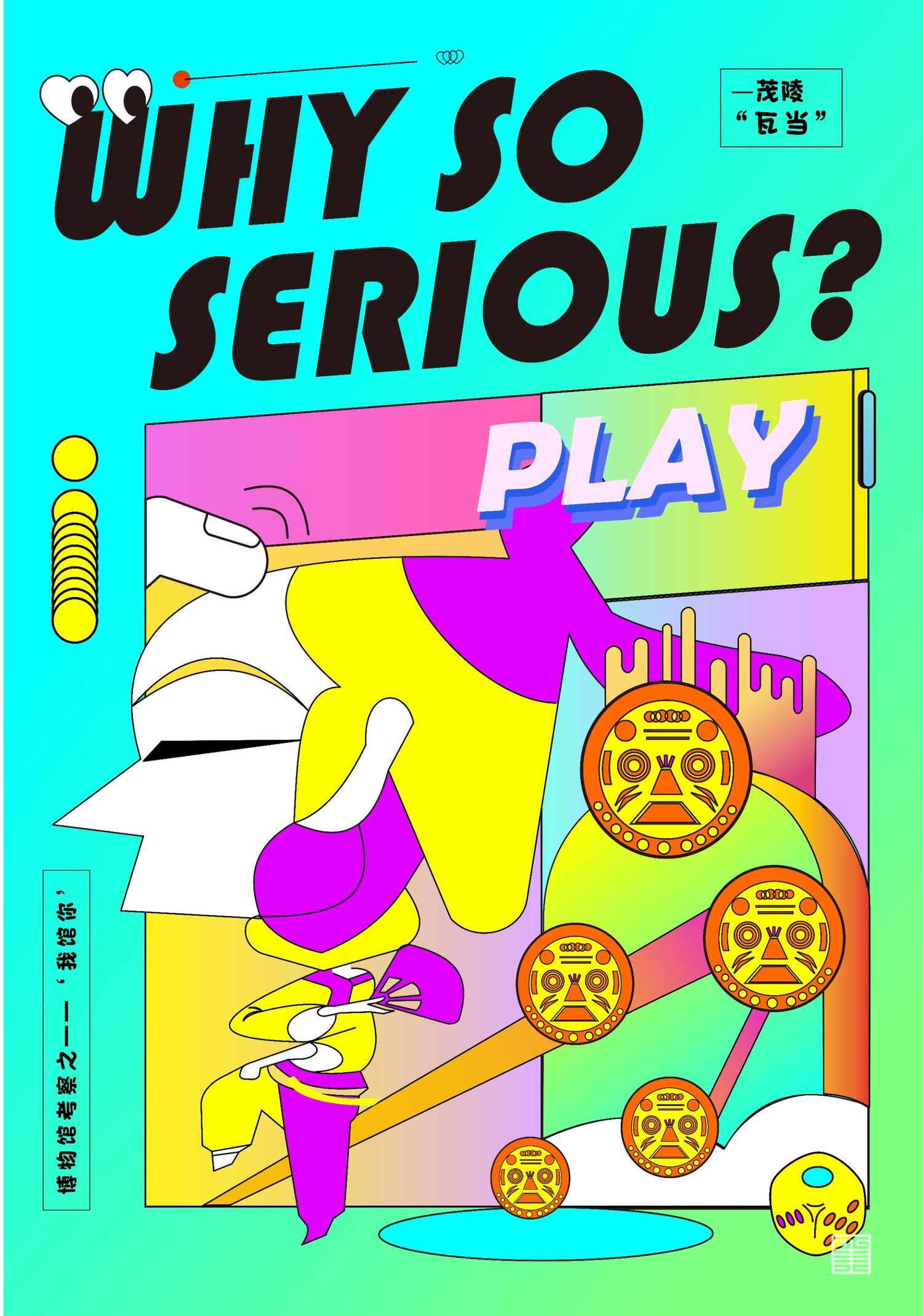 此次设计作品是以十月份的专业考察内容为主题,把考察途中另人印象深刻的文物及其他形象融合统一,用一种诙谐轻快、有趣搞怪的方式呈现出来。主题名称为《Why So Serious?》,作品出发点便是打破传统文物沉重严肃刻板的印象,结合现代年轻的元素展开研究。
