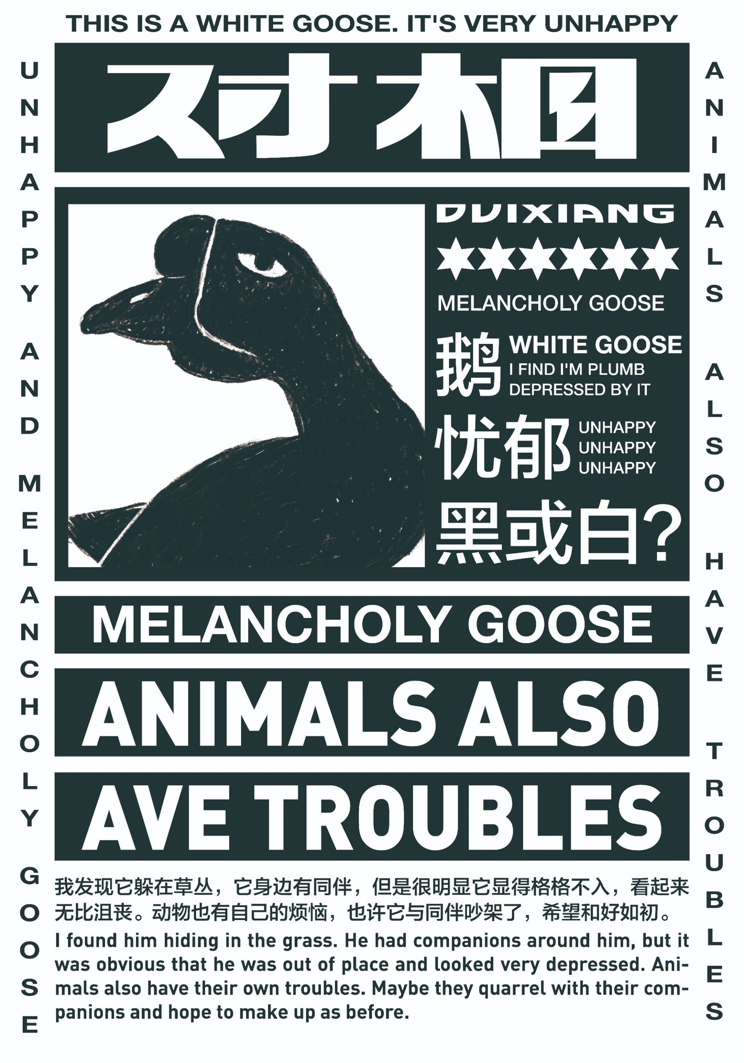 书籍包装采用自然中提取的纹理进行创作,使用明艳色彩,时代感十足。包装袋的拉手设计改变了传统书籍携带习惯,增加了产品趣味性。为便于携带和持握,杂志开本采用标准32开,并使用轻质道林纸做内页。略呈黄色的纸张和1.8倍的较大行距力求为读者带来更舒适的阅读体验。海报以涂鸦方式表现此次考察过程中遇见的动物们。使用简单的黑白配色,视觉效果统一且幽默感十足。
