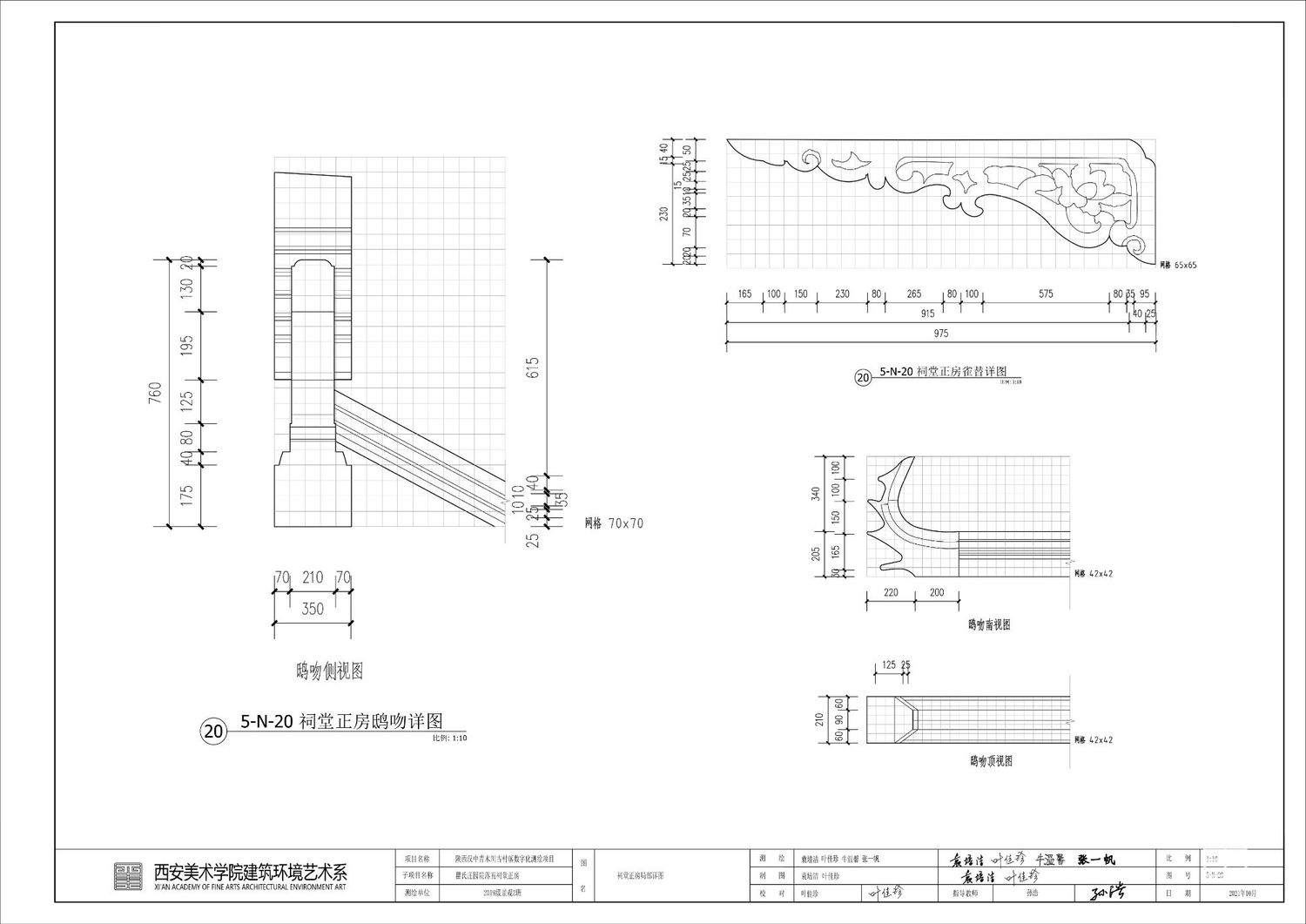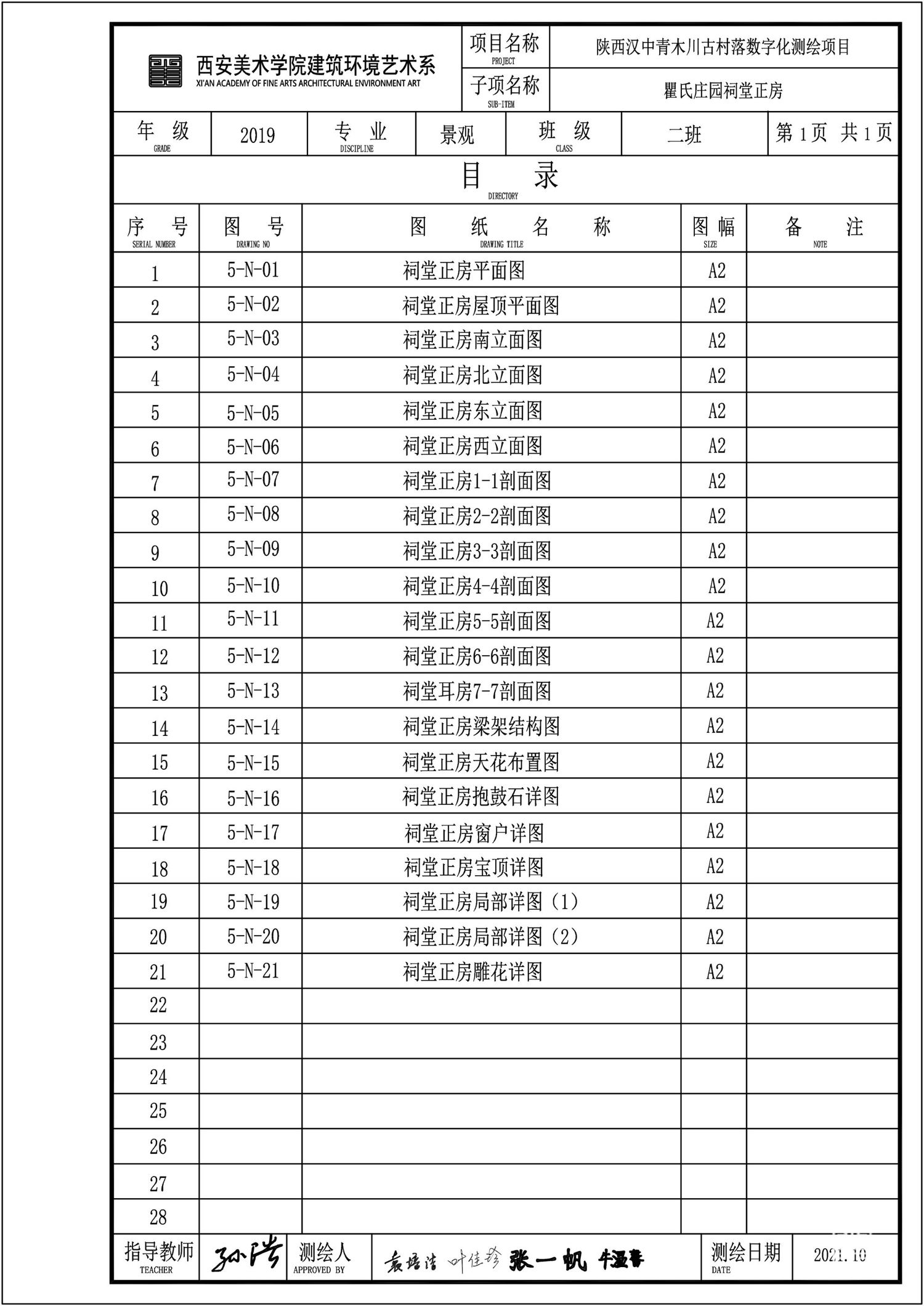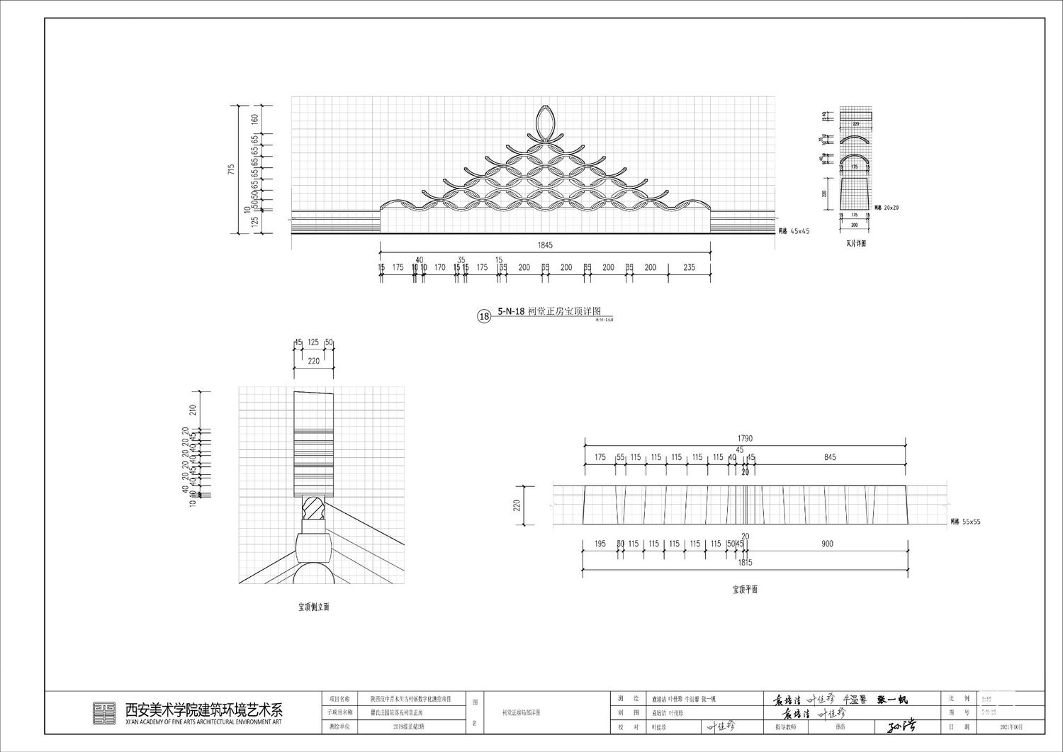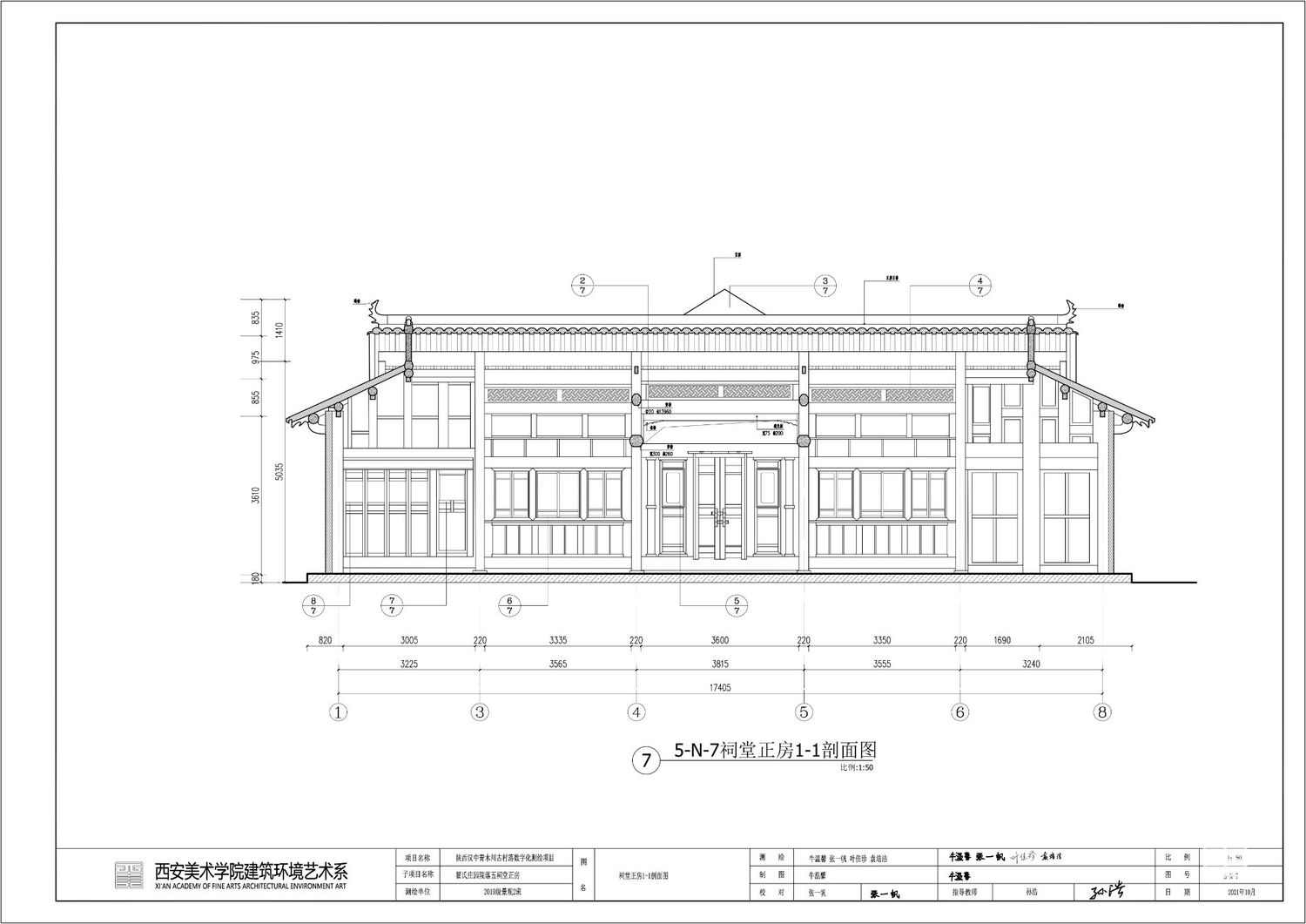 本组测绘对象为瞿家大院家祠正堂,祠堂,是儒家祭祀祖先或先贤的场所。祠堂有多种用途,主要用于祭祀祖先。同时也作为各房子孙办理婚、丧、寿、喜等事件的场所。族亲们有时为了商议族内的重要事务,也常在祠堂进行。在测绘过程中,通过实地测量与计算机辅助设计软件图纸的绘制,运用传统测量学知识、su软件,outocad计算机软件、实体模型制作等,了解到传统建筑文化与生活的关系,提高了审美修养、理论修养、测绘能力及建筑空间认知,增强知识储备技能提高团队协作能力,同时加强了CAD等计算机软件的绘图能力。本次课程使我们更加详细的了解了古建知识,增强了古建保护意识与文化自信,体验建筑空间感,材料运用,建筑尺度感等将理论联系实际,了解古代建筑建造常用方法与手段,为将来解决实际问题打下良好基础,具有深远的教育意义。