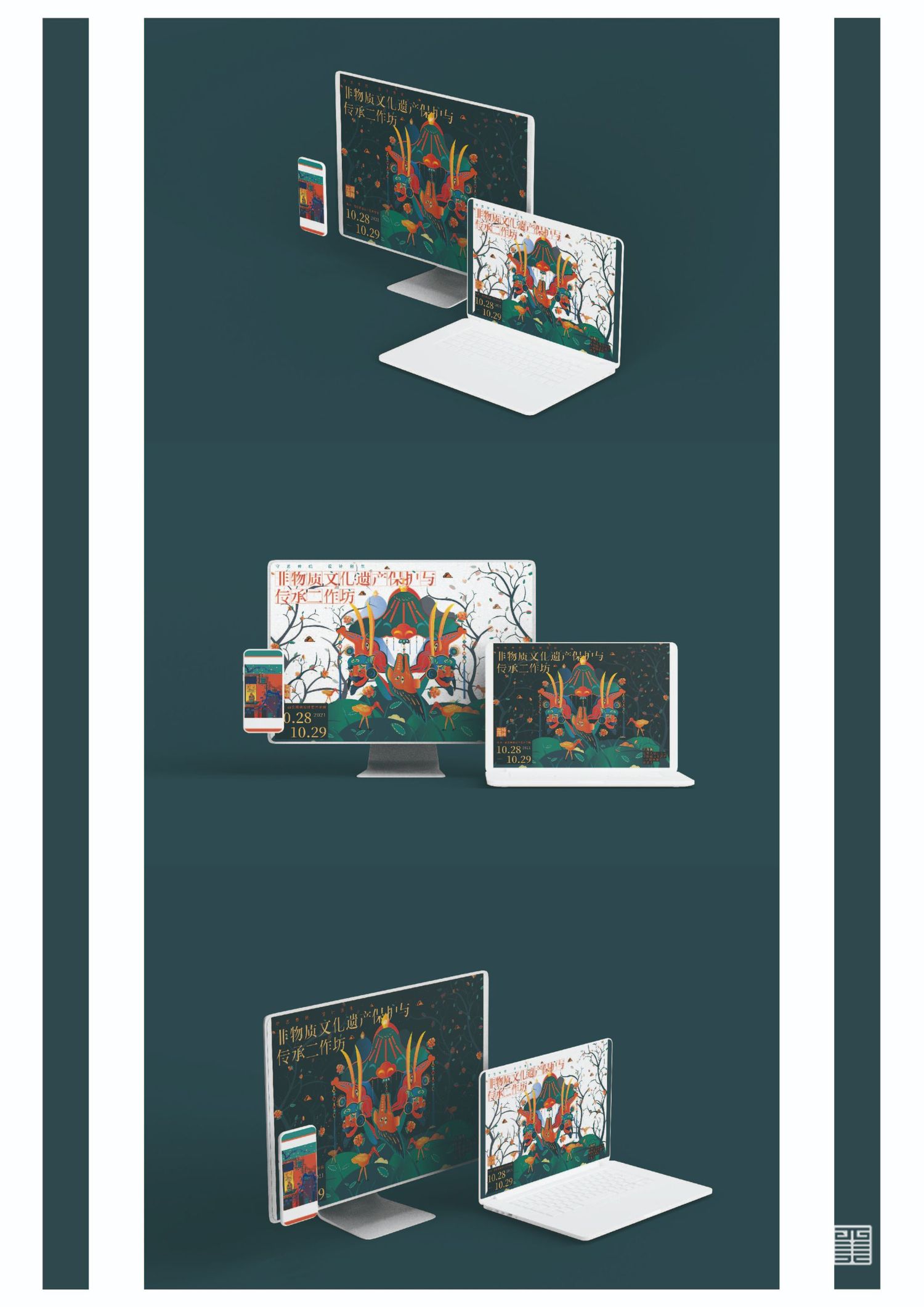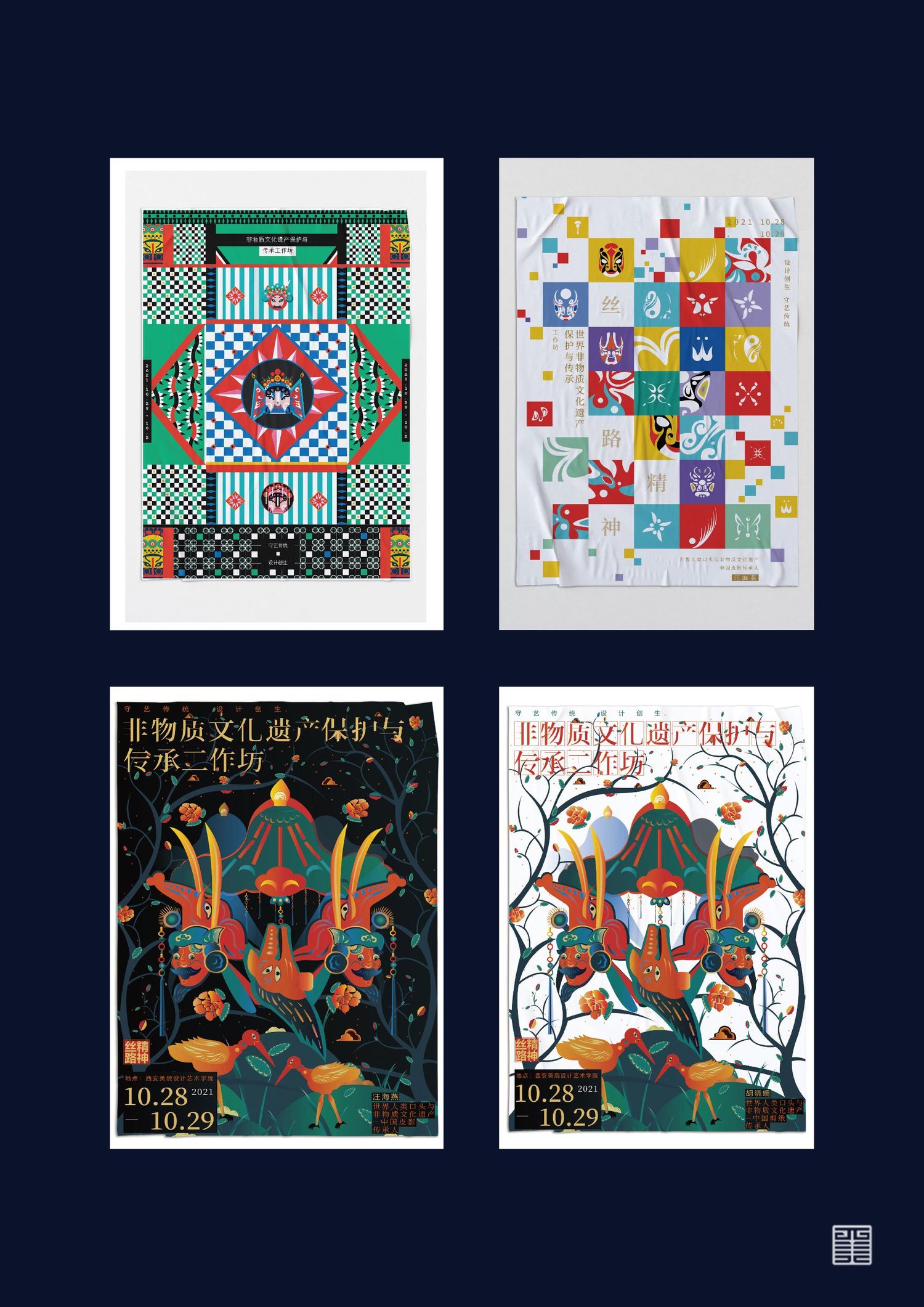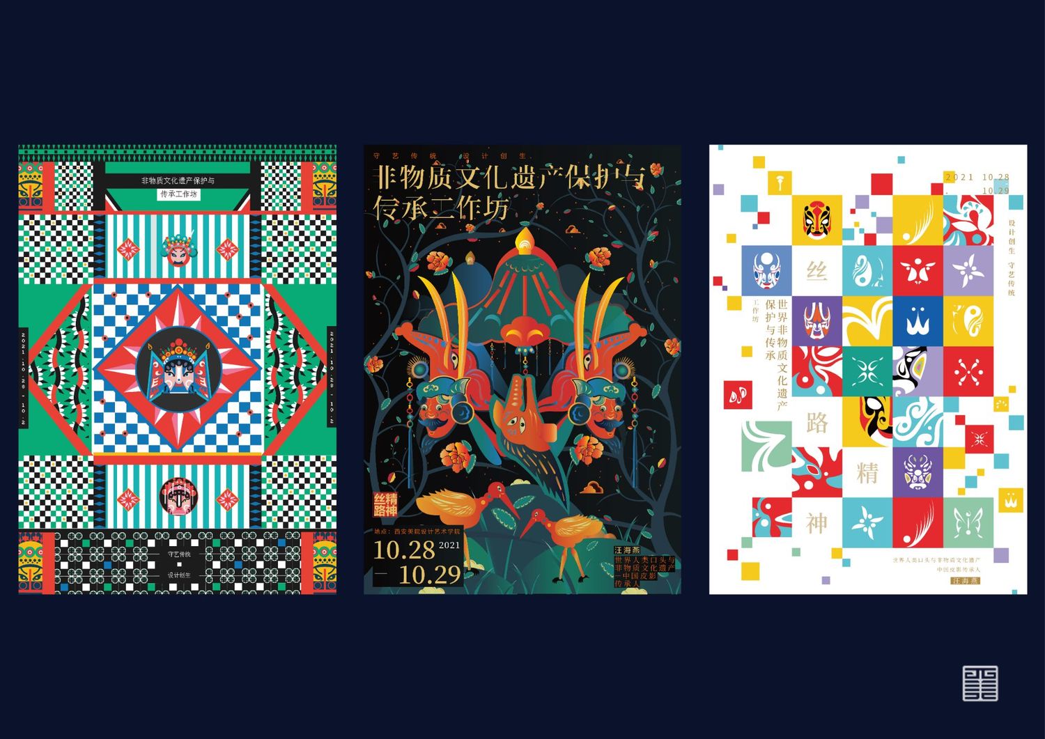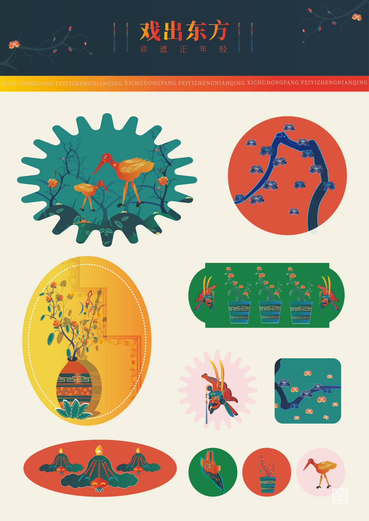 此次作品旨在以年轻人的眼光重新看待我国的非物质文化遗产,给当代年轻人展示一个年轻的非遗,呼吁广大民众重视并发扬光大我国的传统文化,这次创作主要以围绕中国非物质文化遗产展开,将我国乃至闻名于世界的非遗项目——陕西秦腔、京剧(脸谱)以及陕西皮影进行了提炼和创作,非物质文化遗产永远年轻,永不过时!