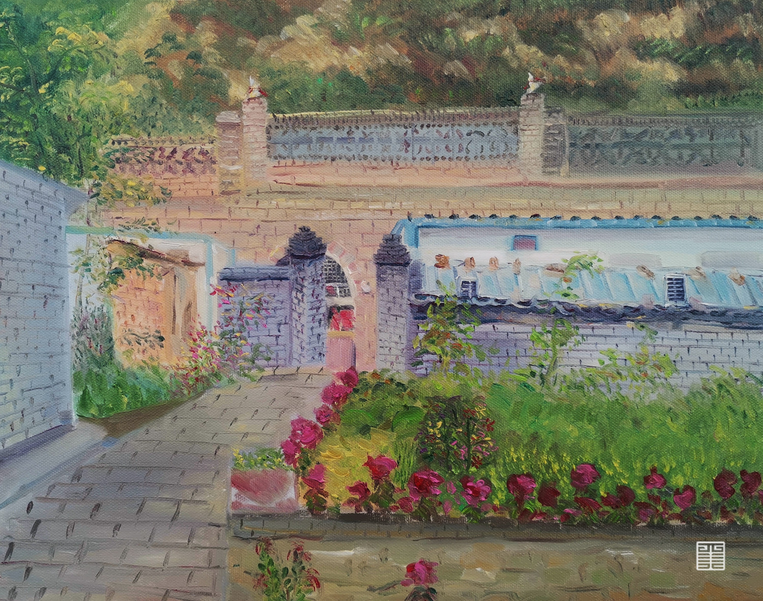 被院外的鲜花所吸引,我想这户人家一定很热爱田园生活,新鲜的绿色蔬菜和鲜艳的粉红色花形成鲜明对比,让人的心情会特别好。