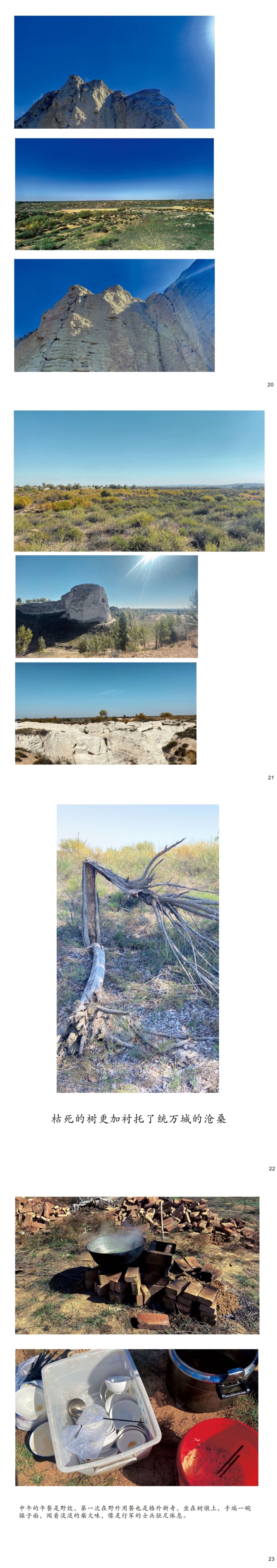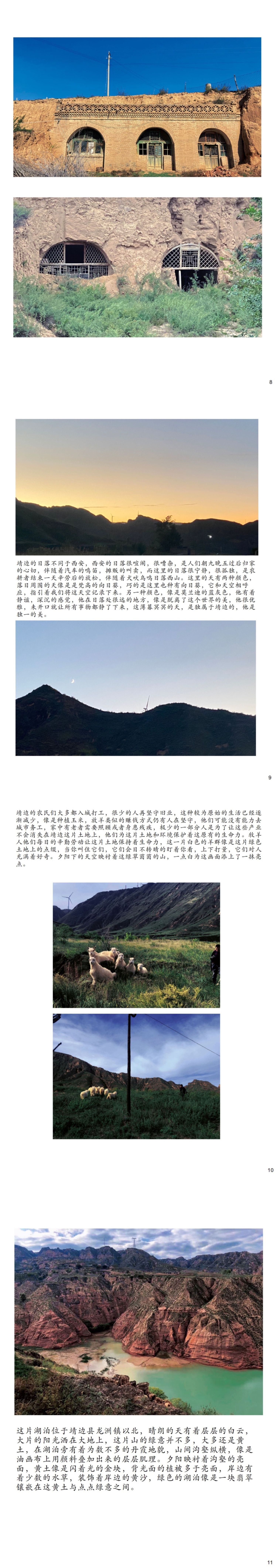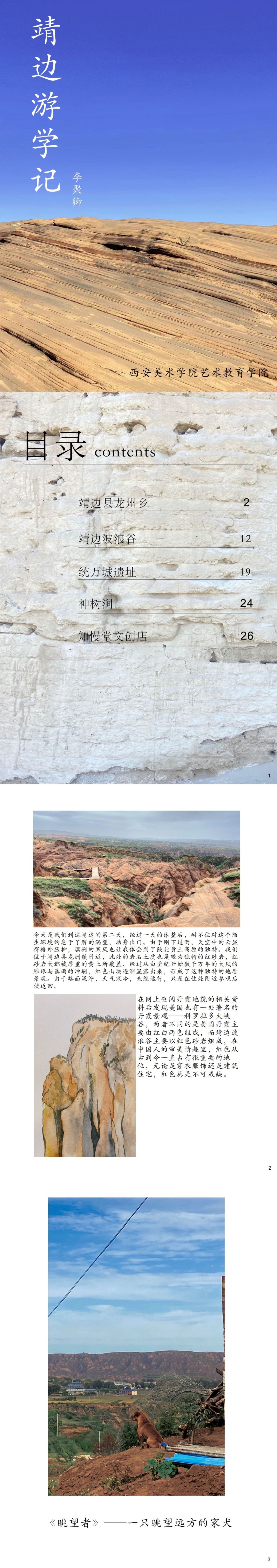 记录内容为:靖边县龙州乡,波浪谷,统万城,神树涧,知慢堂文创店的考察见习过程及所见所闻所感。
