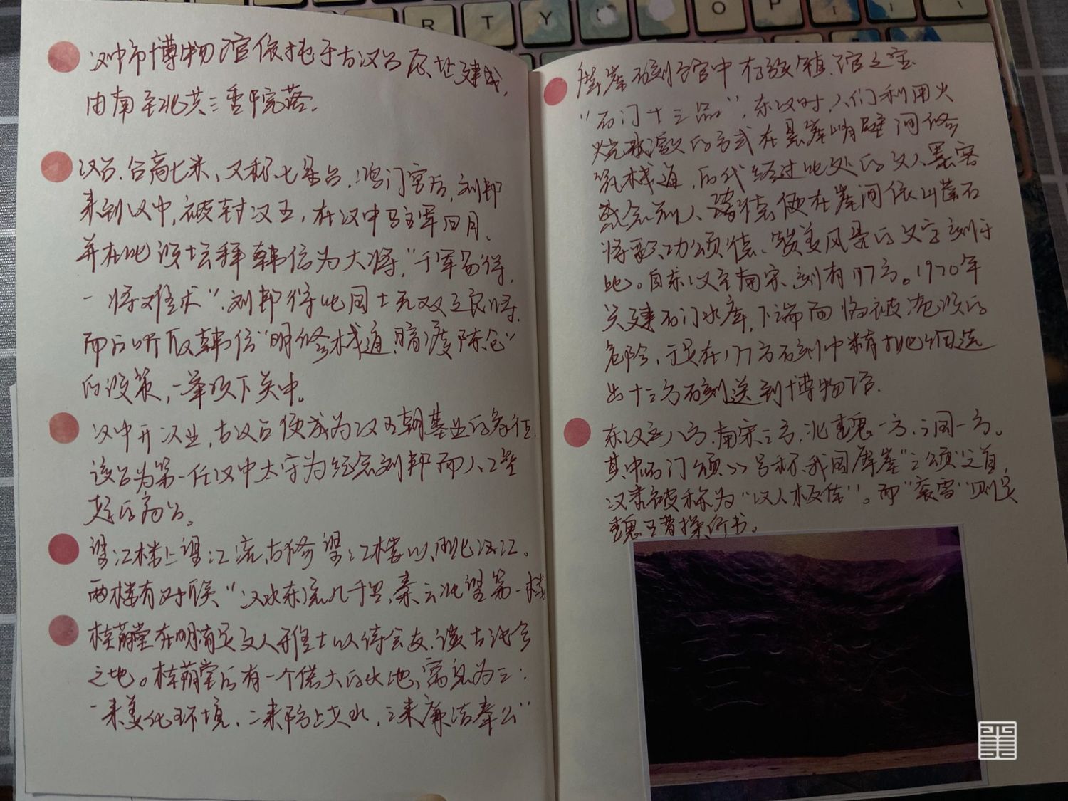 2021.10.9-2021.10.17,我们跟随白文老师开展了为期九天的秋季考察,考察地点主要为陕南汉中市及安康市。主要围绕两汉三国历史、现存名胜古迹与省境地区文化交融两项内容展开学习。蔡侯墓、武侯墓、定军山、马超墓、褒斜栈道等景点为我们梳理两汉历史提供极大帮助;明清宅院、羌族文化以及具有历史印记的文物,为我们提供了翔实的物质资料,有助于我们对于“秦头楚尾”、多省交界的地域特色及独特的历史文化展开多角度、全方位的学习。