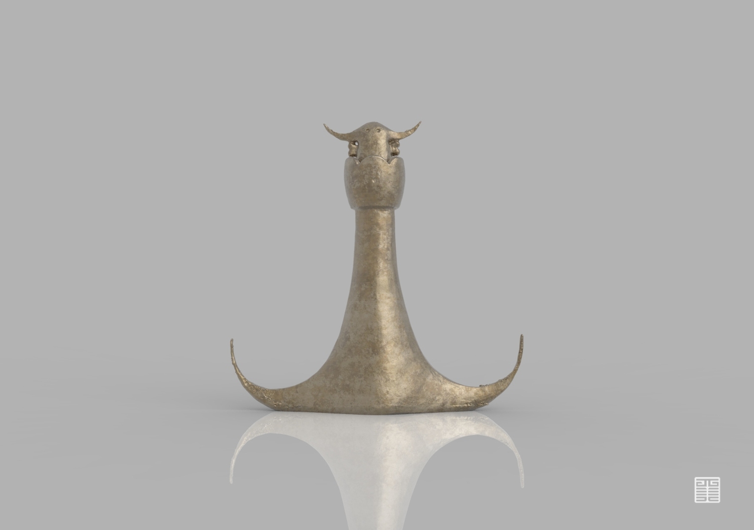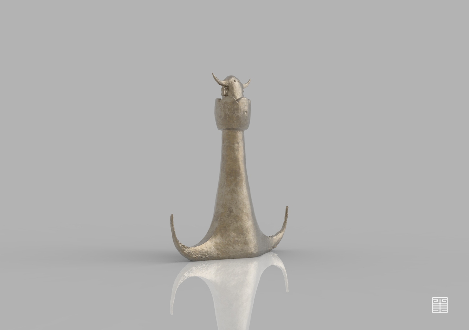 这件我所做的作品,是一只狗,骨头和花朵可以理解为物质与精神,但不是每一只狗物质和精神都同时会得到满足,人狗关系、人与动物的关系有点像相互作用力,最终呈现材质为铜质感。
