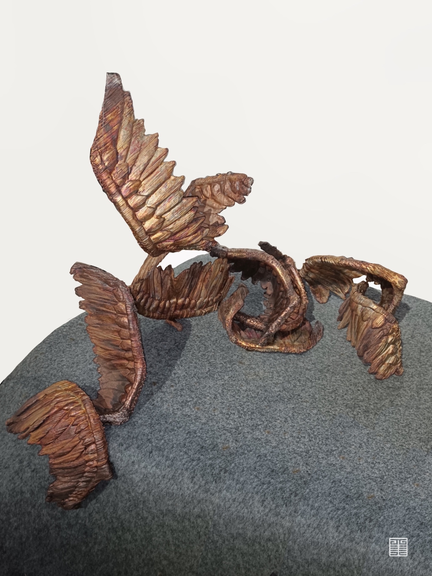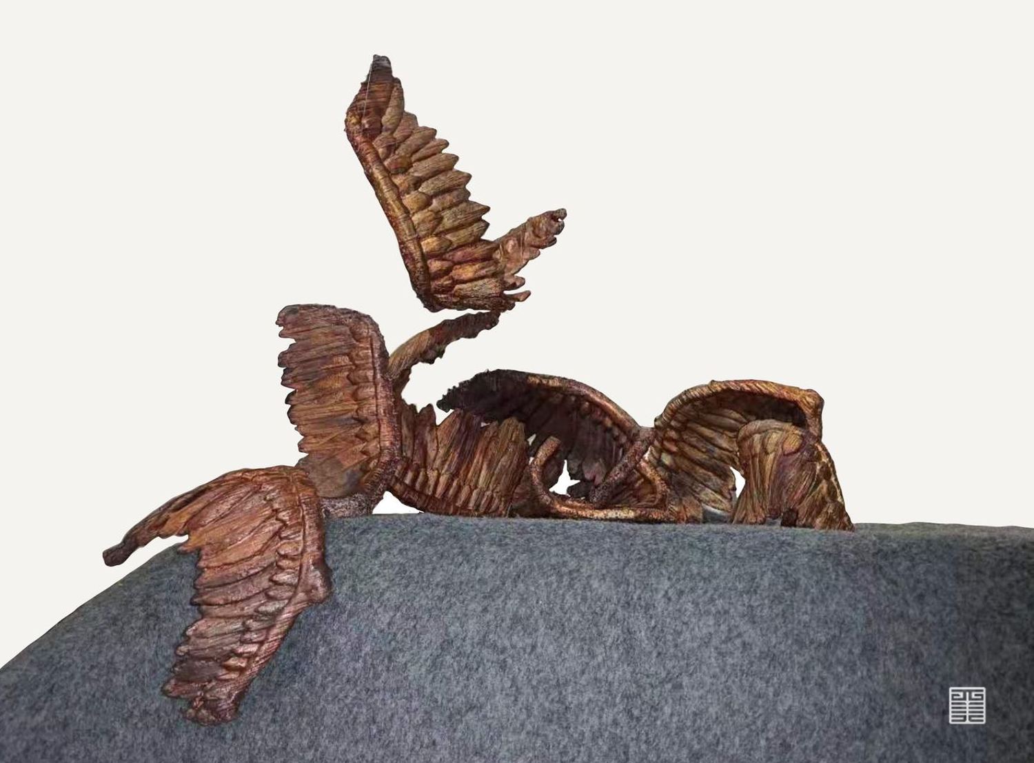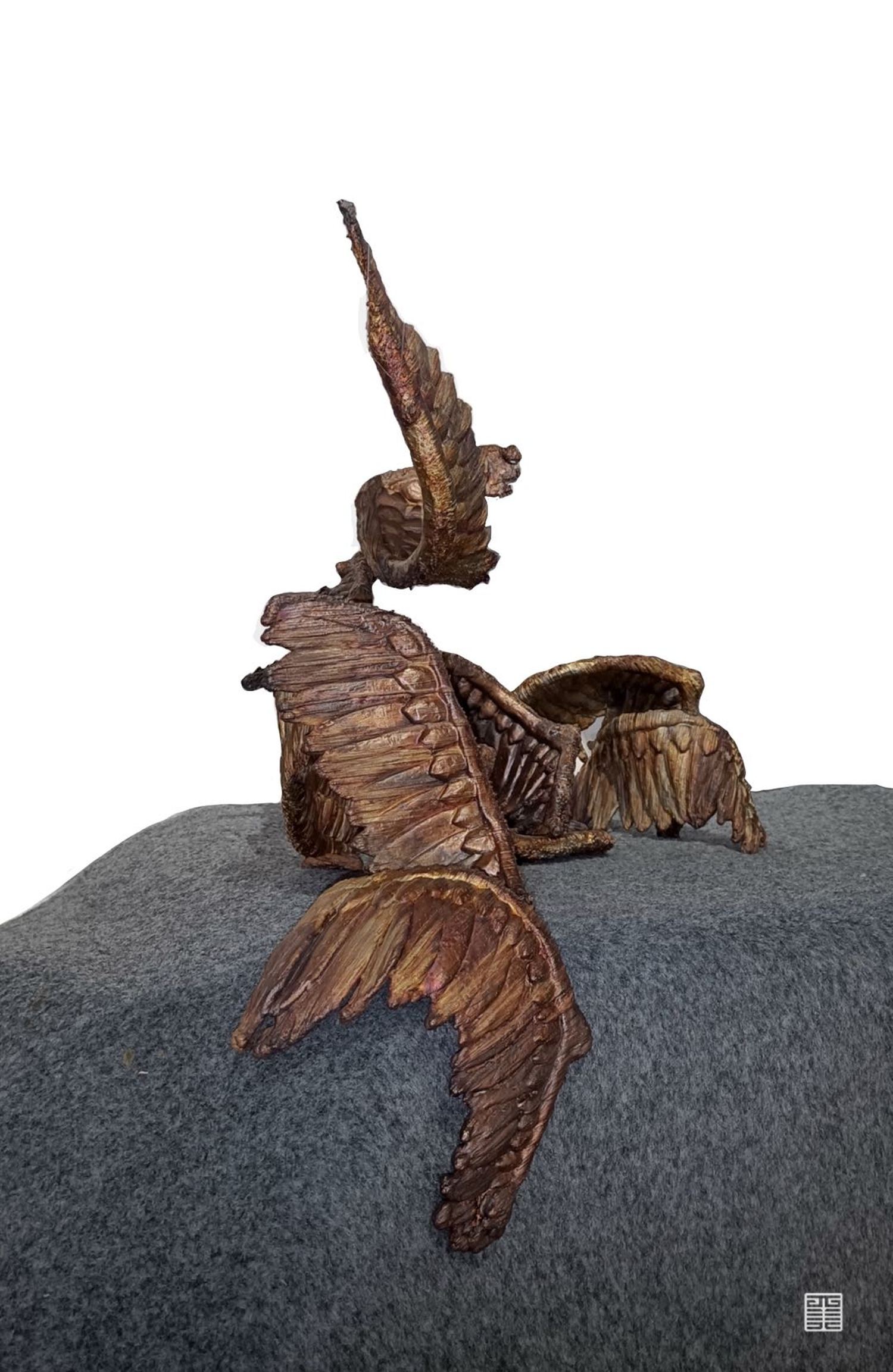 作品名称《天使》 铜材料赋予了作品末端面相外尖锐的攻击性,通过化学着色使作品产生被灼烧后的质感,对于我来说是一次很有挑战性的尝试。