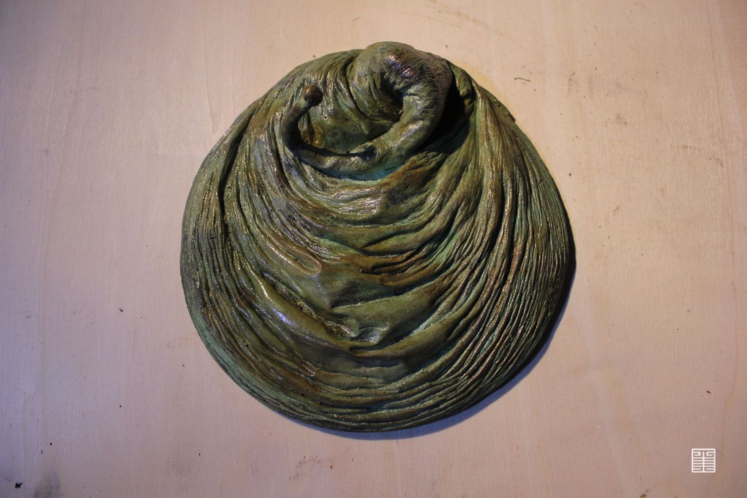 衣纹系列来源于对蜡这一种雕塑铸铜过程中的媒介的探索,我将融化的热蜡缓和的倒入水中,其在凝固过程中产生的褶皱有着衣纹堆叠的美感,甚是精彩。