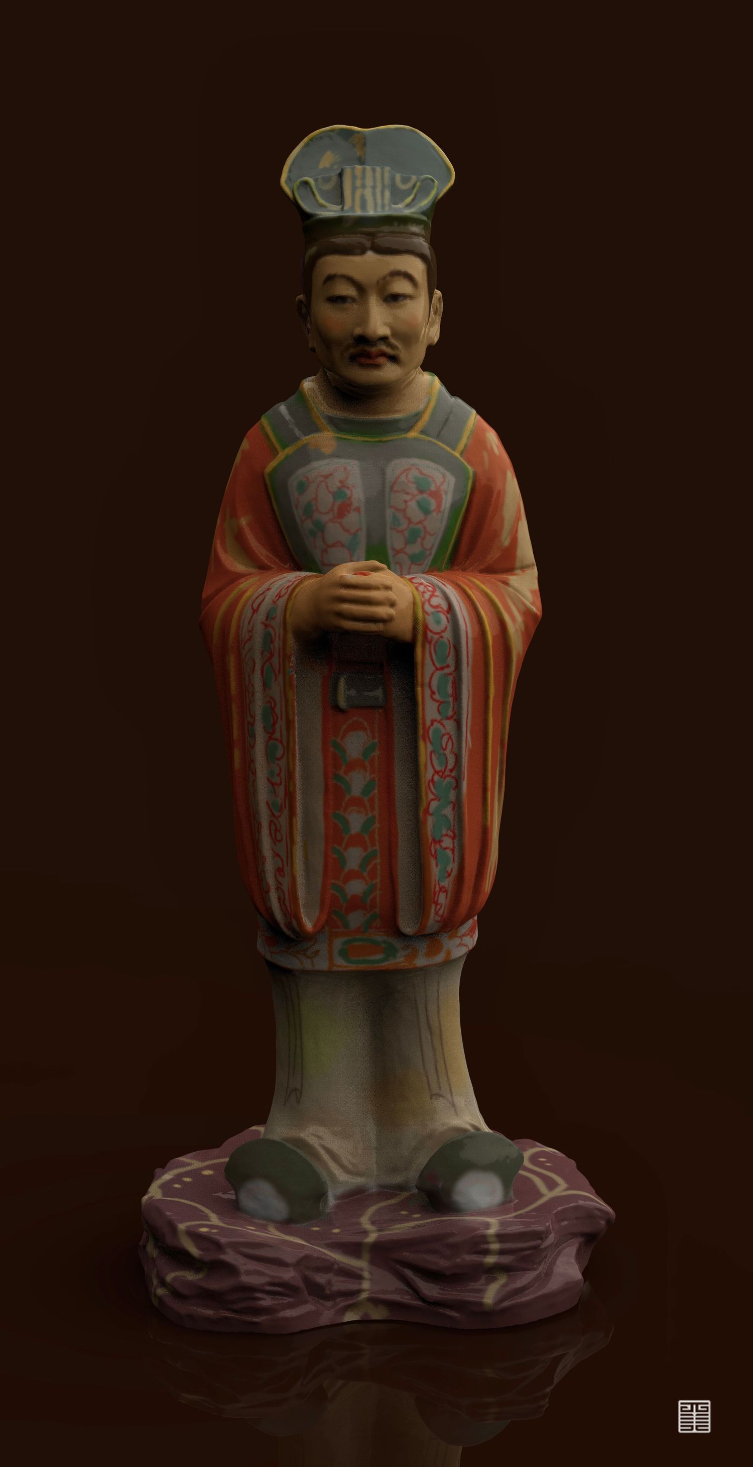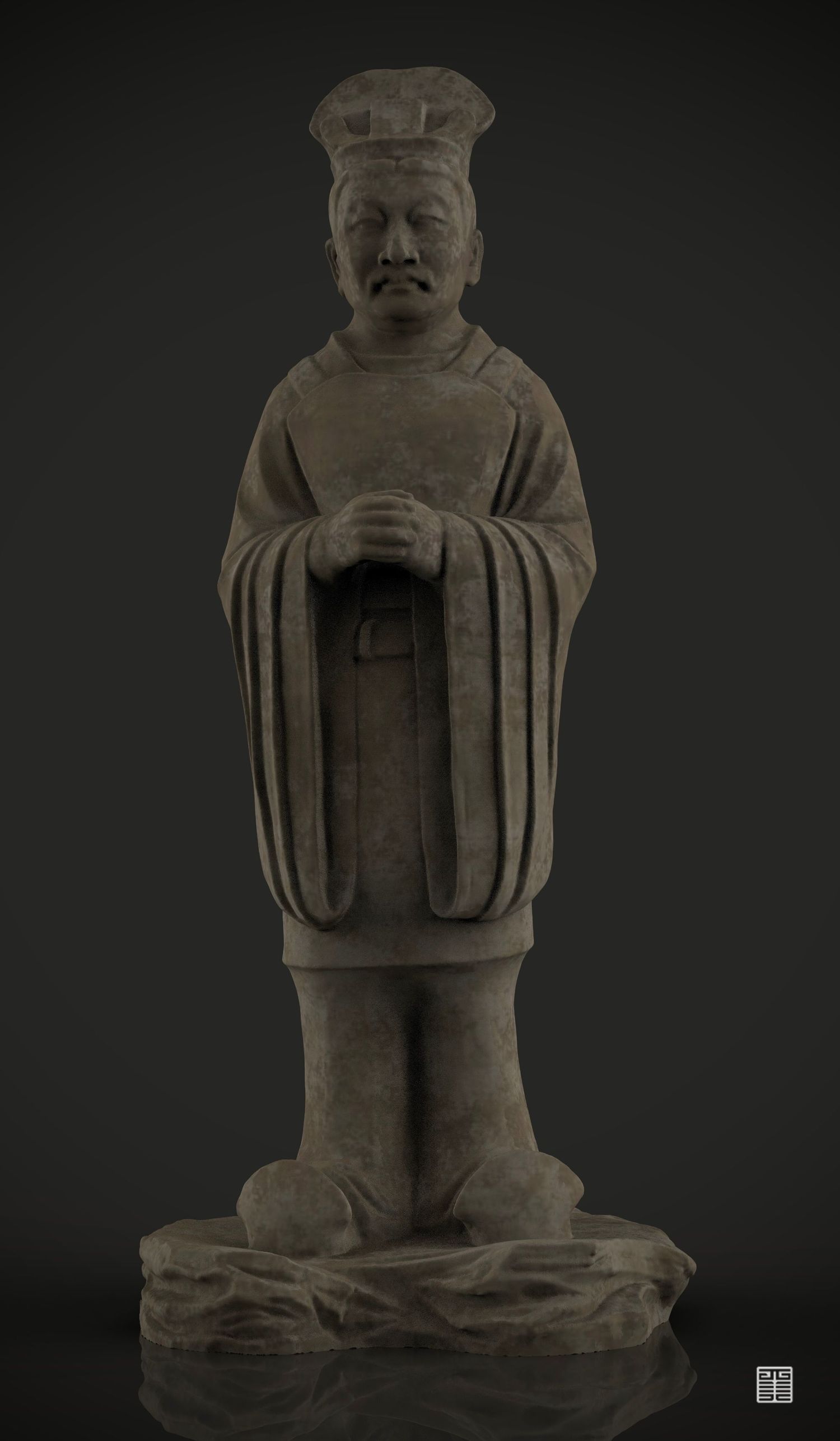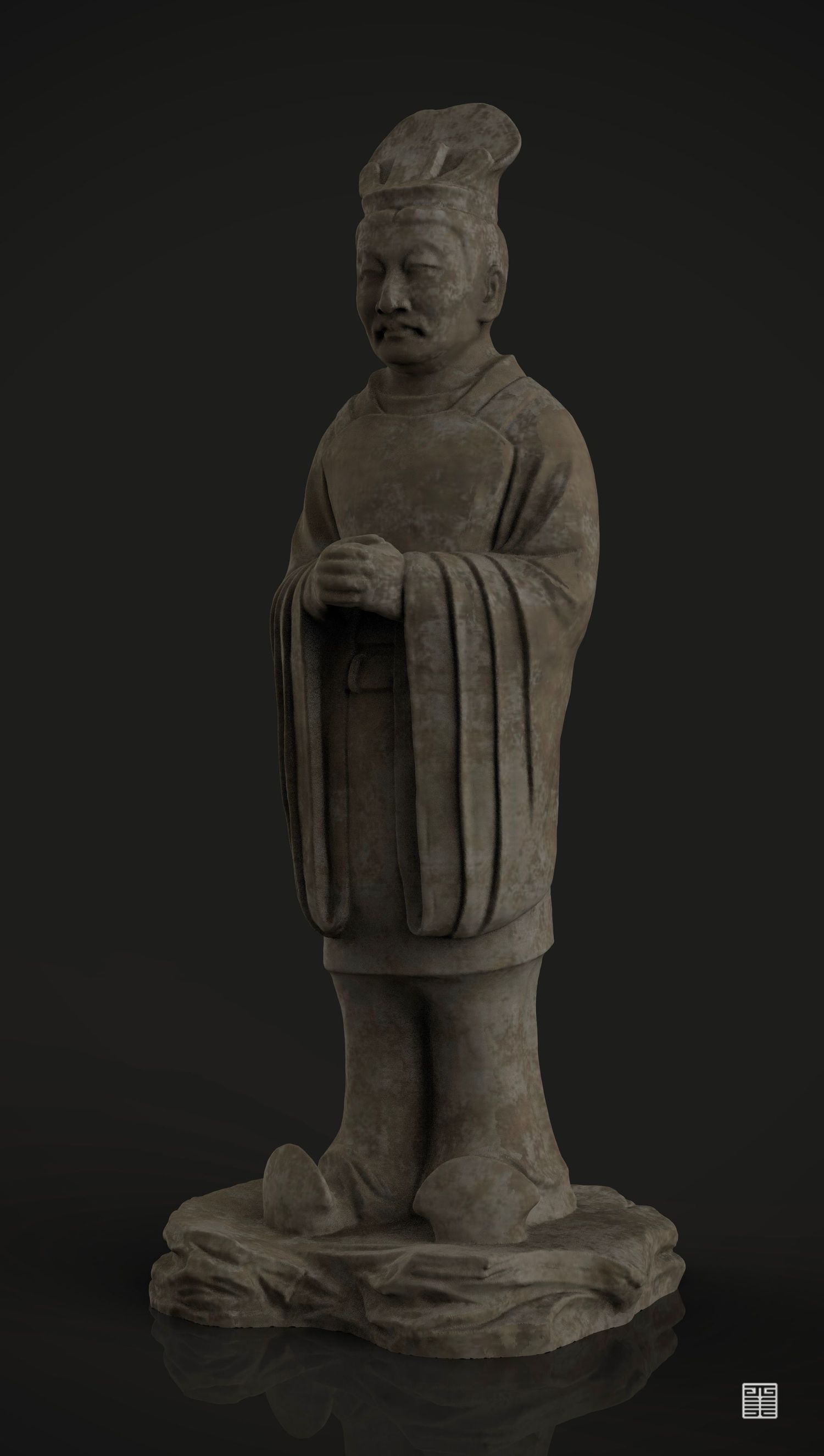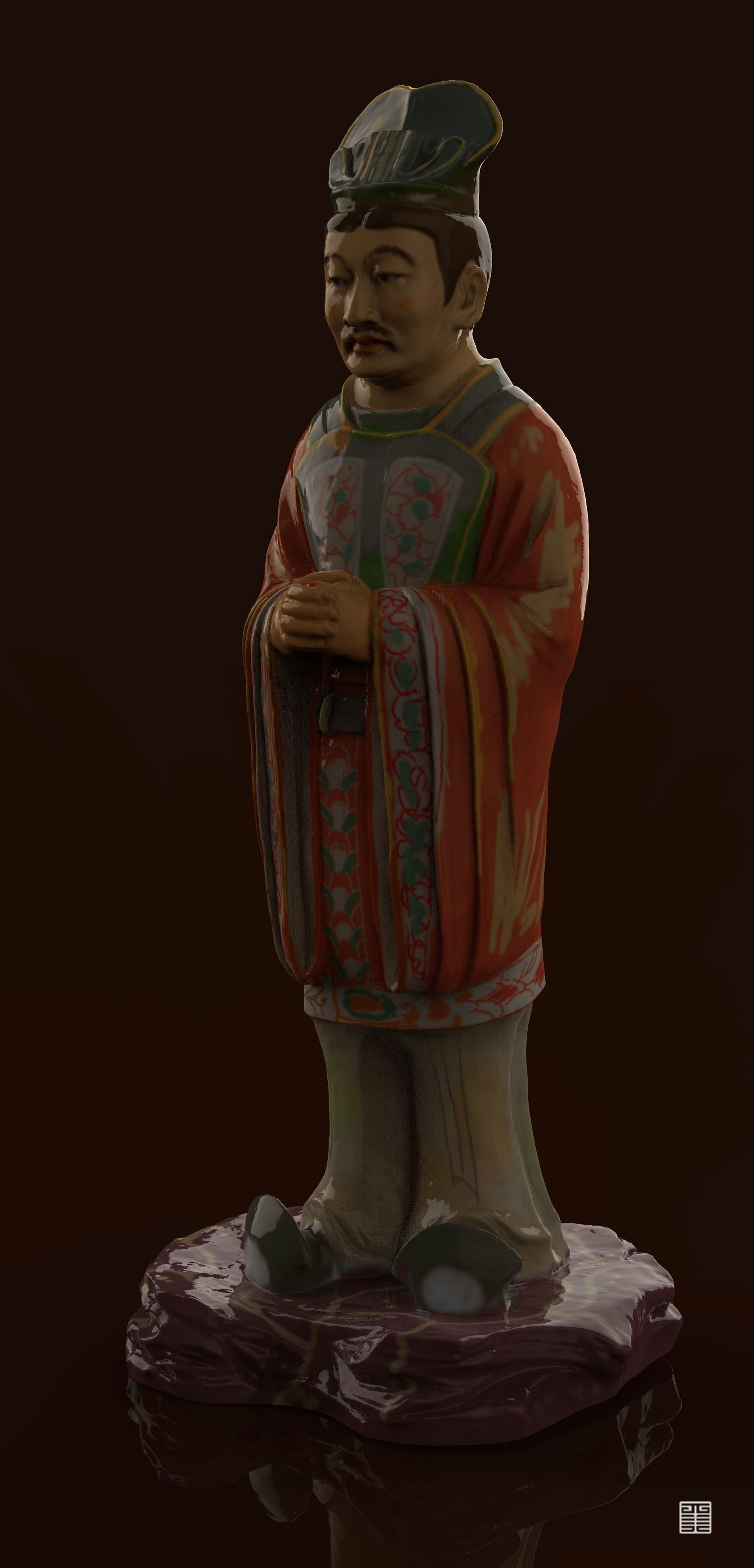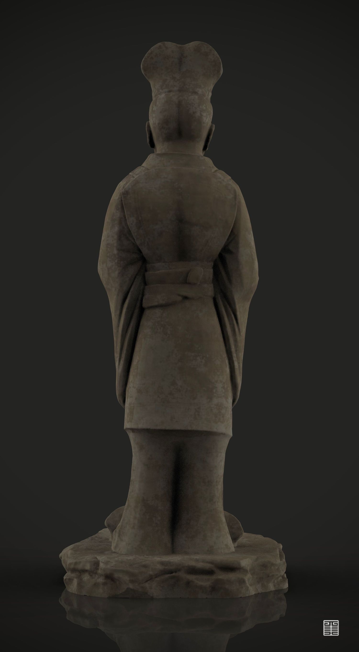 在电脑上进行3d渲染时,我先是用素模进行了渲染,已突出这个文官俑魂后的体积感与庄重感。