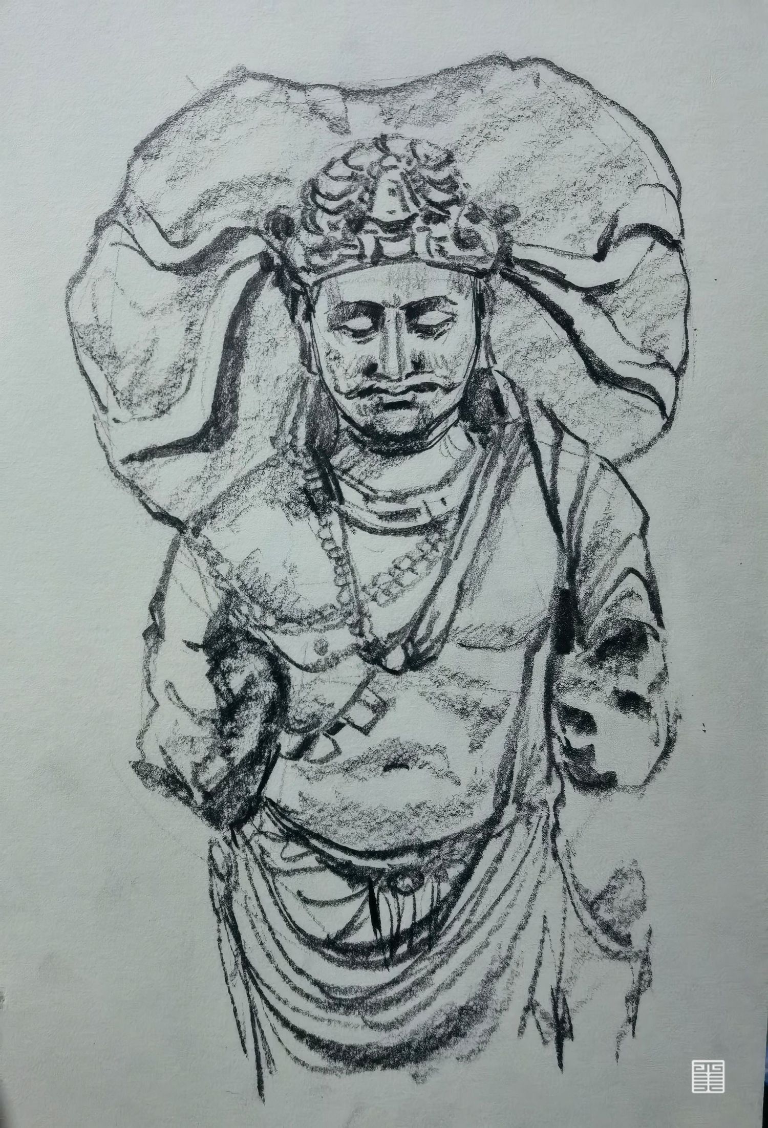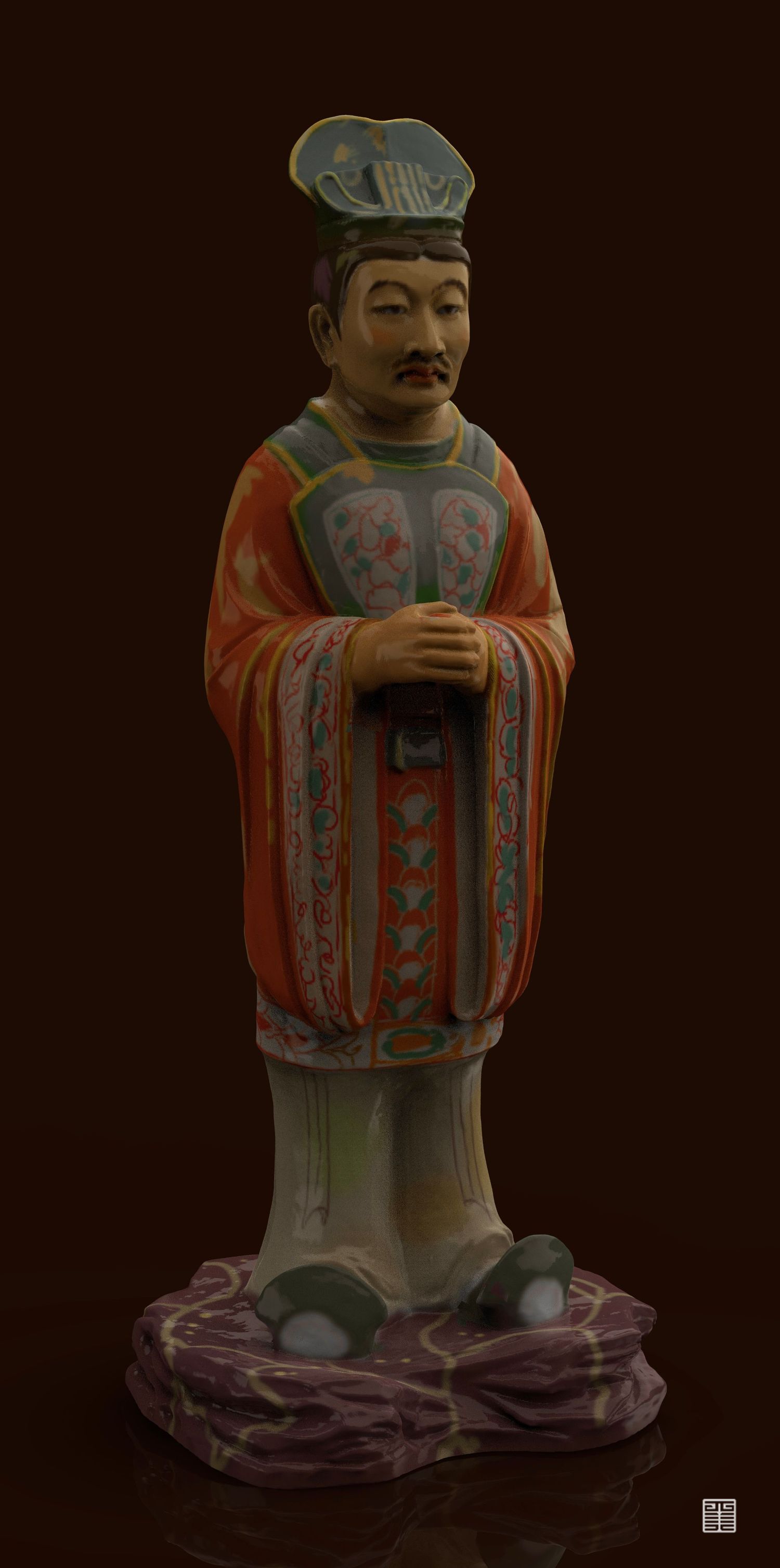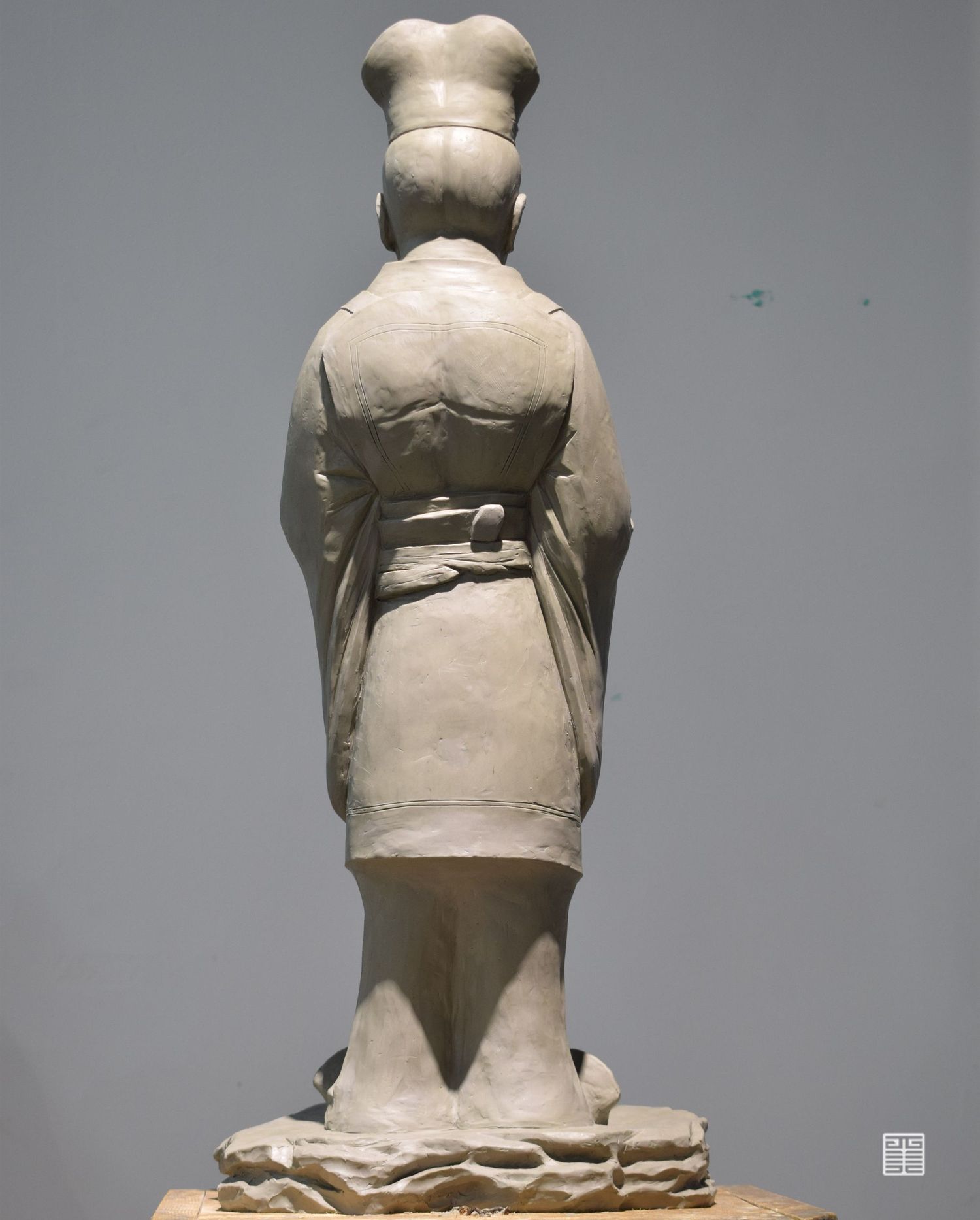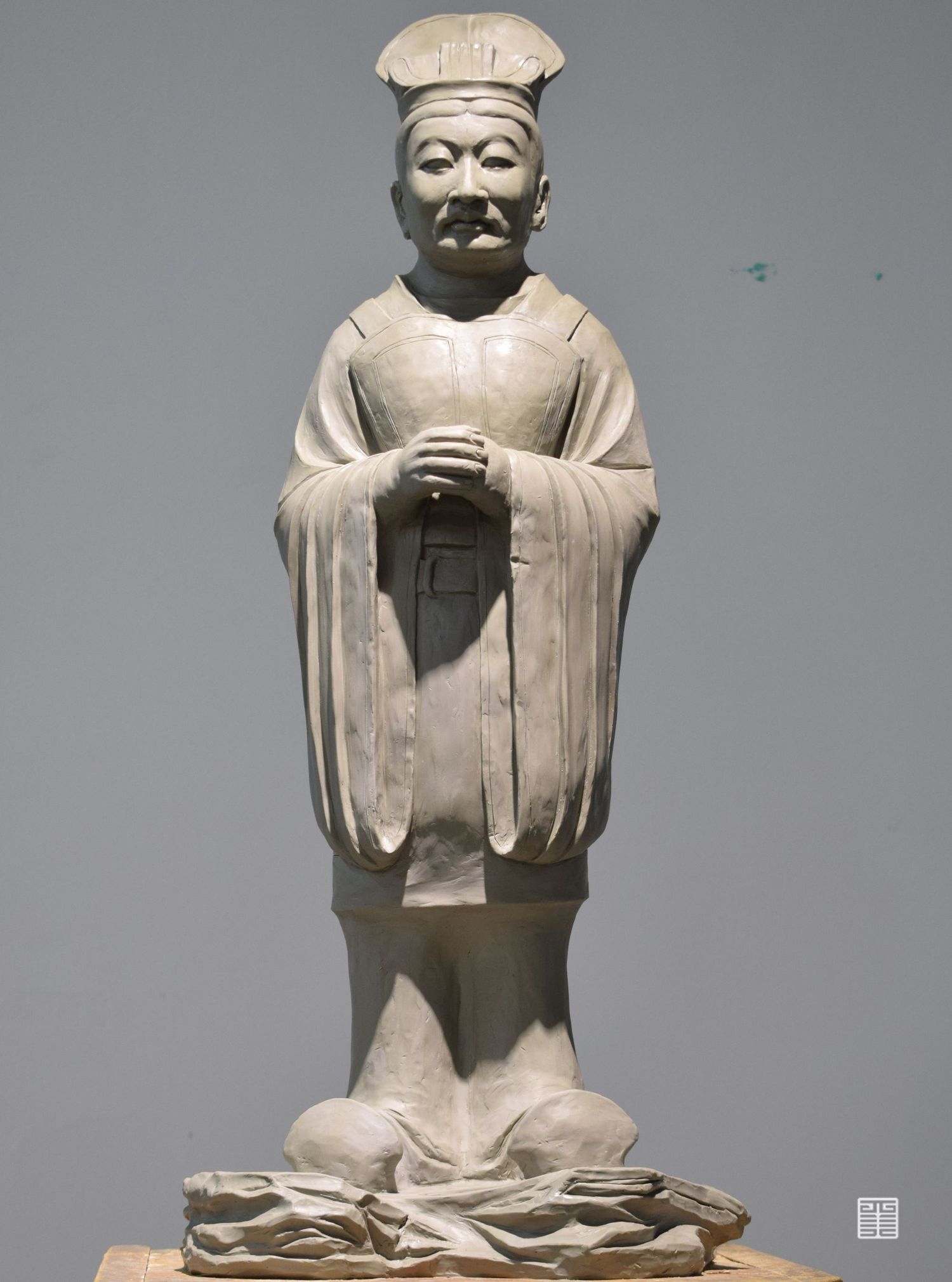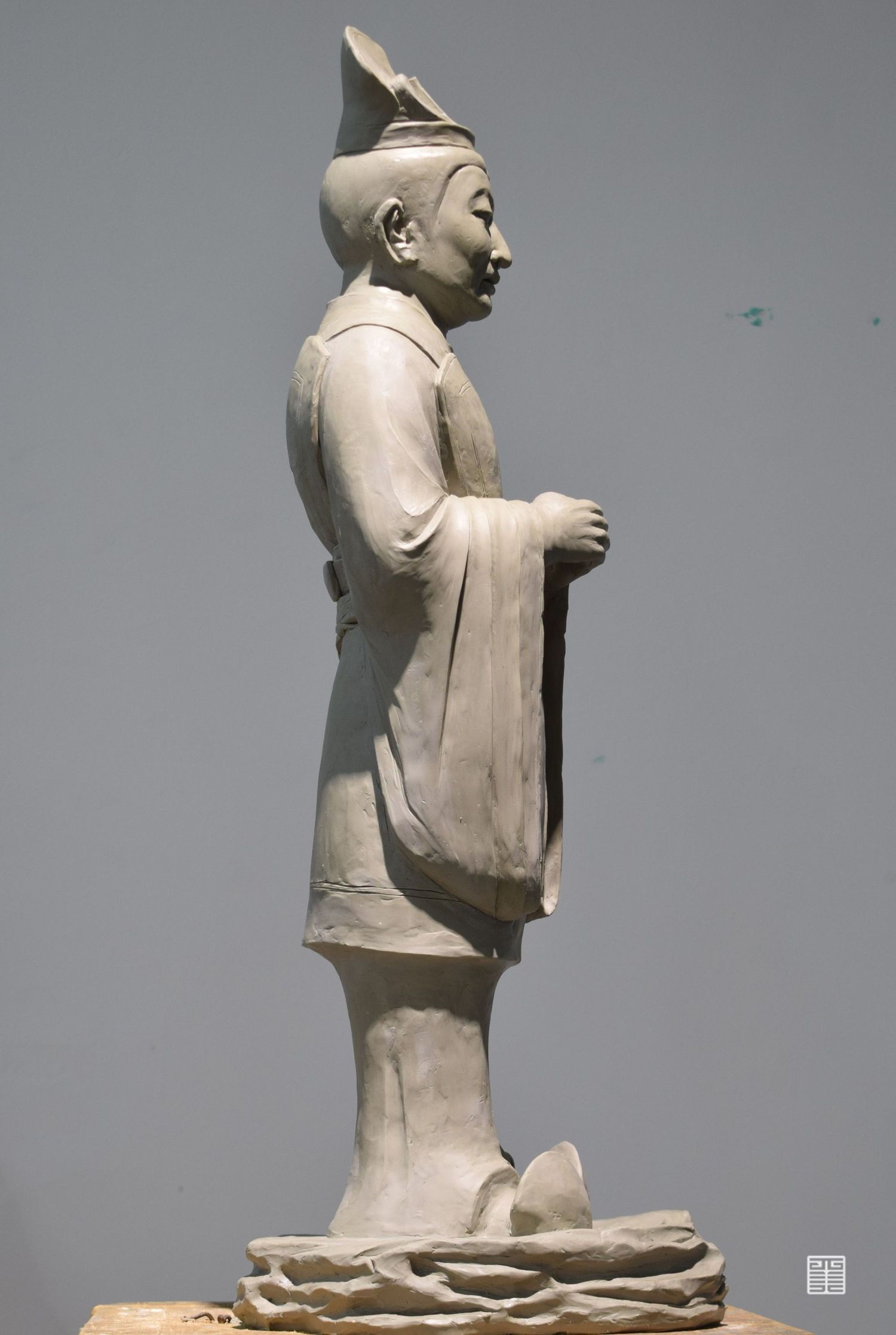 彩绘釉陶贴金文吏俑—这是来自陕历博的一件珍贵的唐朝文物,在开始进行泥作临摹前我查阅了很多关于唐代雕塑的史料,大致明白了唐人的塑造手法与其对雕塑投入的思想,在真正进行临摹时,我始终将形神兼备作为第一目标,在追求形似时,不忘整个雕塑的大象与浑厚的体积,以及古人做雕塑时的整体感。
