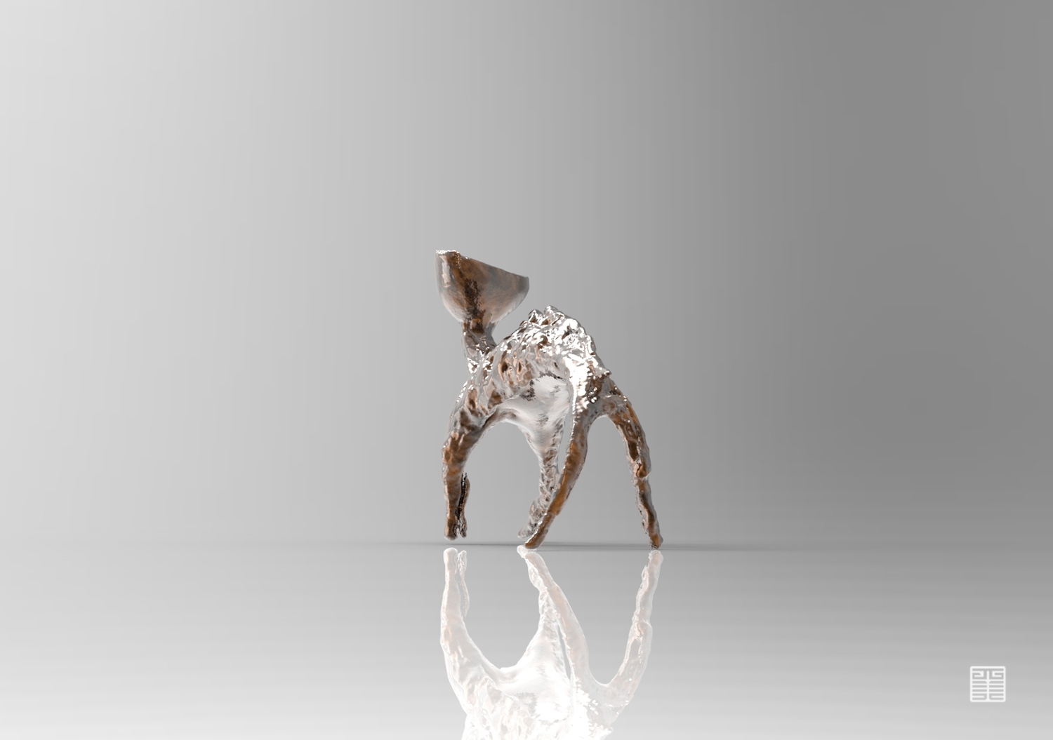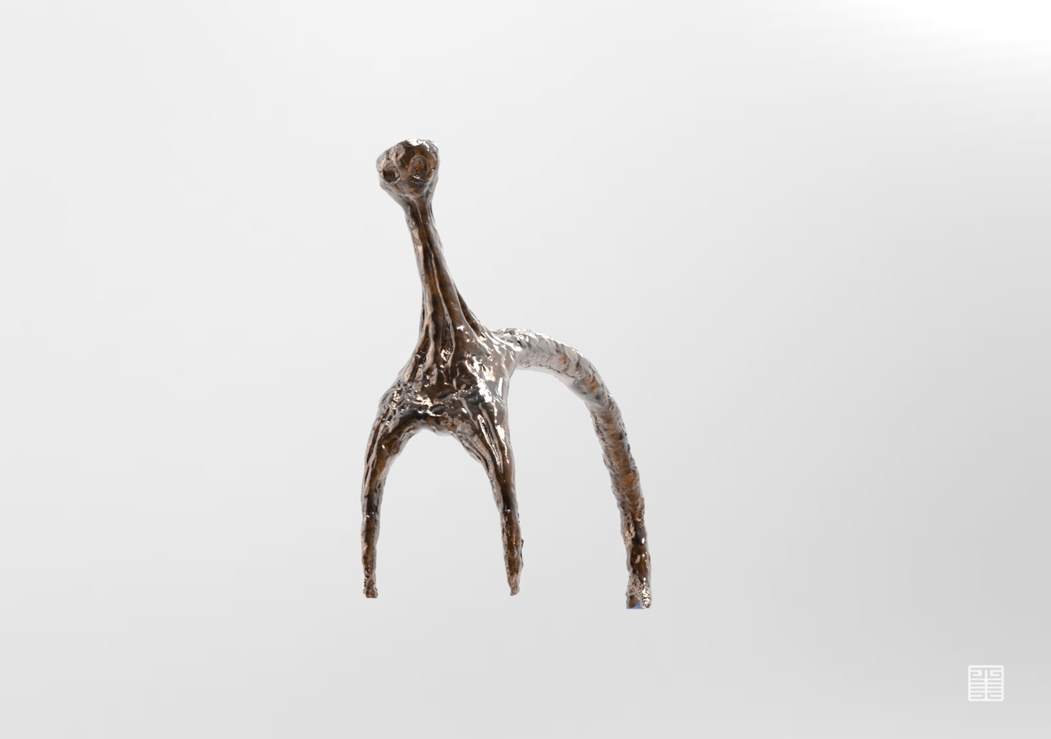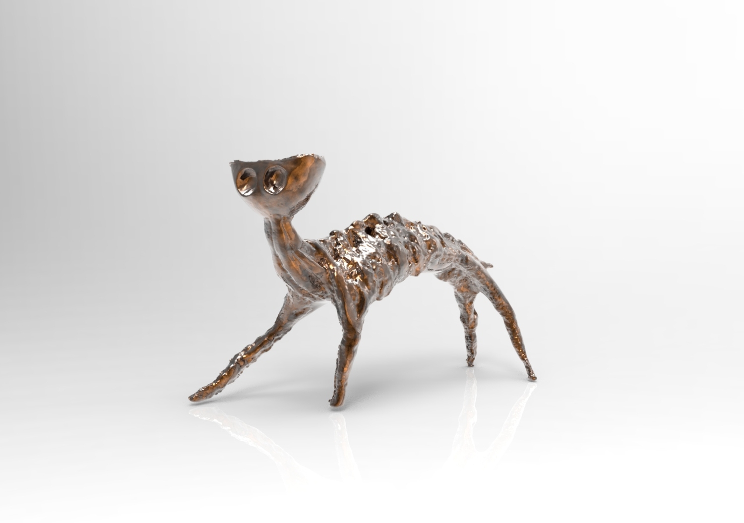 以生活常见且形态多变的猫做为幻想生物的基本形式,通过夸张和变形,以此体现随机生物的随机属性。梦境给我们带来的不真实感,是随机的,但又是熟悉的,它往往符合一定逻辑又与现实冲突,猫作为一种常见的能给人以熟悉感的生物,这里以非常规的逻辑,尤其以怪异的头颅与树根般的身躯,借此表达熟悉的不真实感,同时又以随机生物为名,以此体现该物种的随机是摆脱真实世界的潜意识上的随机。