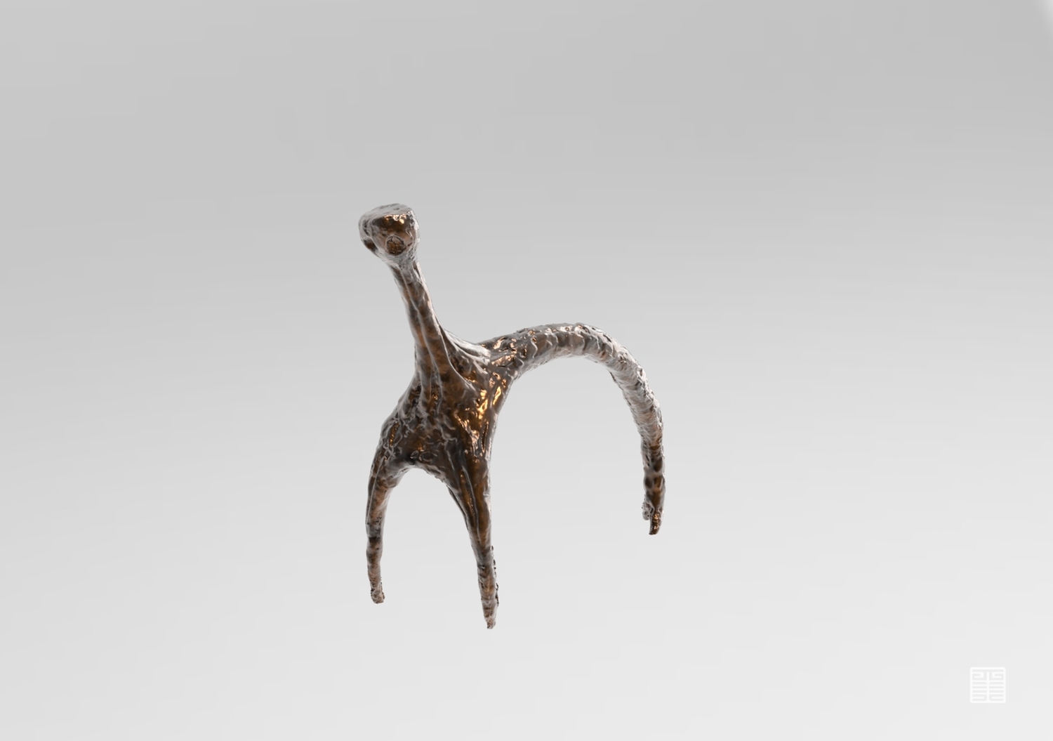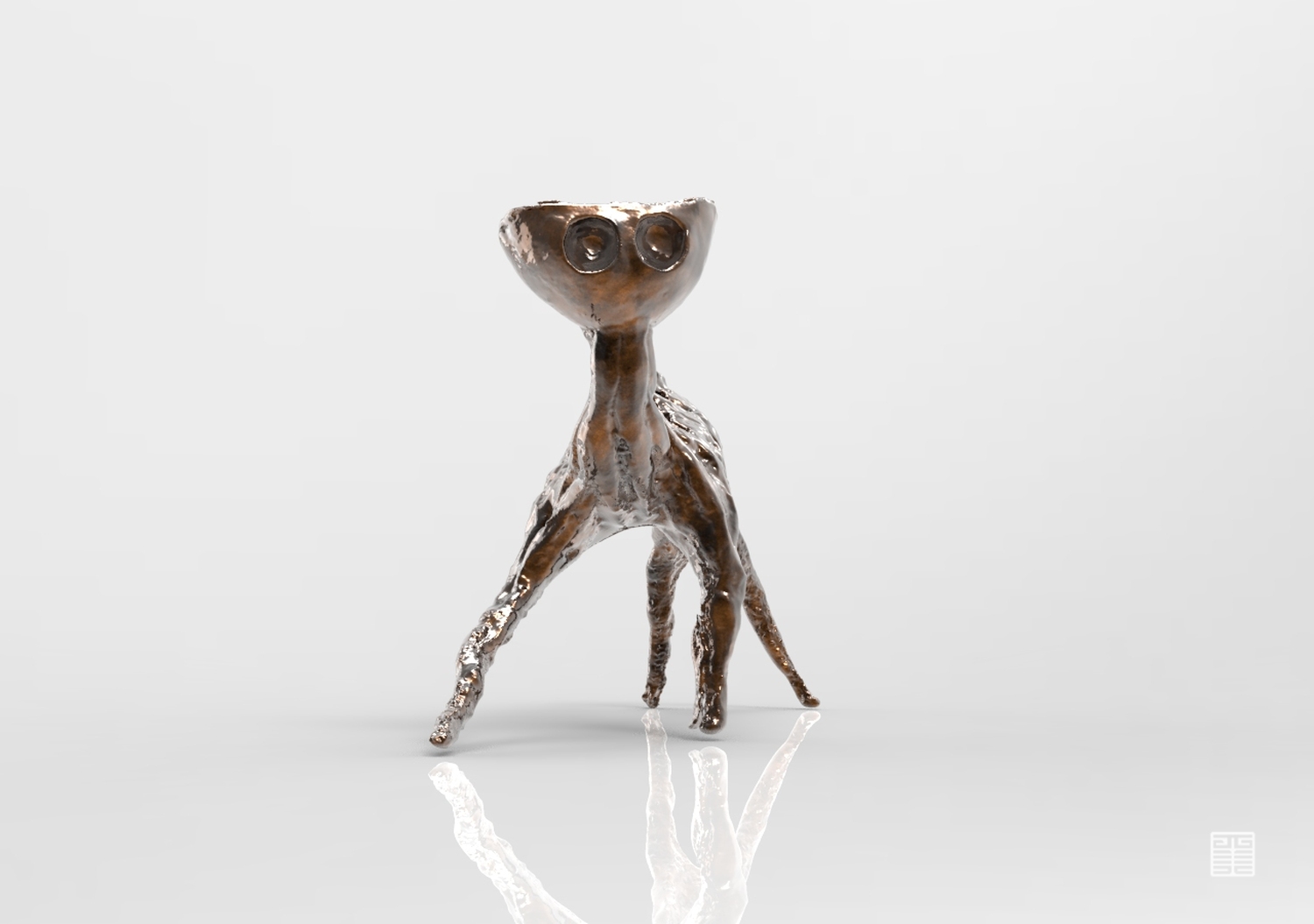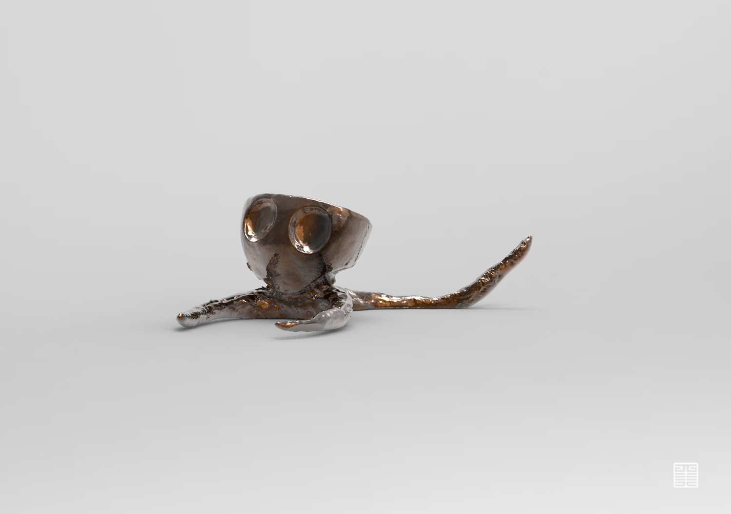 以生活常见且形态多变的猫做为幻想生物的基本形式,通过夸张和变形,以此体现随机生物的随机属性。梦境给我们带来的不真实感,是随机的,但又是熟悉的,它往往符合一定逻辑又与现实冲突,猫作为一种常见的能给人以熟悉感的生物,这里以非常规的逻辑,尤其以怪异的头颅与树根般的身躯,借此表达熟悉的不真实感,同时又以随机生物为名,以此体现该物种的随机是摆脱真实世界的潜意识上的随机。
