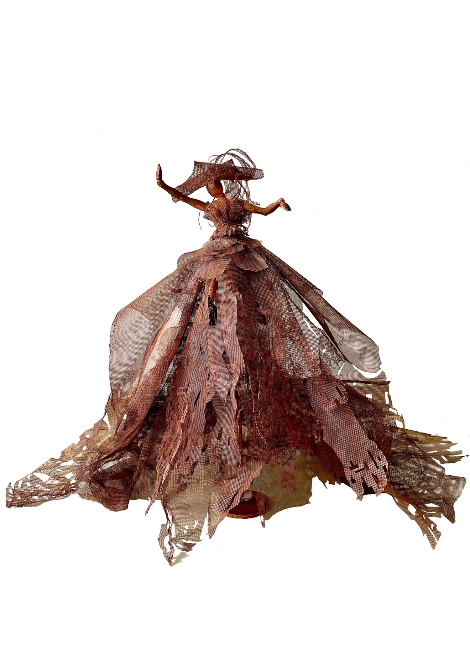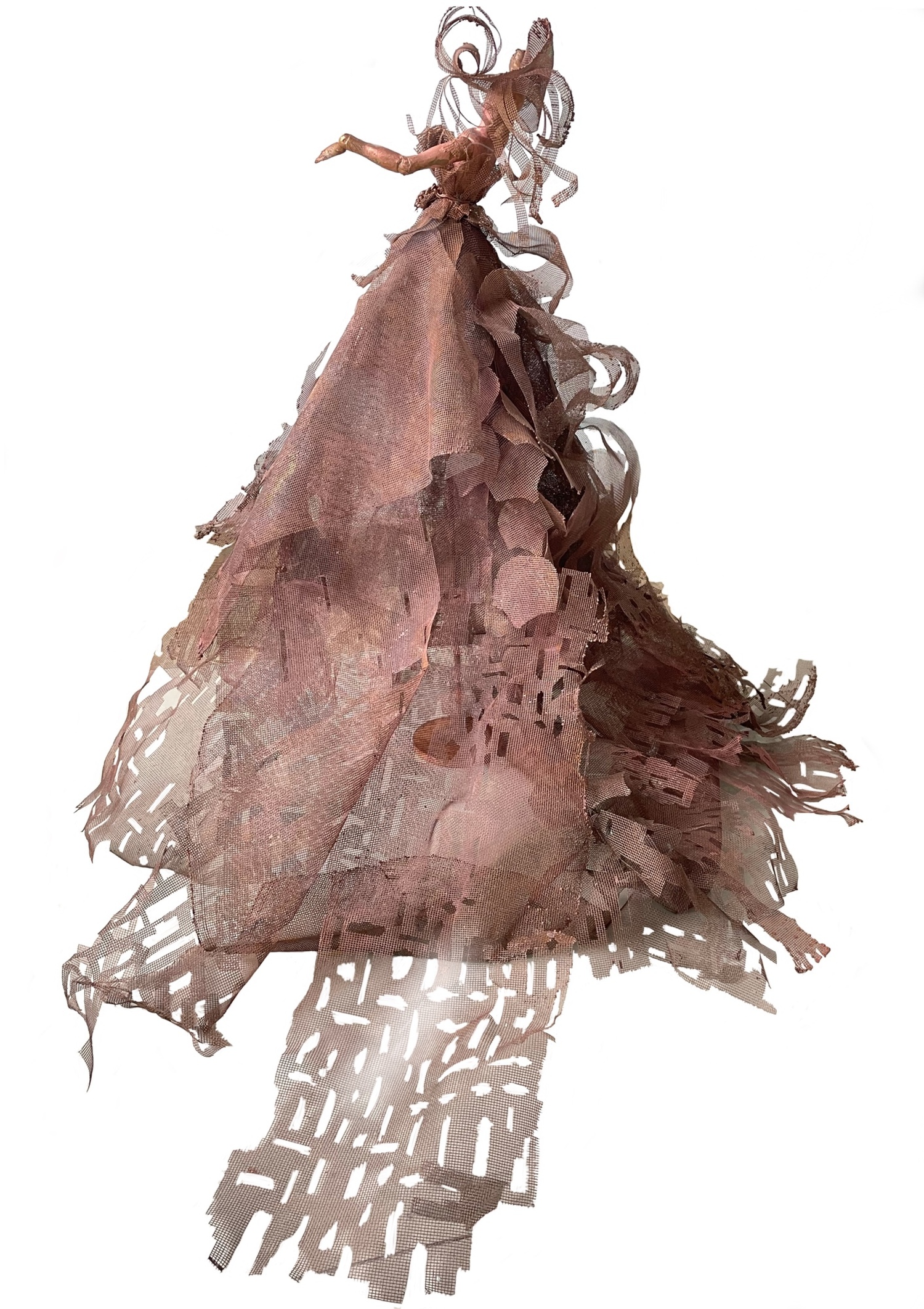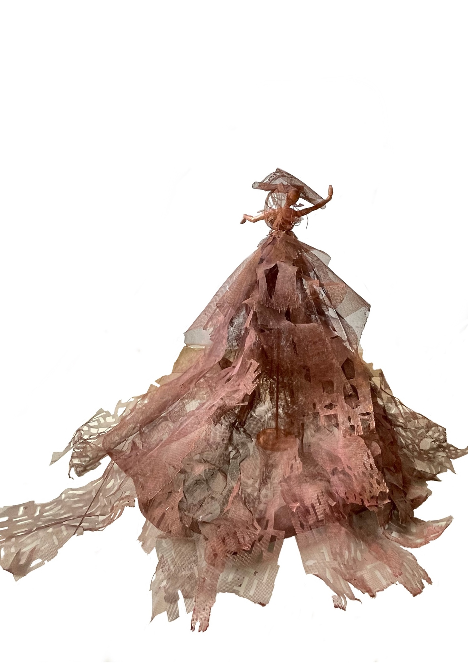 用带着创伤的人偶,身着华服舞动着欢快的姿态,表达出即使披着华服仍然是被任意摆布的人偶,还是逃脱不了命运的束缚。传递出作者希望人们能够牢牢掌握自己命运的提线,无论处于怎样的状态都可以无所畏惧的欢乐起舞。