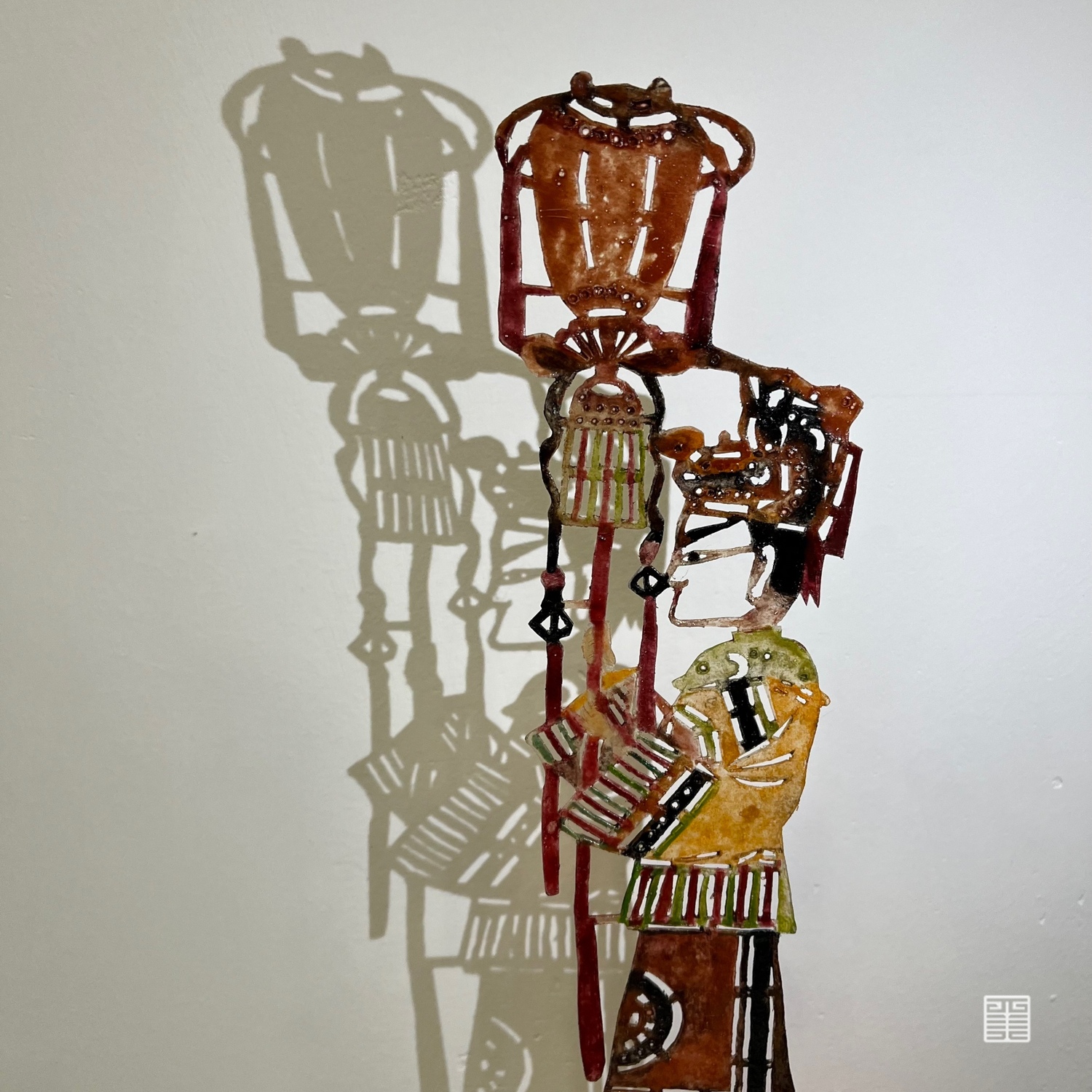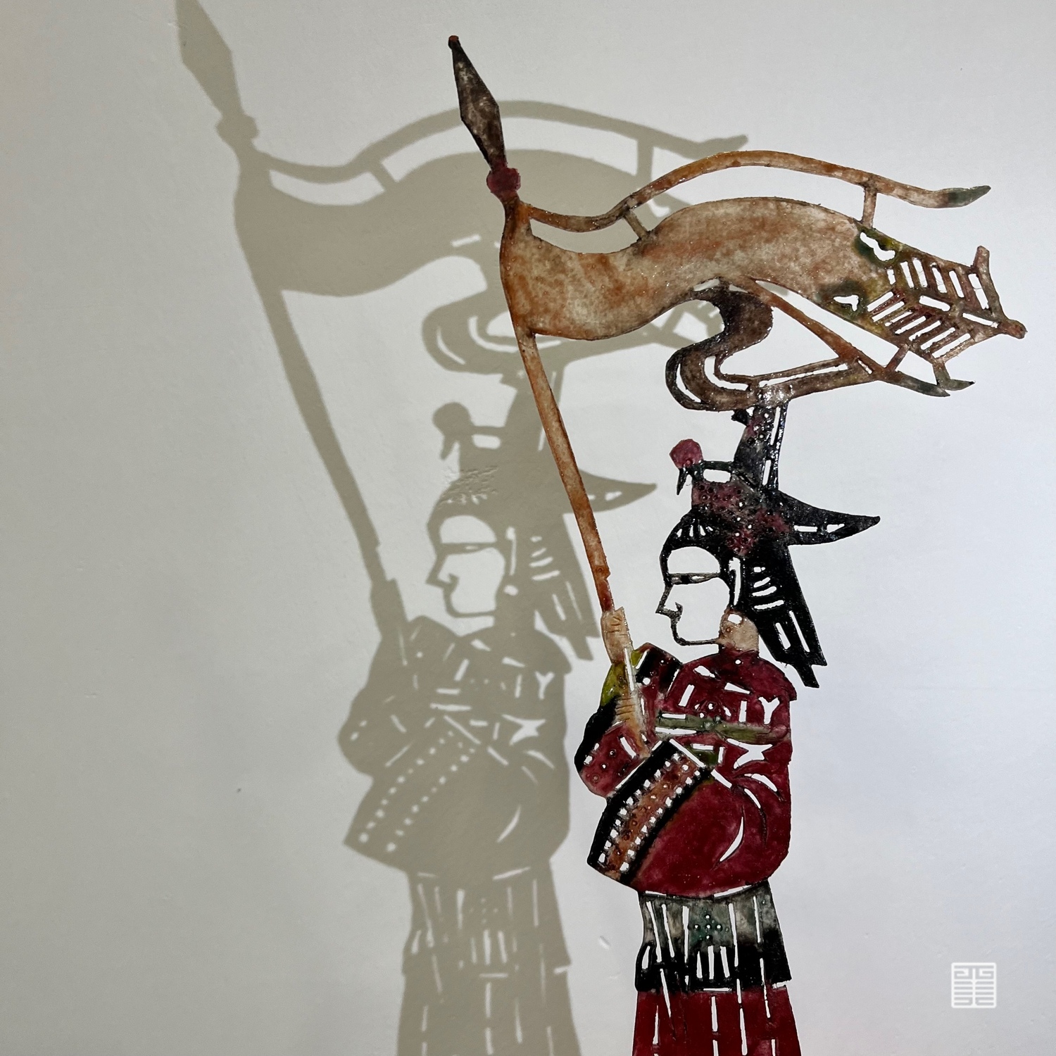 传统皮影戏御旗牌是专门雕刻了皇帝、皇后出巡的御辂和持旗等仪仗队伍。