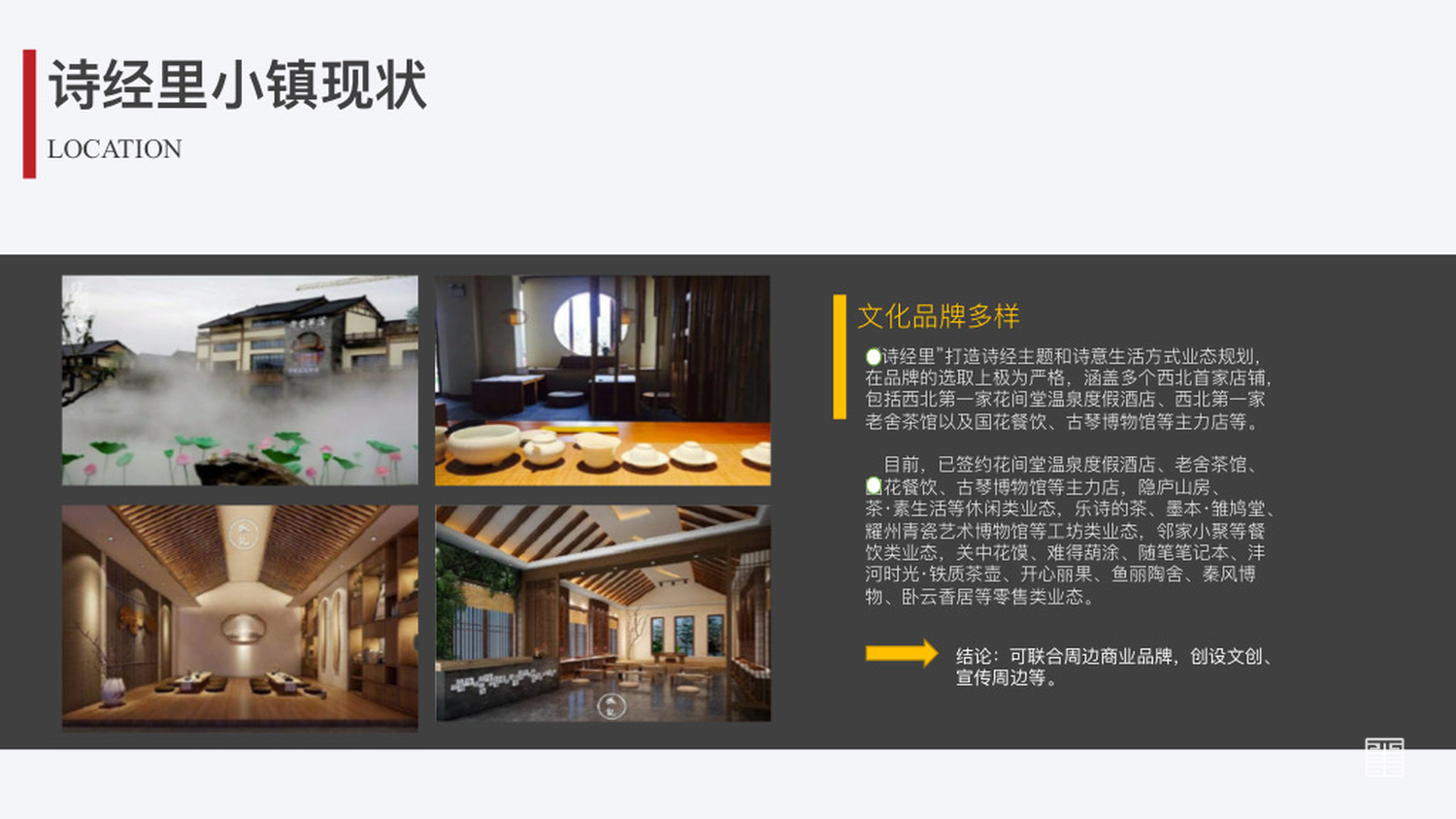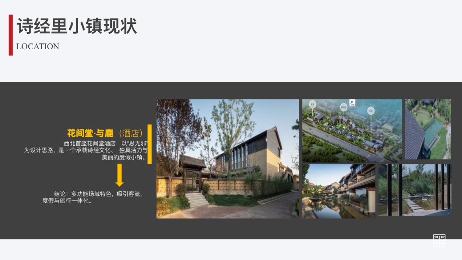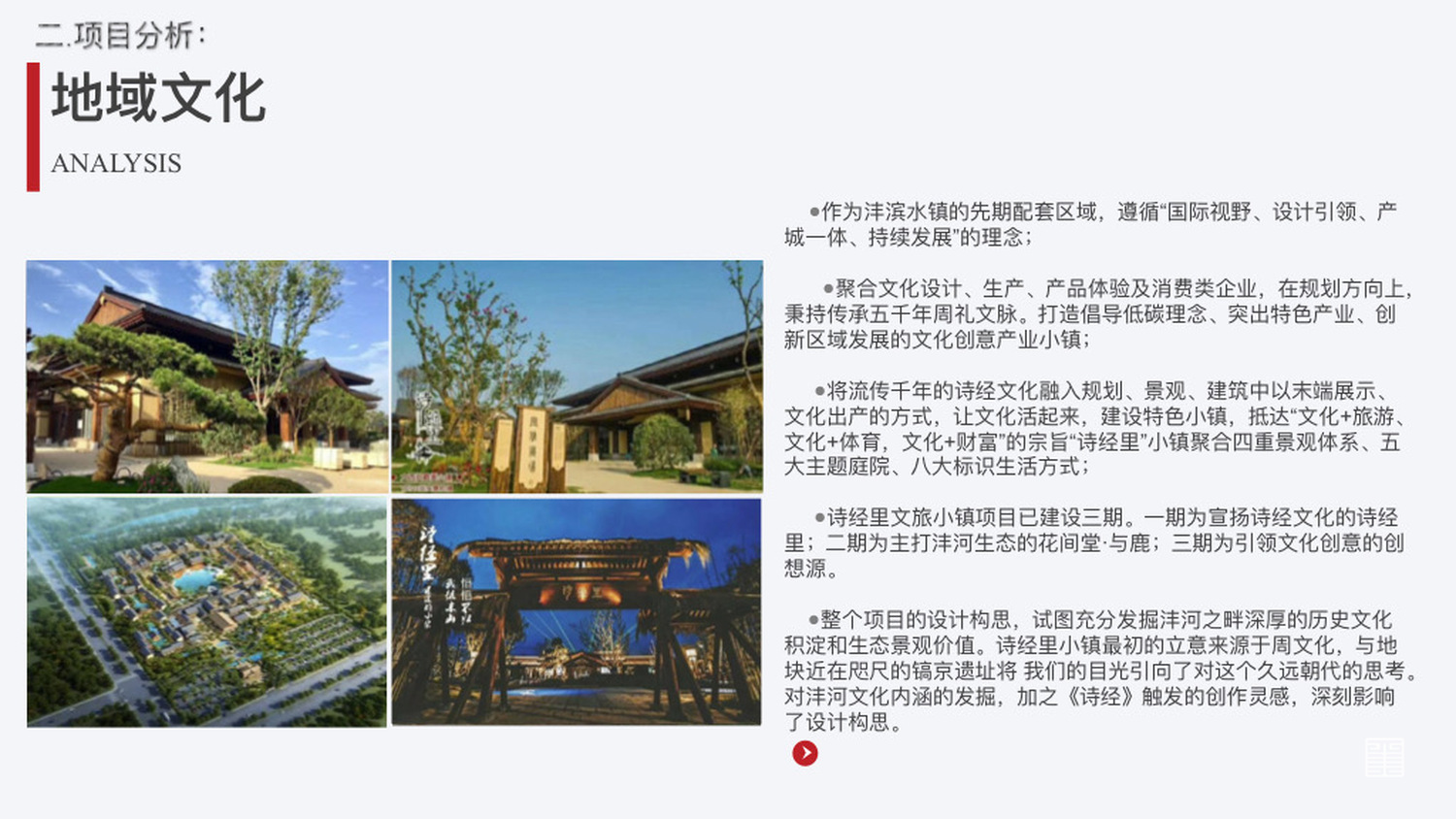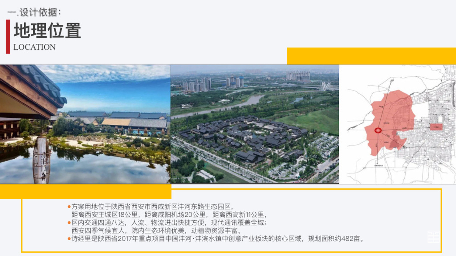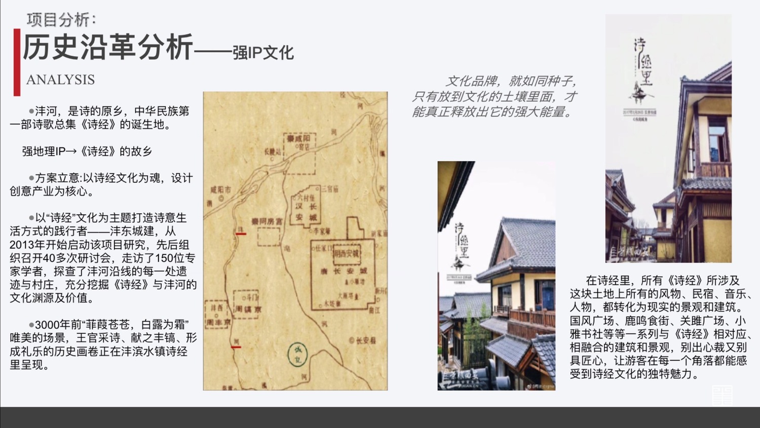诗经里文旅小镇,是陕西省首个设计创意特色产业小镇。项目以诗经文化为主题之魂,以滨水生态为环境依托,以文化创意产业为引领,秉持传承五千年周礼文脉,在西咸新区“创新城市发展方式”的指导思想及沣东新城城市整体定位的统领下,全力探索“文化+产业”的创新城市发展方式。设计旨在建设一座崭新的产业街区、诗礼小镇、人居新城,打造出规模体量居全国前列,产业定位高端、生态环境优美、配套设施完善、生活条件便利的新型城镇化建设项目典范,成为新长安大轴线上的区域人文生态名片。