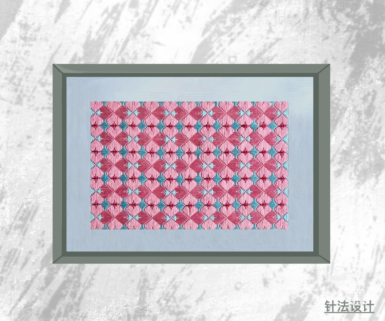 陕西刺绣也称“秦绣”,是陕西当地传统的手工技艺,历史悠久,其特点粗狂奔放、造型优美、生动美观,富有浓郁的地方特色,它不仅是精美的民间艺术,同时也是中华民族悠久的文化遗产。秦绣是在罗底上面绣,按着几何图案做一些花纹,也就是说他花中有花,我采用的就是桃型的花纹进行重复排列,一朵花每个花瓣又是用花纹组成的,我用不同的颜色和不同的针法,去表现它。