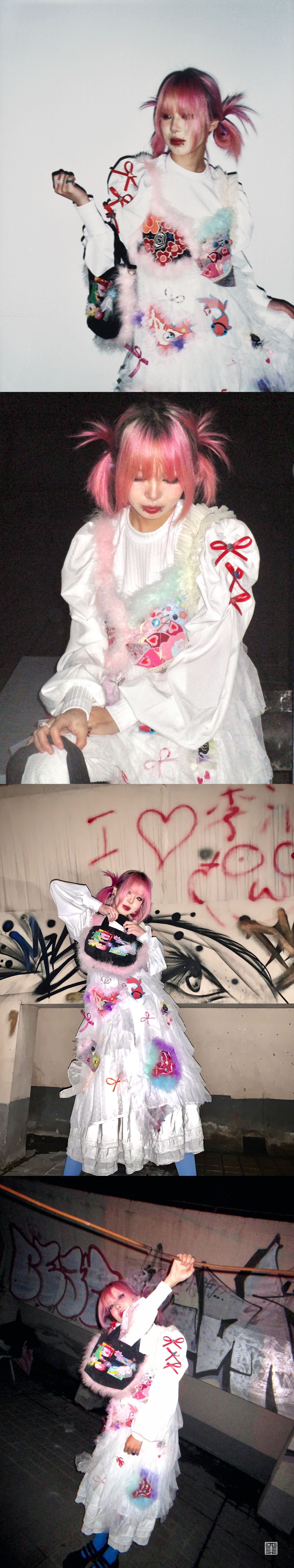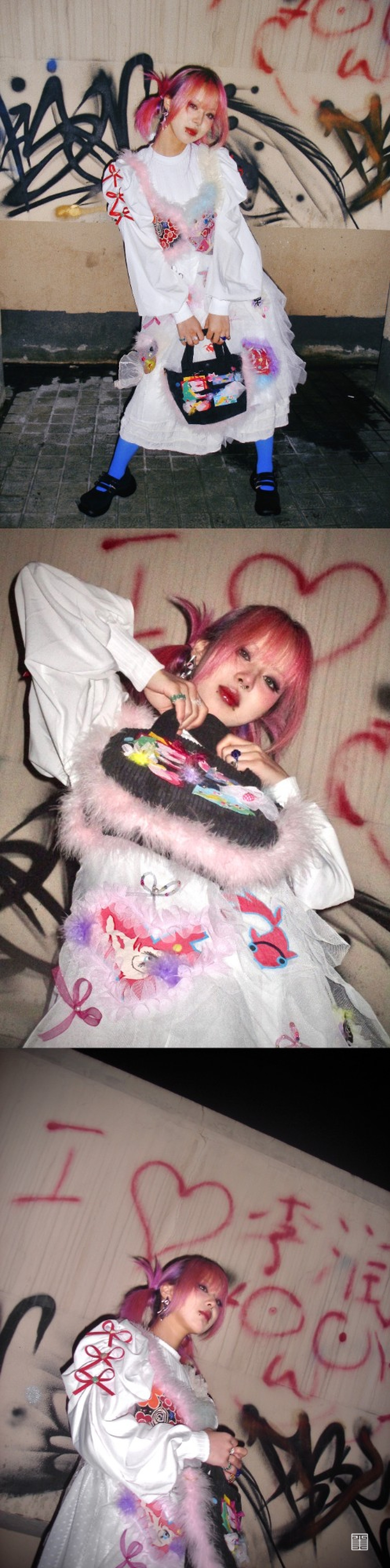 当今社会,人们在追求物质生活的同时更需要丰富文化生活。这两套的设计通过这一社会现象为起点。紧追时代的号召,从中国优秀传统文化——“布堆画”中汲取灵感。通过对中国传统纹样的提取再设计,来呼吁人们传承与发展中国优秀的传统文化。采用布堆画的传统图形进行设计装饰,并借用拼贴的手法对其进行叠层处理,表现出传统与现代时尚结合的层次美感。服装结构上运用多模块化解构主义进行现代感表达,使服装层次感更加鲜明。