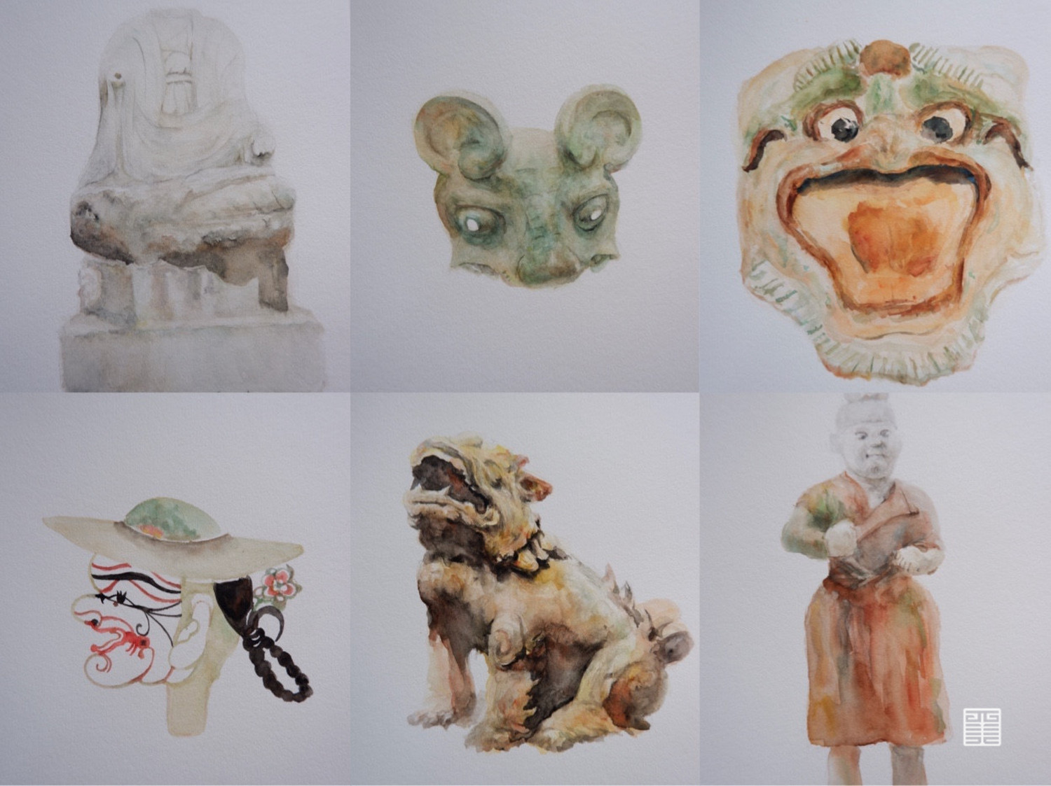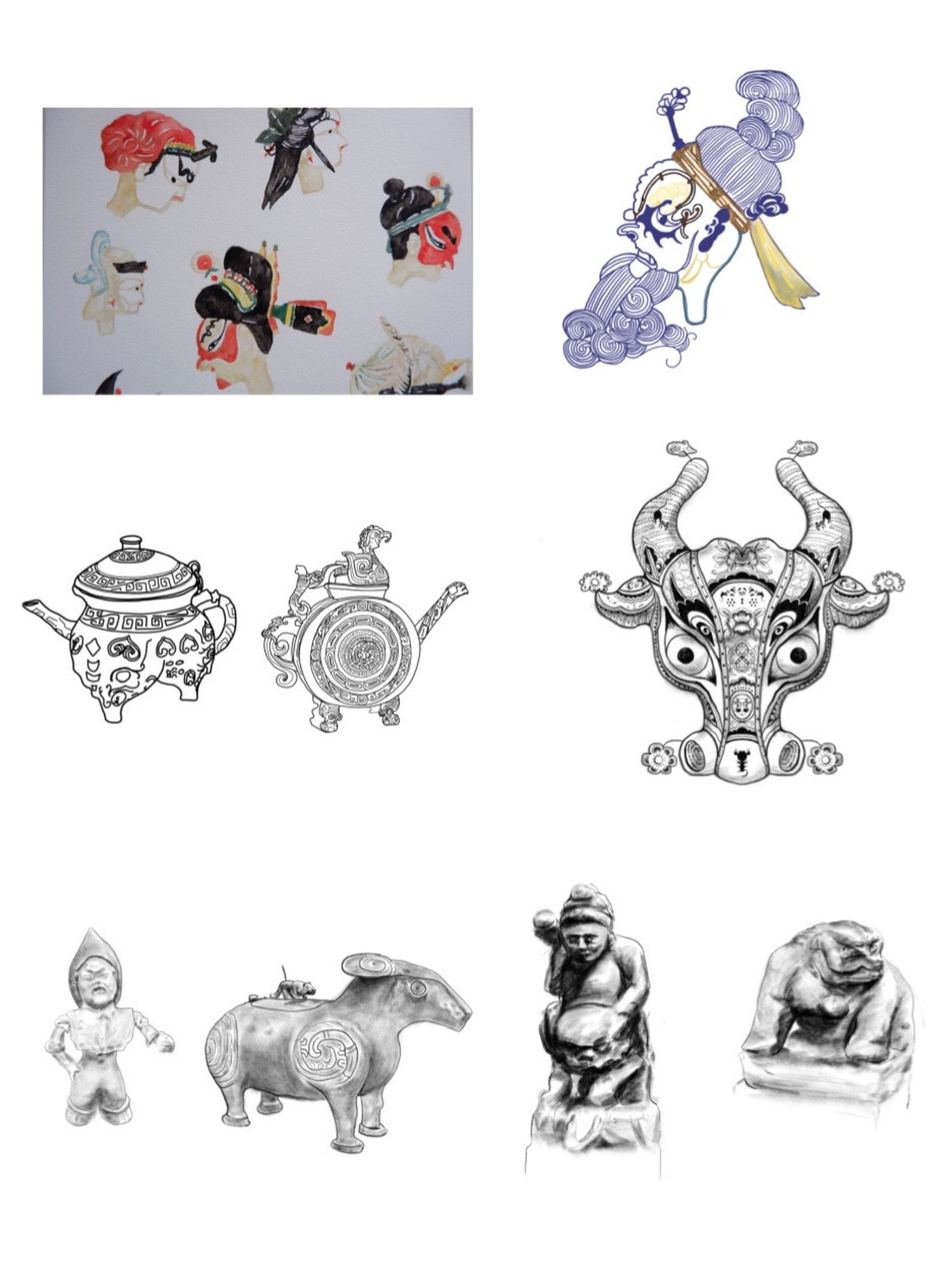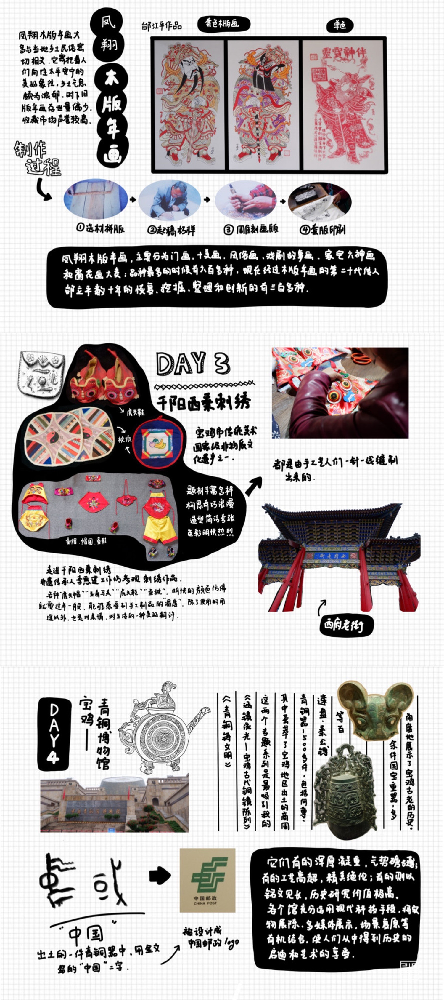 图1-3为根据考察所创作的文创作品,图4-6为考察报告,图7-8为考察期间部分速写