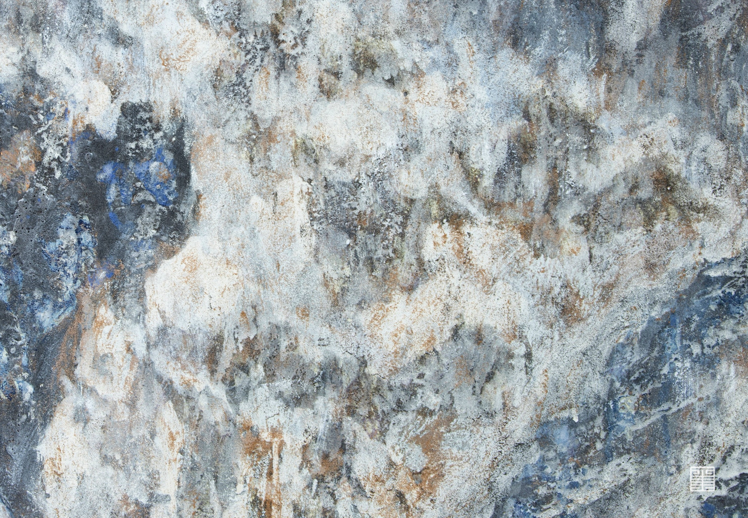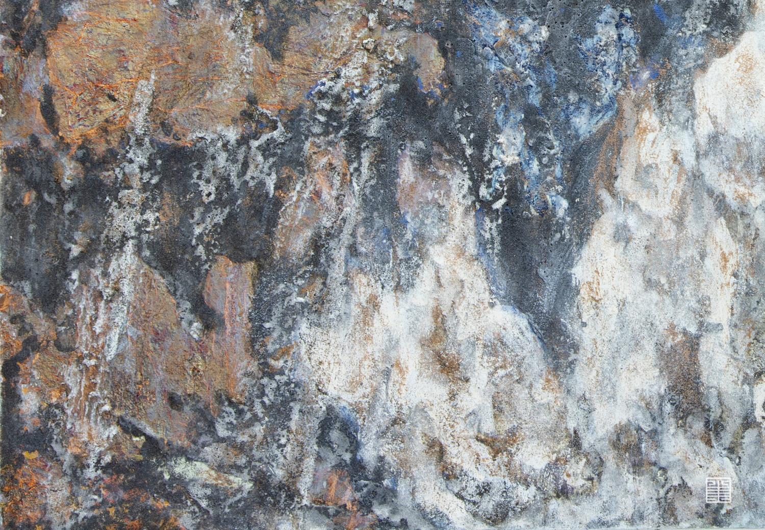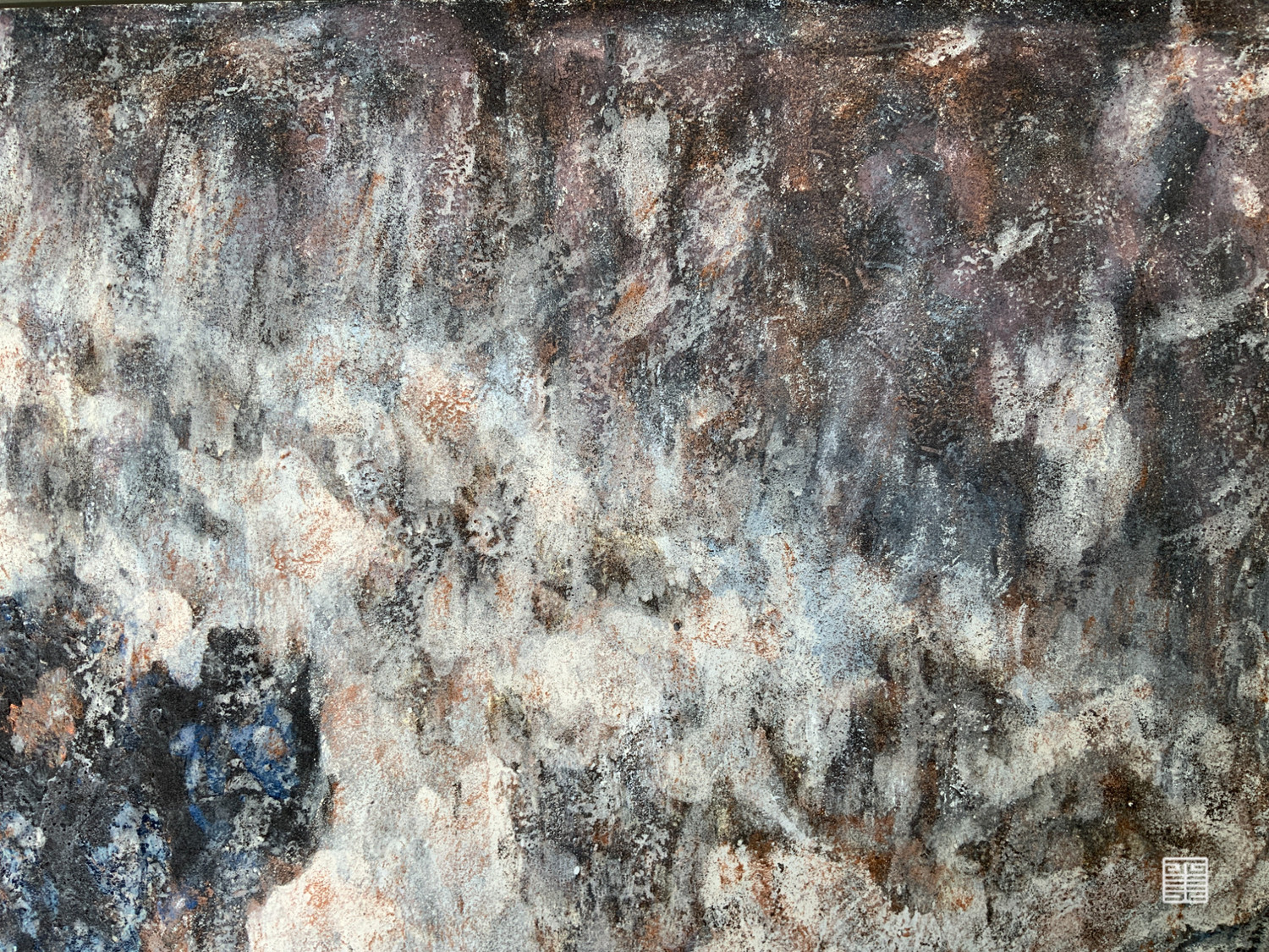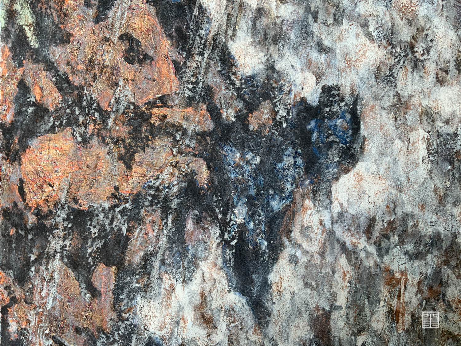 蝴蝶于化石中获得重生,欲飞翔于天空之中,给人带来生机与活力。 矿物岩彩 丙烯