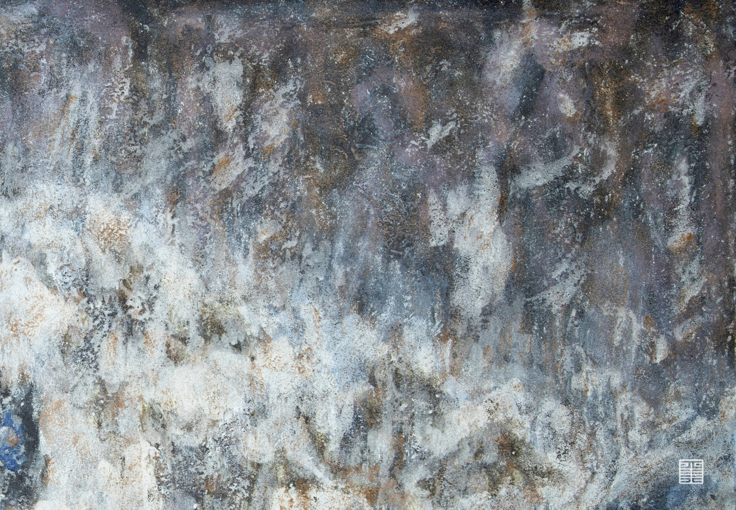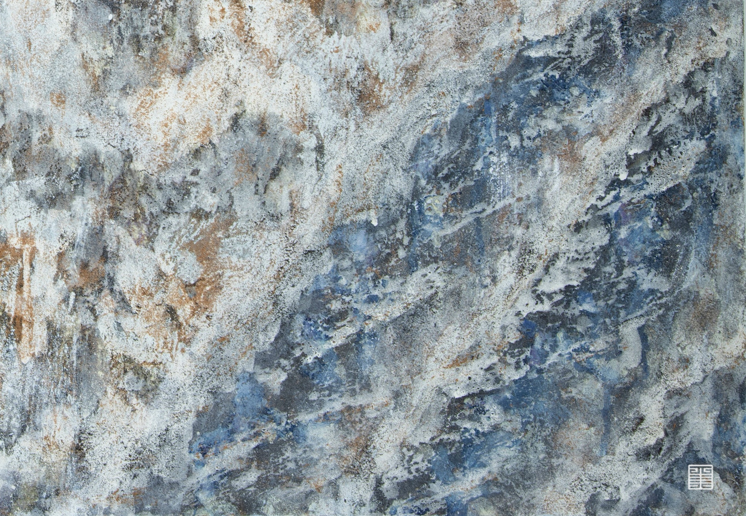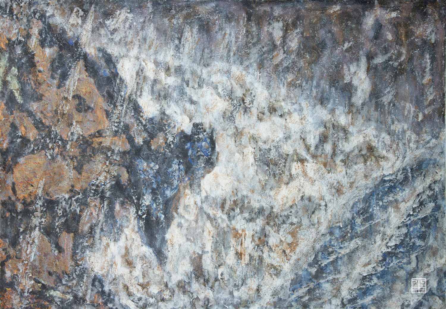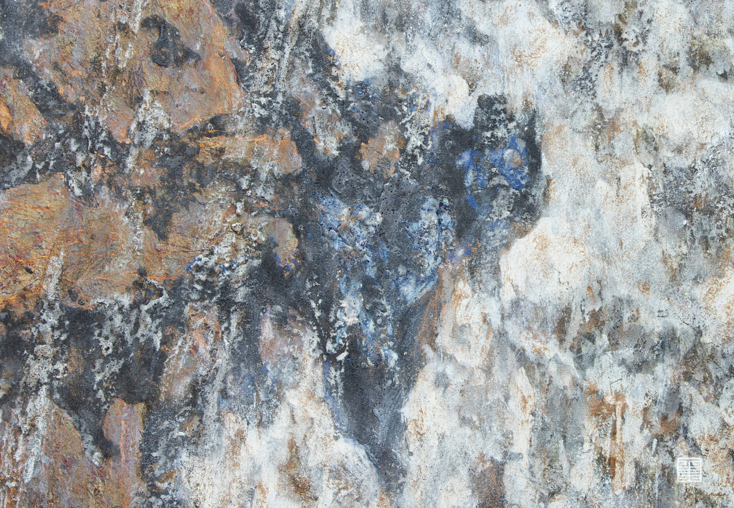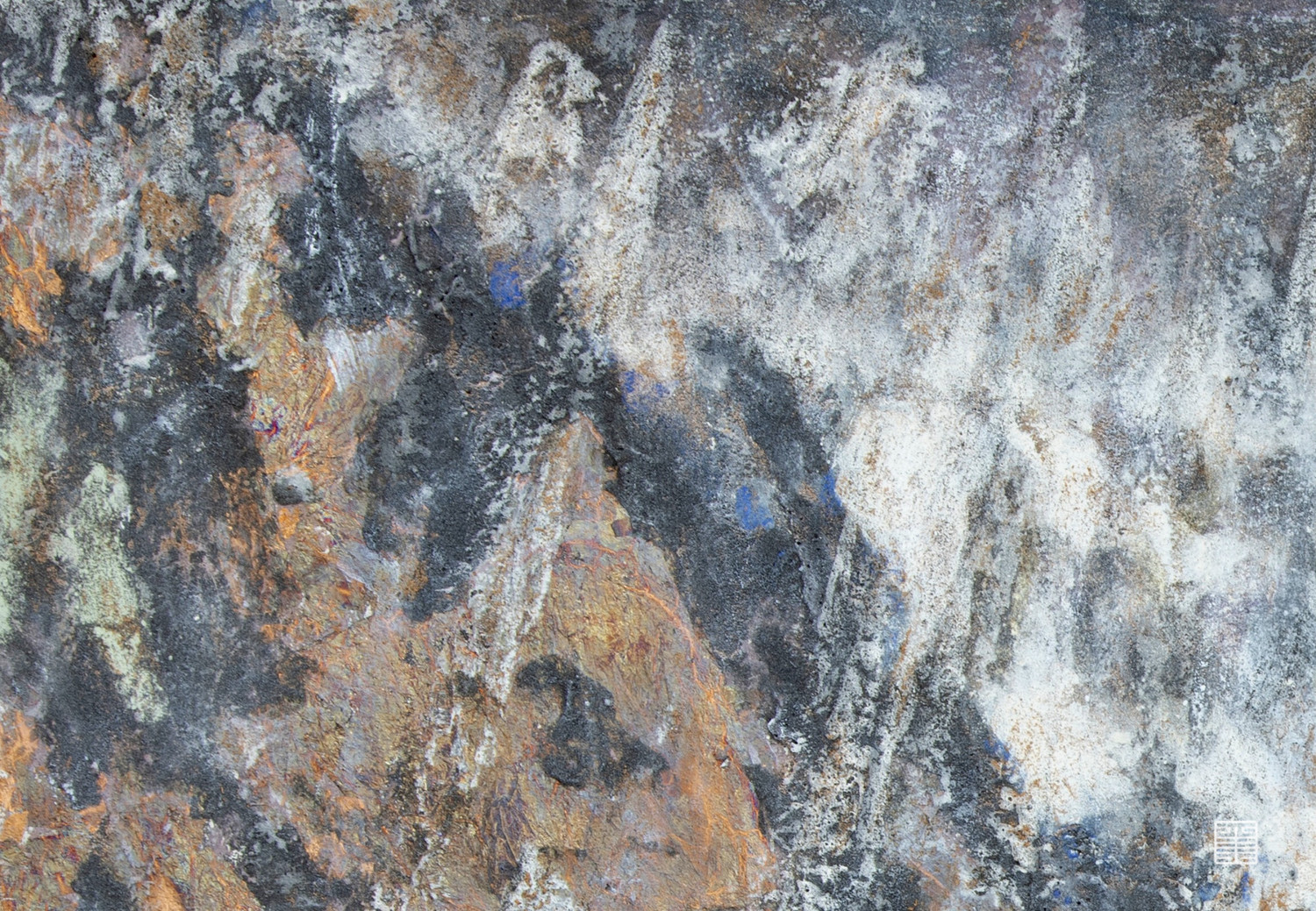 蝴蝶于化石中获得重生,欲飞翔于天空之中,给人带来生机与活力。 矿物岩彩 丙烯