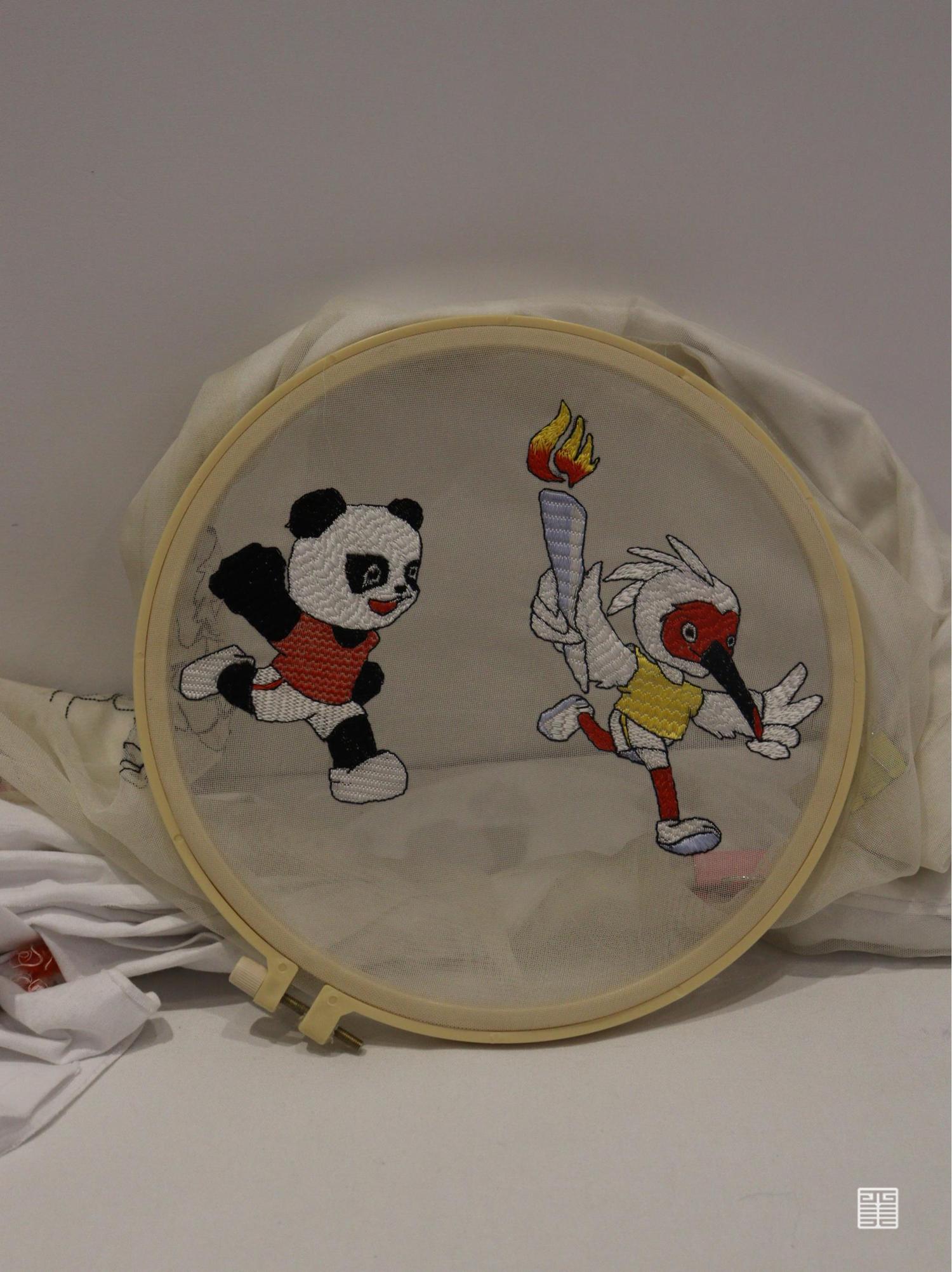 我的创作内容是紧跟时事,今年十四运在陕西西安举办,吉祥物有“秦岭四宝”的朱鹮,大熊猫,金丝猴和羚牛。在秦绣创作中,我选择了其中的是朱鹮和大熊猫,仅此来纪念今年十四运举办的圆满成功。