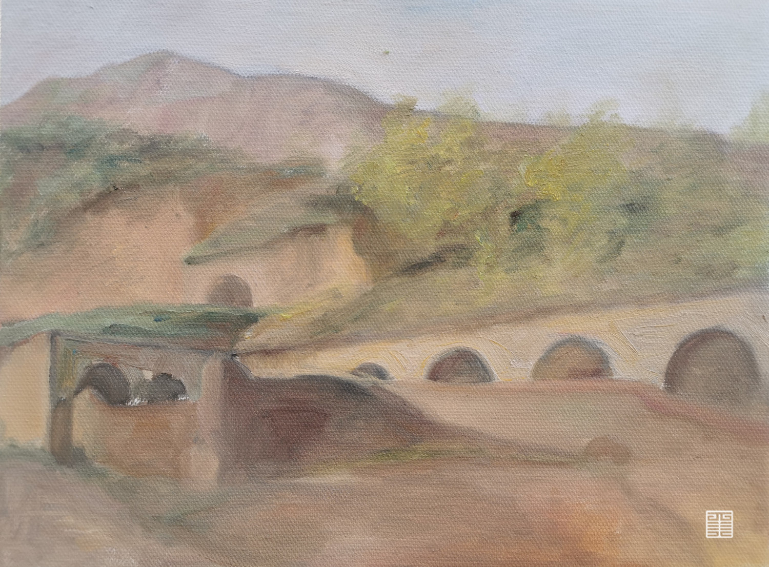 对于画作,起源于窑洞树林和山的层次,形状构成和形式感...