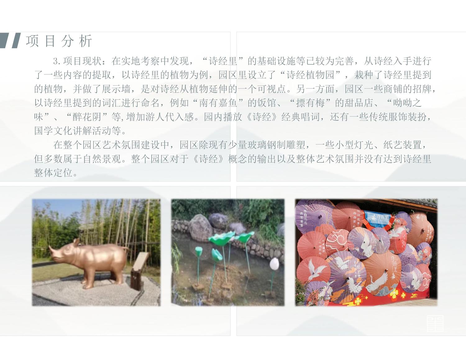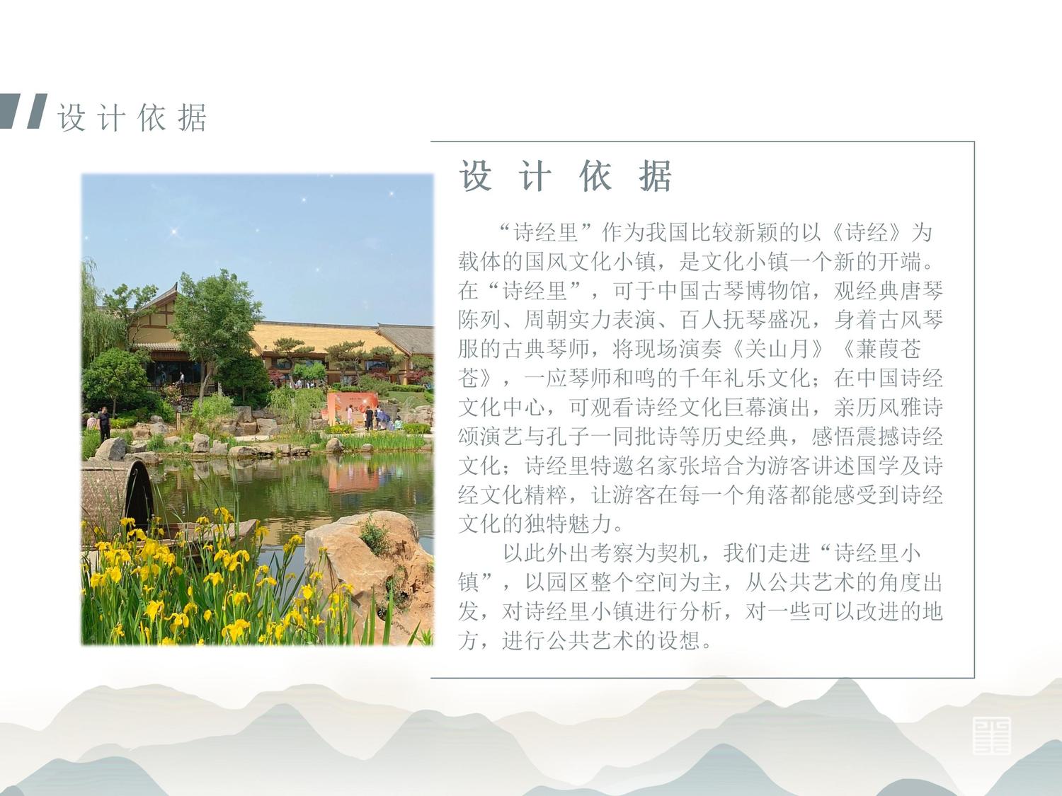 以此外出考察为契机,我们走进“诗经里小镇”,以园区整个空间为主,从公共艺术的角度出发,对诗经里小镇进行分析,对一些可以改进的地方,进行公共艺术的设想。
